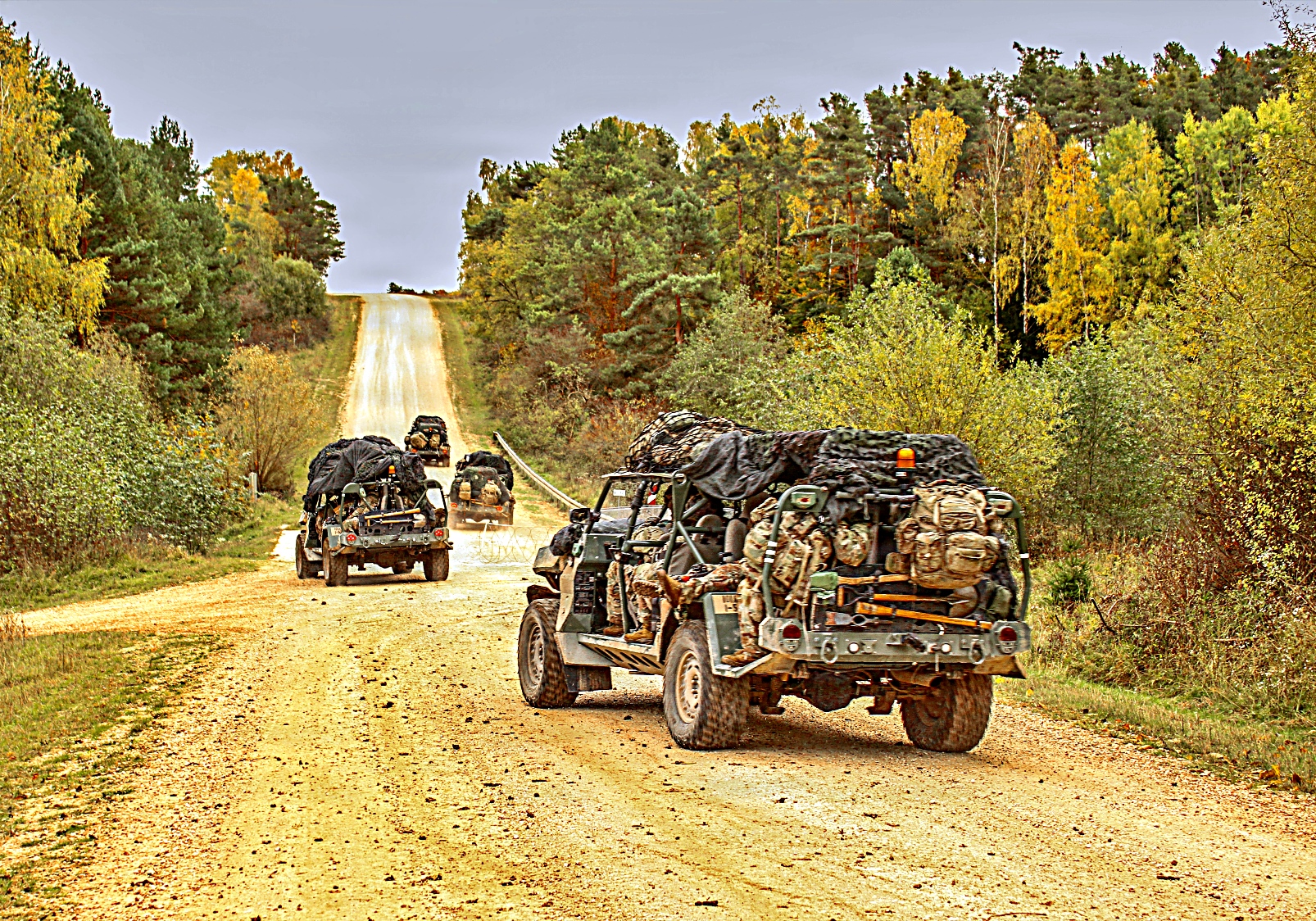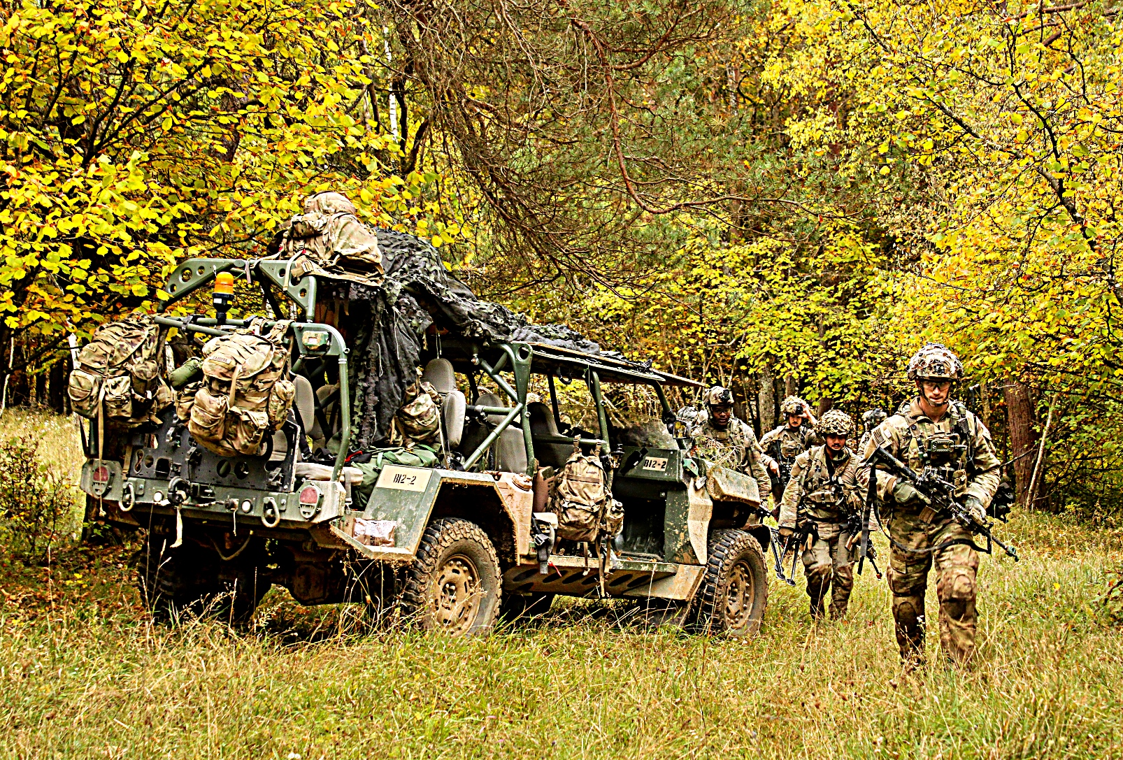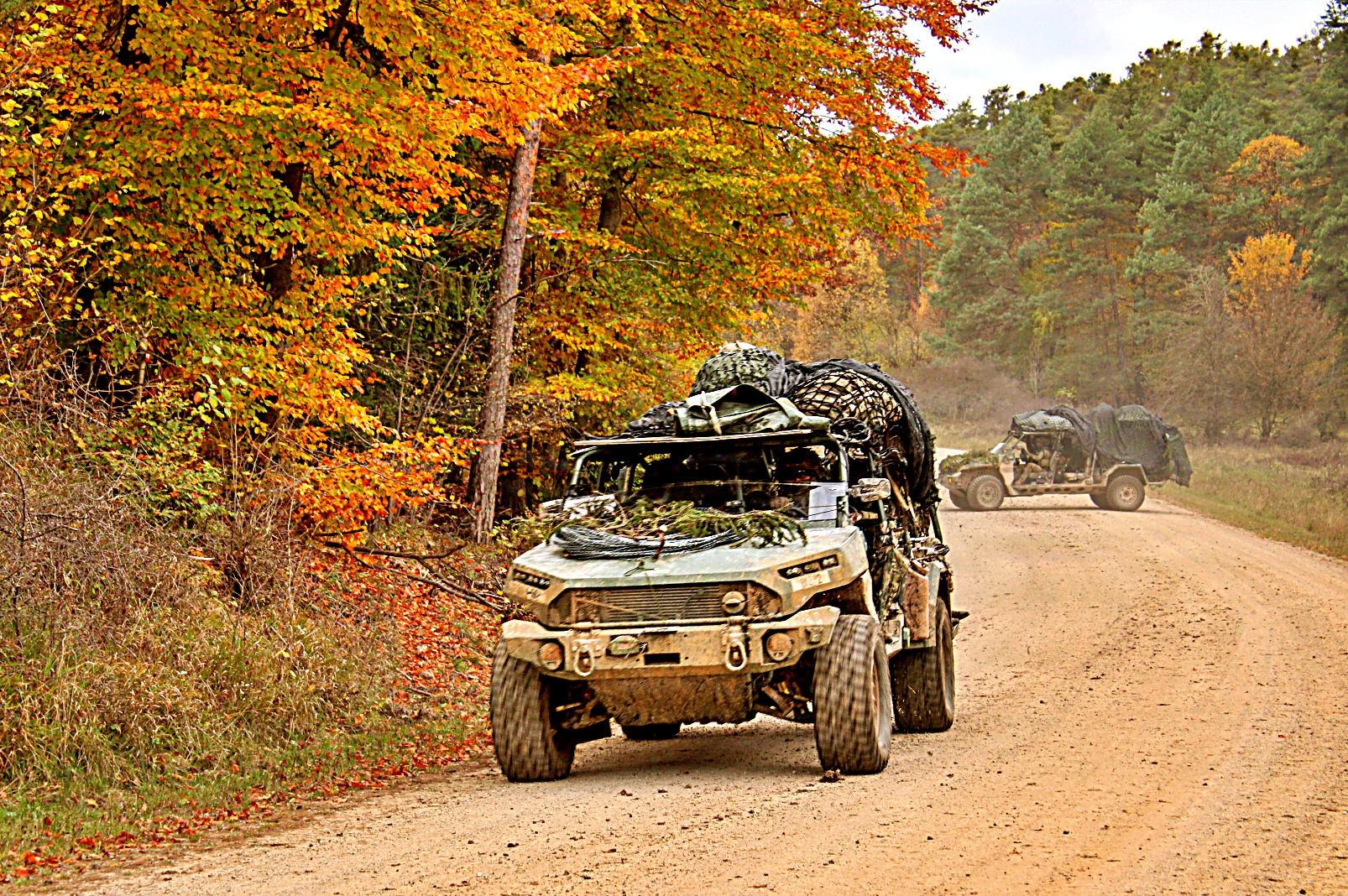 2025년 10월 19일, 독일 호헨펠스 훈련장에서 제101공수사단 제2여단 제502보병연대 제1보병대대 A중대 병사들이 M1301 보병 분대 차량(ISV Infantry Squad Vehicles)을 이용한 기동 순찰과 하차 정찰을 실시하고 있다. 101공수사단은 현재 합동다국적훈련센터(JMRC)에서 ‘결합된 결의 26-1(Combined Resolve 26-1)’ 훈련을 수행 중이다. 이 핵심 훈련은 새로운 기동여단전투단(MBCT Mobile Brigade Combat Team) 편성을 평가하고 시험하며, 2024년 이전 전술훈련센터(CTC) 순환 훈련에서 얻은 교훈을 바탕으로 한다.