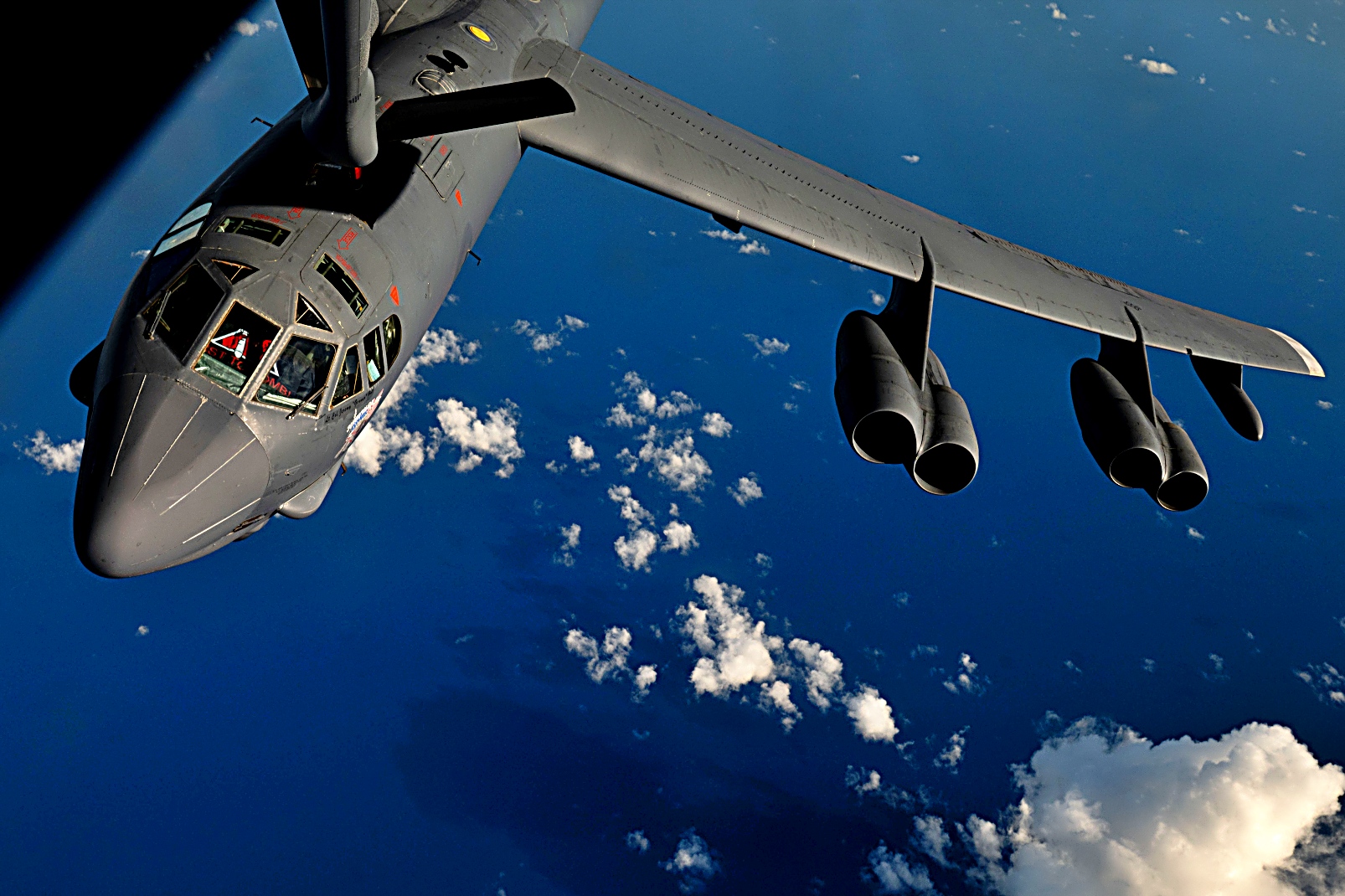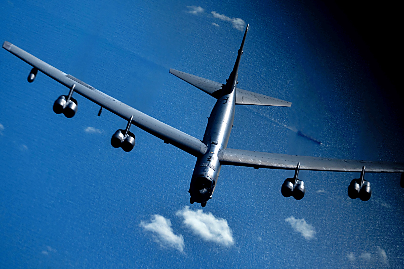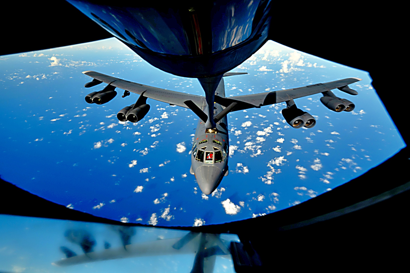 미국 공군 제2폭격비행단 소속 B-52 Stratofortress 폭격기가 2025년 10월 15일, 미 남부사령부 관할 구역 상공에서 제6공중급유비행단 소속 KC-135 Stratotanker 급유수송기로부터 공중급유를 받고 있다. B-52는 전 세계에 배치 가능하며, Western Hemisphere의 안전, 안보 및 안정을 위협하는 외국 테러 및 초국적 범죄 조직을 억제한다. Bomber Attack Demonstrations은 서반구 집단 방어에 기여했으며, 해당 지역의 안전과 안보에 대한 미국의 의지를 보여준다.