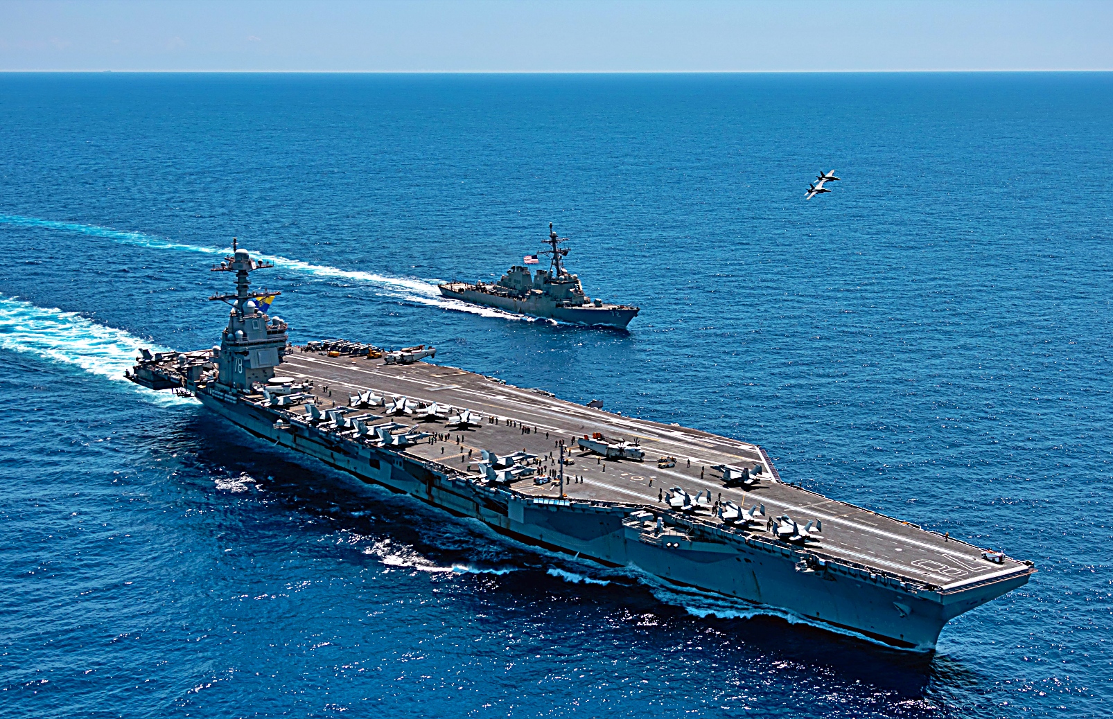 USS Gerald R. Ford (CVN 78)항모는 지난 6월말부터 정기적 작전을 수행하기 위해 모항을 출항하여 7월 15일부터 16일까지 포르투갈 아조레스 제도 북쪽 해상에서 작전을 수행한 후 7월 19일 지브롤터 해협을 동쪽으로 통과 지중해로 진입했다. 7월 23일부터 26일까지 크로아티아 두브로브니크 남부 및 남서부 해상에서 작전 수행한 후 7월 27일부터 29일까지 이탈리아 칼라브리아 남동부 연안에서 작전을 수행한 후 8월 4일 프랑스 프랑스 마르세유에 정박하여 5일간 방문을 수행한 후 8월 13일, 지브롤터 해협을 지났고 8월 17일, 도버 해협을 지나 북해로 진입했다.