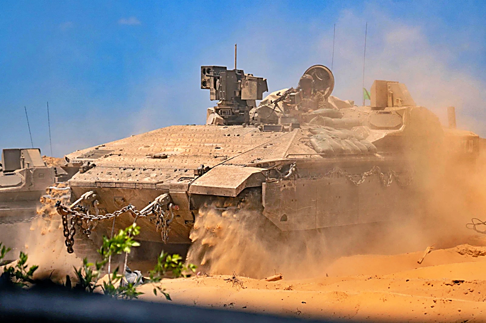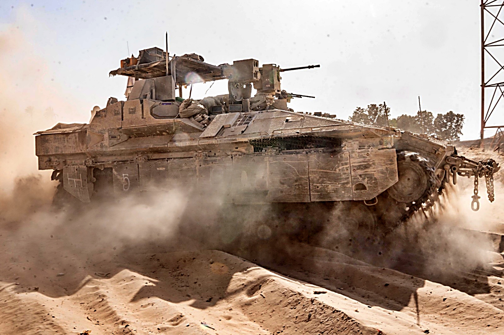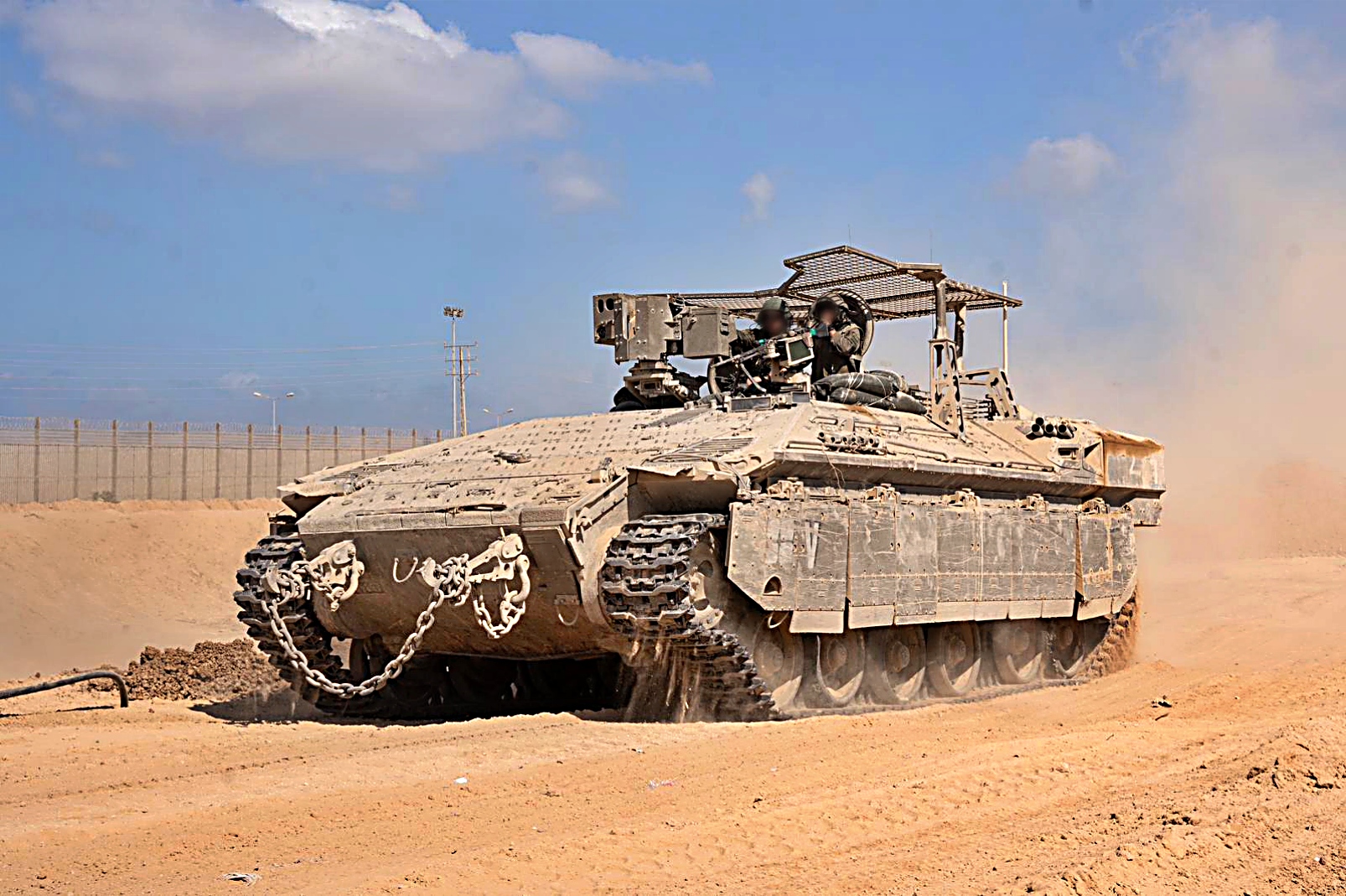 지난 10월 10일 1차 휴전협정이 지켜지지 않고 공습과 전투가 지속되고 있는 가자지구에 배치된 이스라엘군의 Namer 장갑차.
