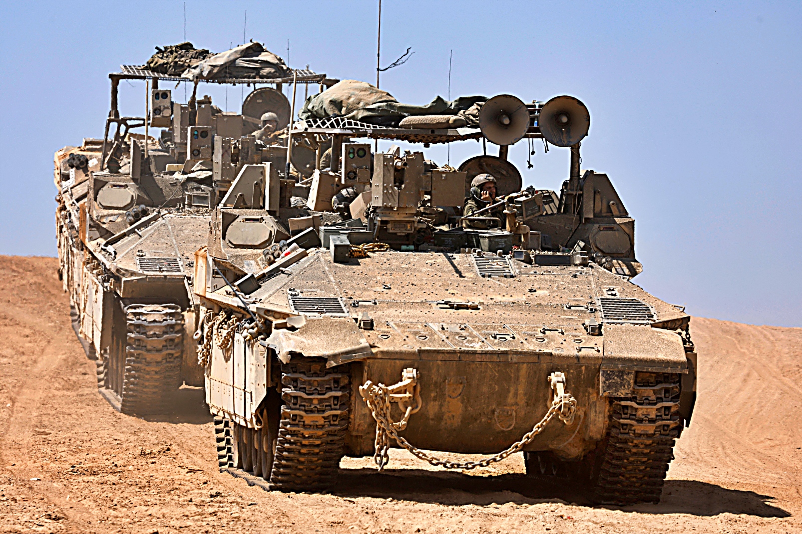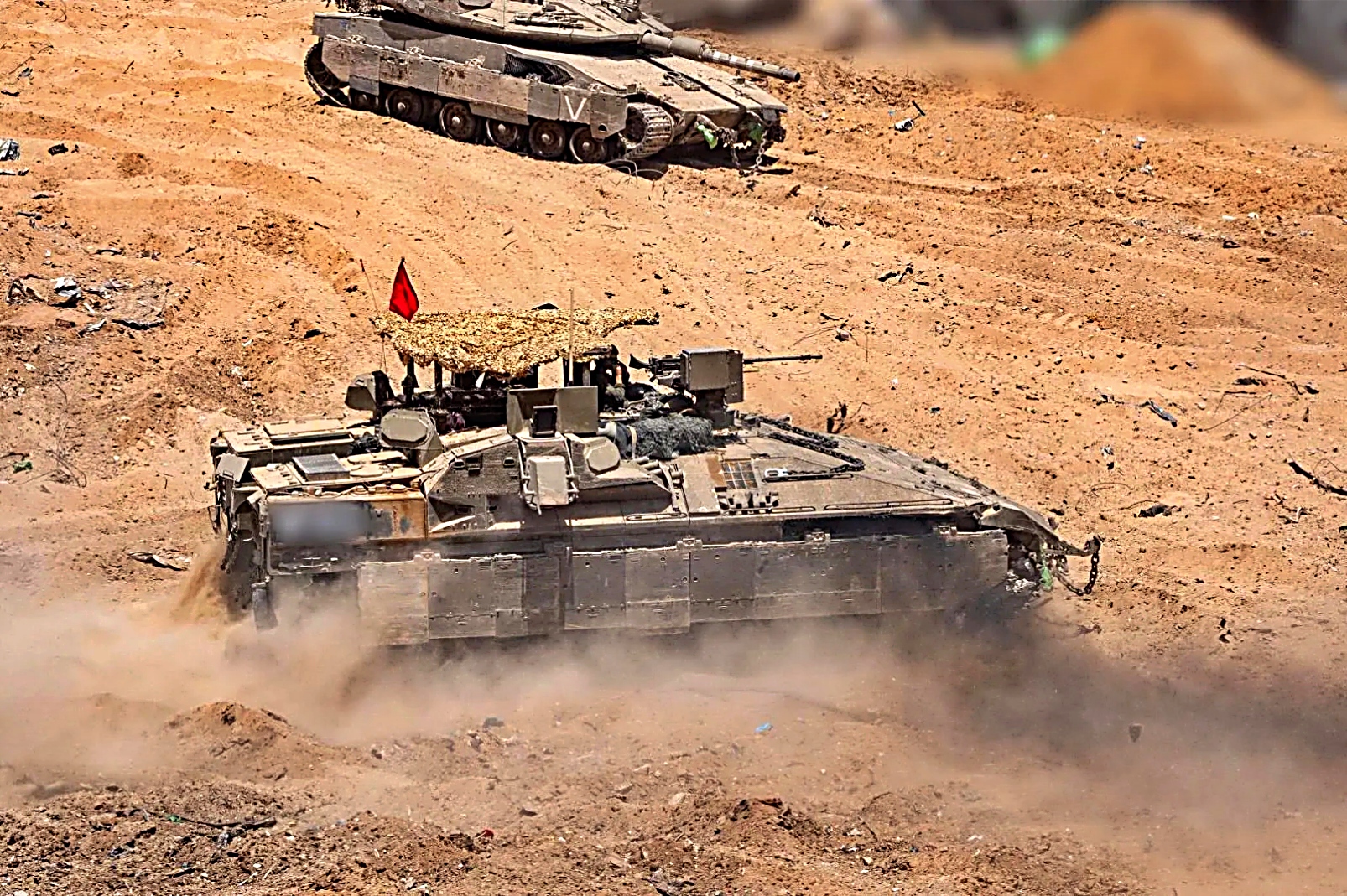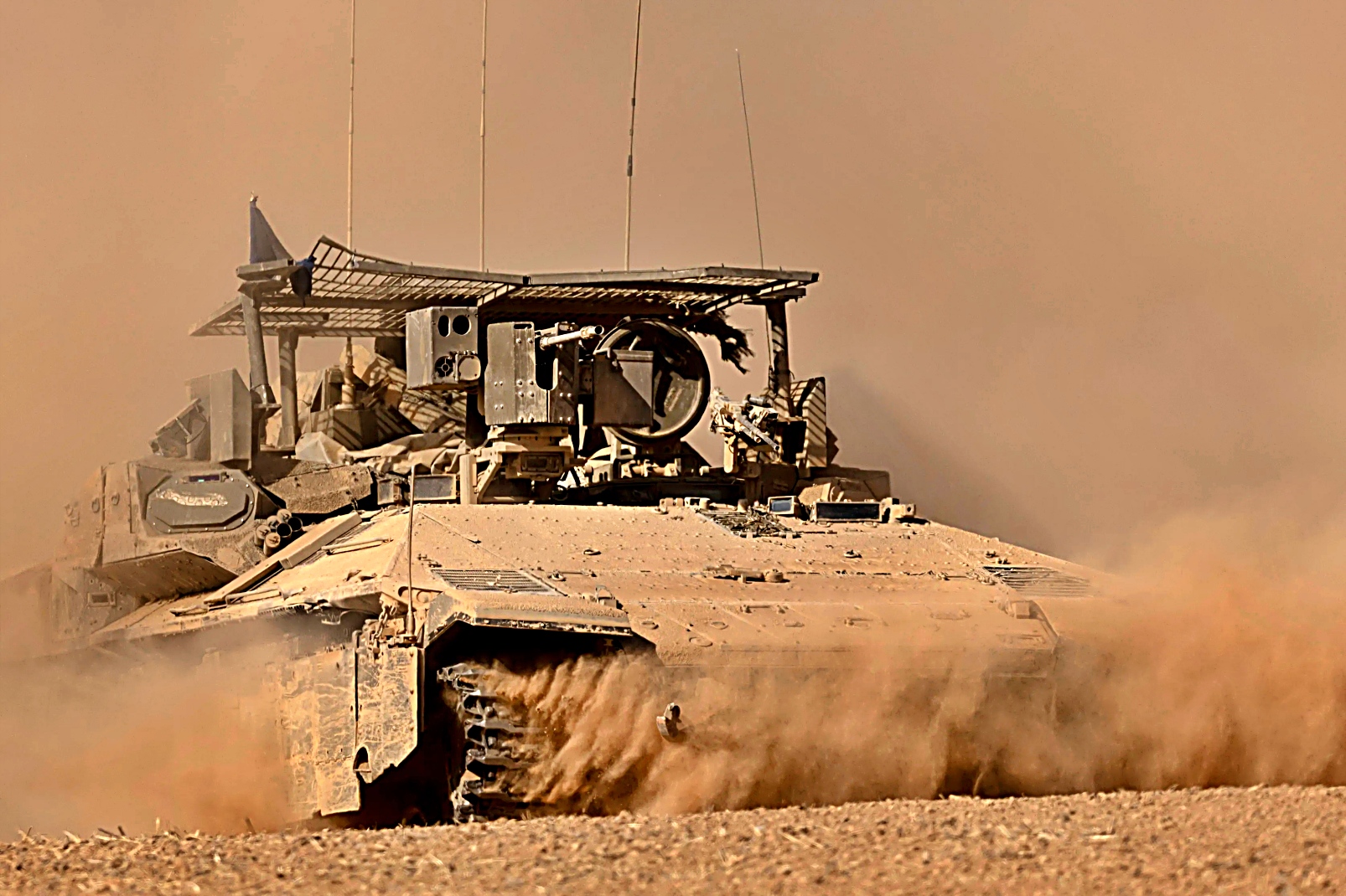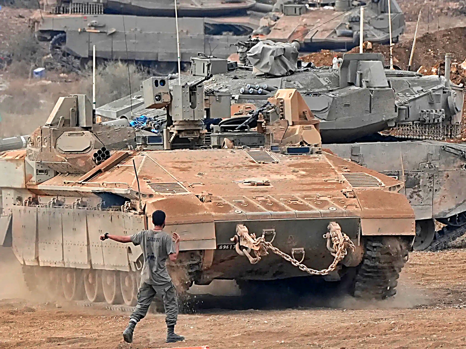 지난 10월 10일 1차 휴전협정이 지켜지지 않고 공습과 전투가 지속되고 있는 가자지구에 배치된 이스라엘군의 Namer 장갑차.