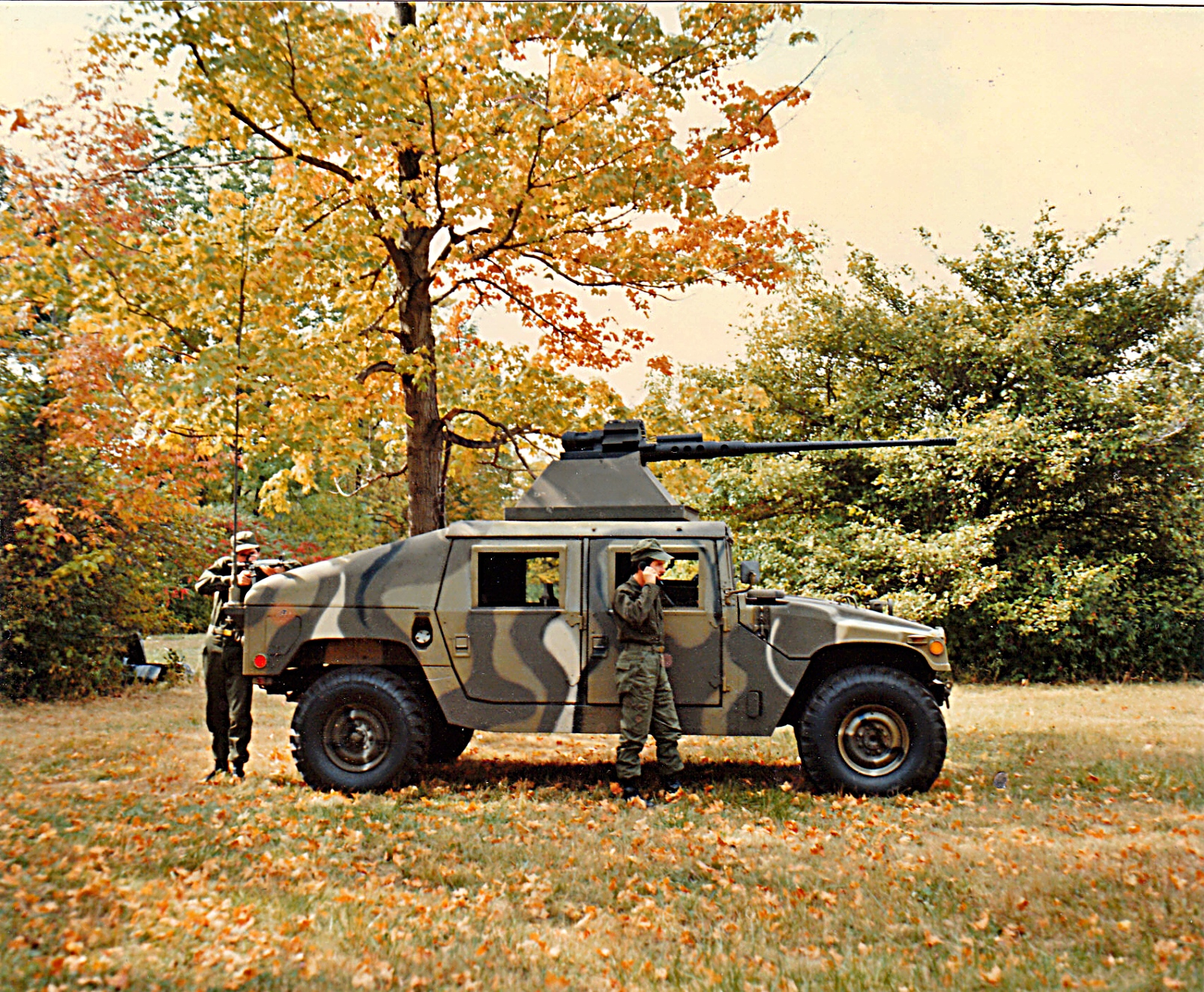 1985년부터 인도되기 시작한 M998 High Mobility Multipurpose Wheeled Vehicle (HMMWV; 일명: Humvee)에 화력 강화용으로 제안된 M242 Bushmaster 25mm chaingun을 장착한 무장형이 1986년 Missouri 주방위군의 Spetnaz 감시용으로 훈련에 투입됐다.