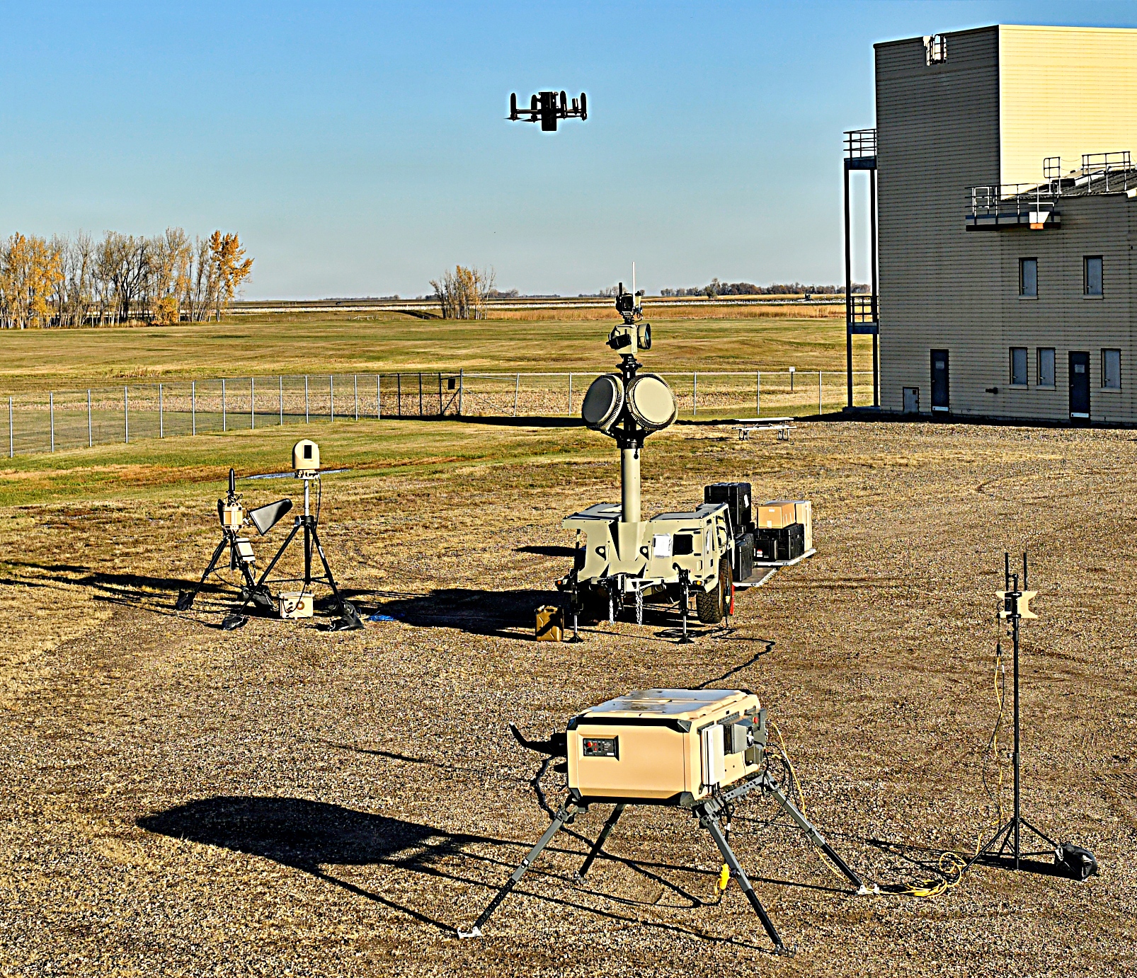 이 이동식 키트는 센서와 효과기를 통합한 것으로, 다음과 같은 요소를 포함해 완벽한 탐지·추적·식별·완화 체계를 구축한다: