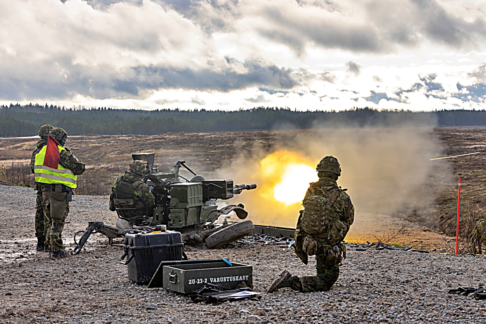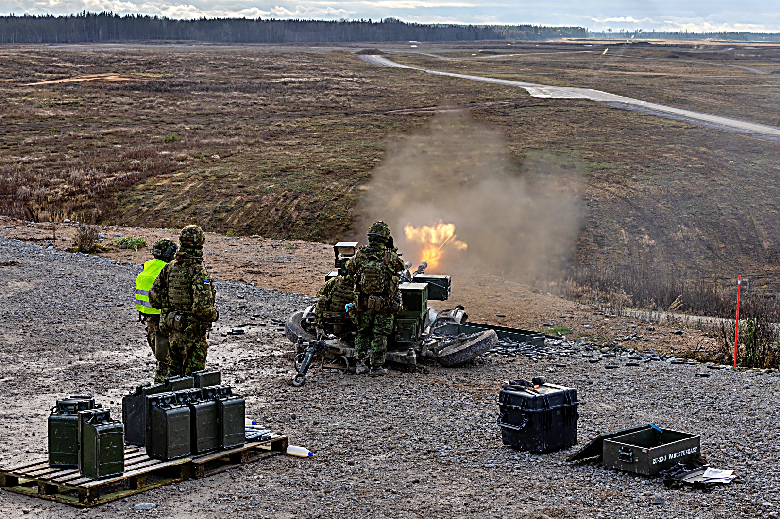 11월 둘째주 에스토니아 육군 제1보병여단 대공포대 포병소대장 보직 과정 수료생들이 ZU-23-2 대공포로 지상 및 공중 표적을 향해 첫 사격을 실시했다.