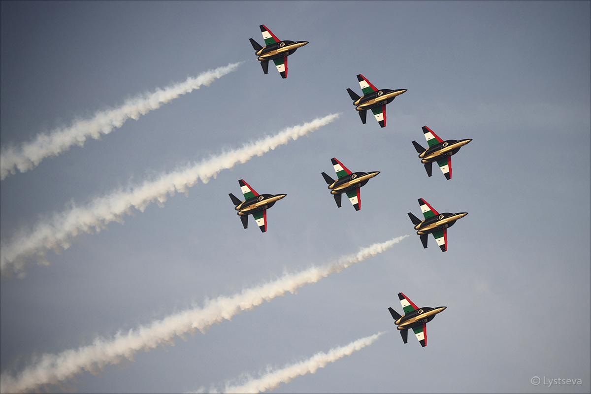 Dubai Airshow 2025 개막을 앞두고 예행연습중 아랍에미리트 공군 곡예 비행팀 'Fursan Al Emarat'가 중공 국영 항공 기업 AVIC 산하 Hongdu 항공기 산업 그룹(HAIG)이 제작한 L-15 Falcon 제트 훈련기/경공격기로 첫 선을 보였다. 이 곡예 비행팀은 수년간 이탈리아산 Leonardo/Aermacchi MB-339 제트훈련기를 운용해왔다.