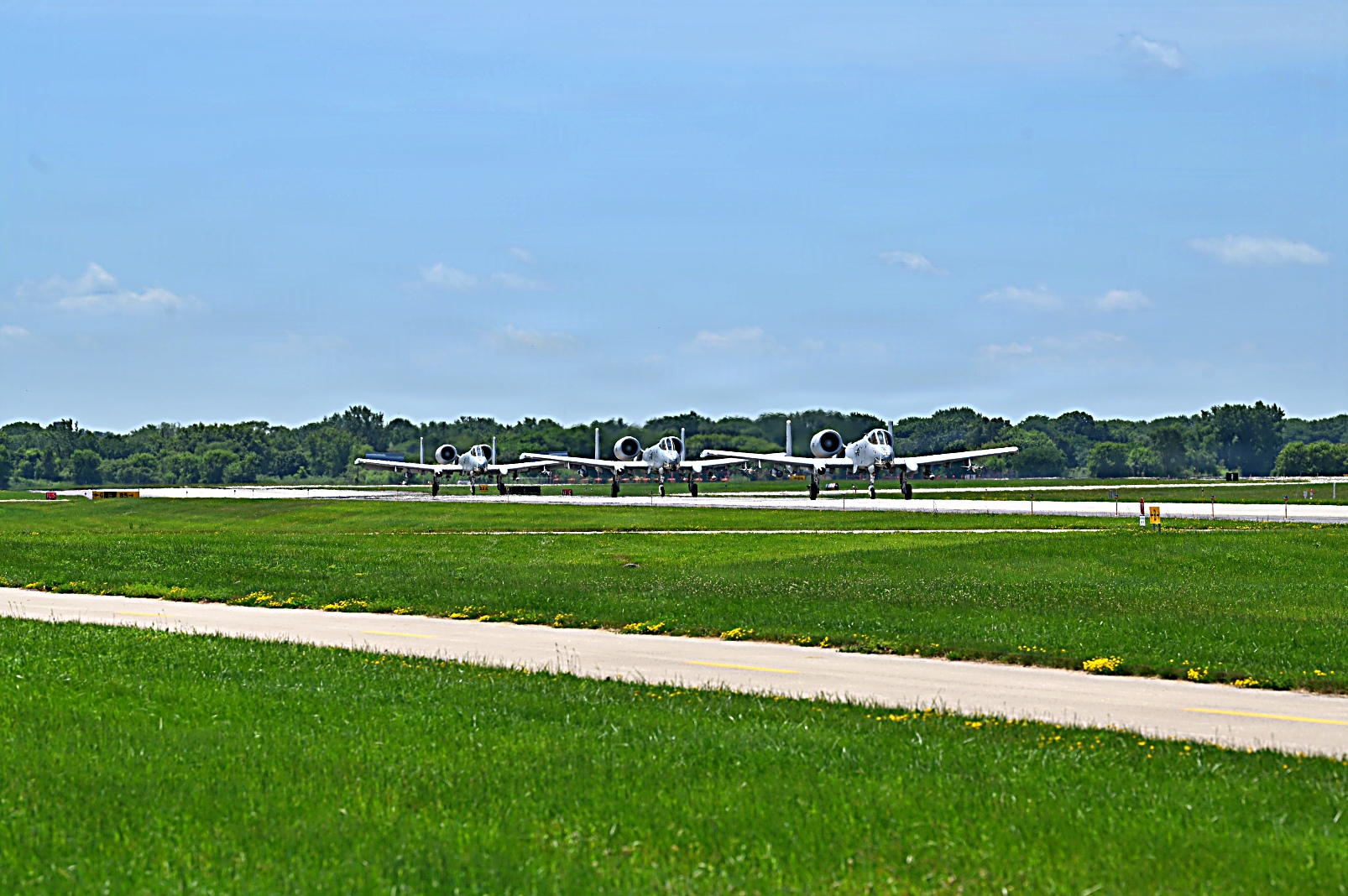 미주리 주방위 공군 제442전투비행단 소속 A-10C Thunderbolt II 공격기가 2025년 6월 17일 위스콘신 주 Madison 소재 Truax Field 주방위공군기지에서 합동 훈련을 실시했다.
