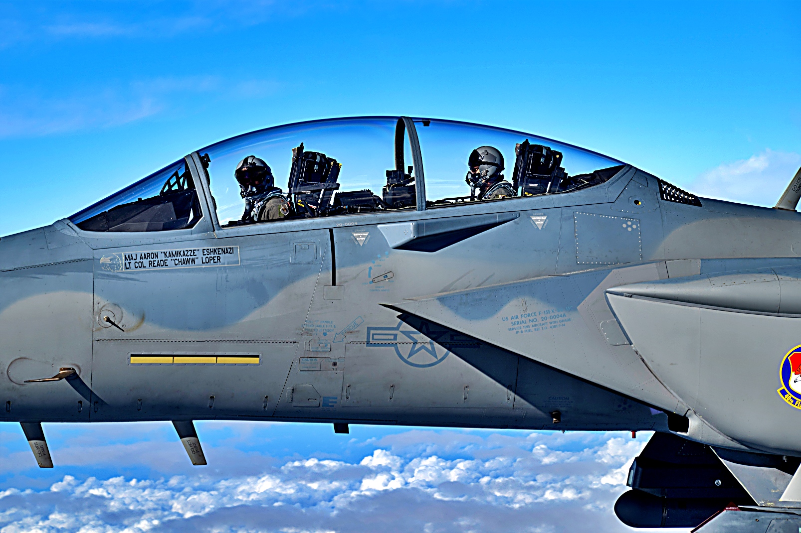 2025년 11월 21일 플로리다주 Eglin 공군기지에 소속된 미 공군 F-15EX Eagle II 전투기 4대가 멕시코만 해역을 비행하고 있다. 에글린 공군 기지 방문 일환으로 Troy Meink 공군 장관이 선두 전투기 후방 좌석에 탑승했다. 이번 비행은 53비행단이 개발 및 진전 중인 F-15EX 전술, 기법 및 절차(무기 탑재 능력, 차세대 생존성, 차세대 레이더·센서·네트워킹 능력 포함)를 장관이 숙지하는 기회를 제공했다.