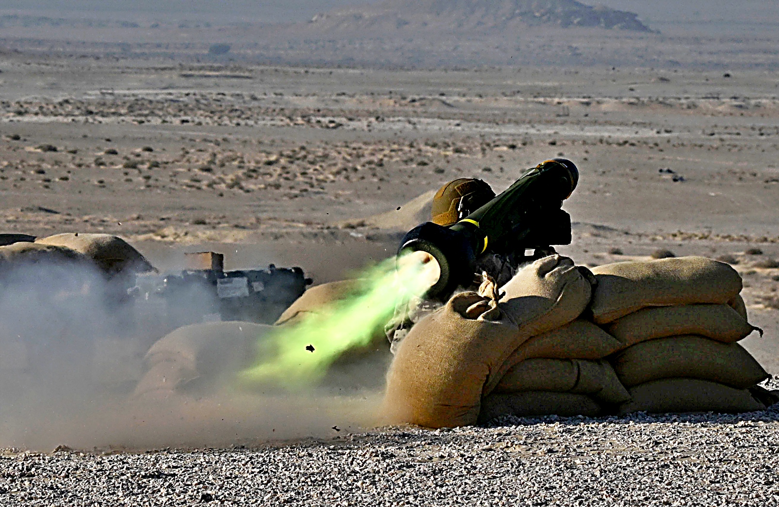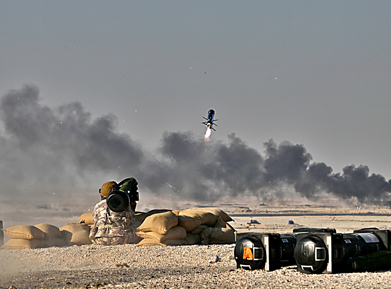 Javelin 대전차 미사일을 발사하는 카타르육군 병사