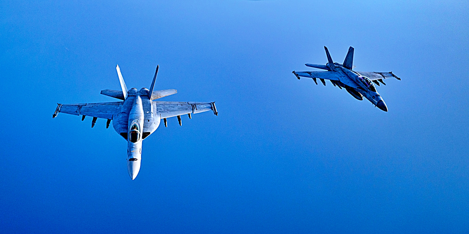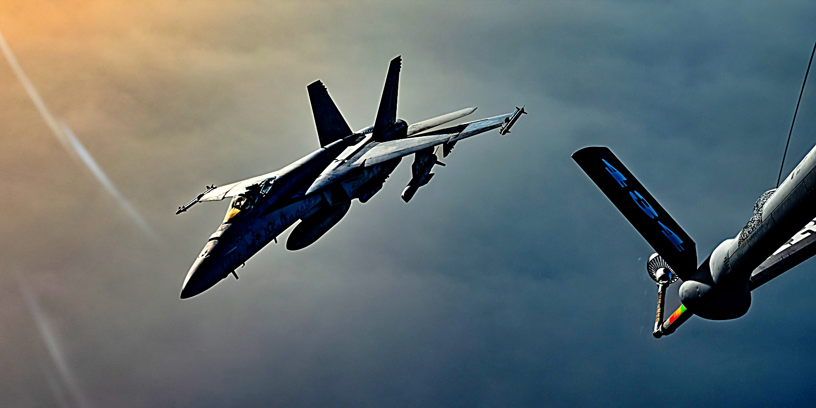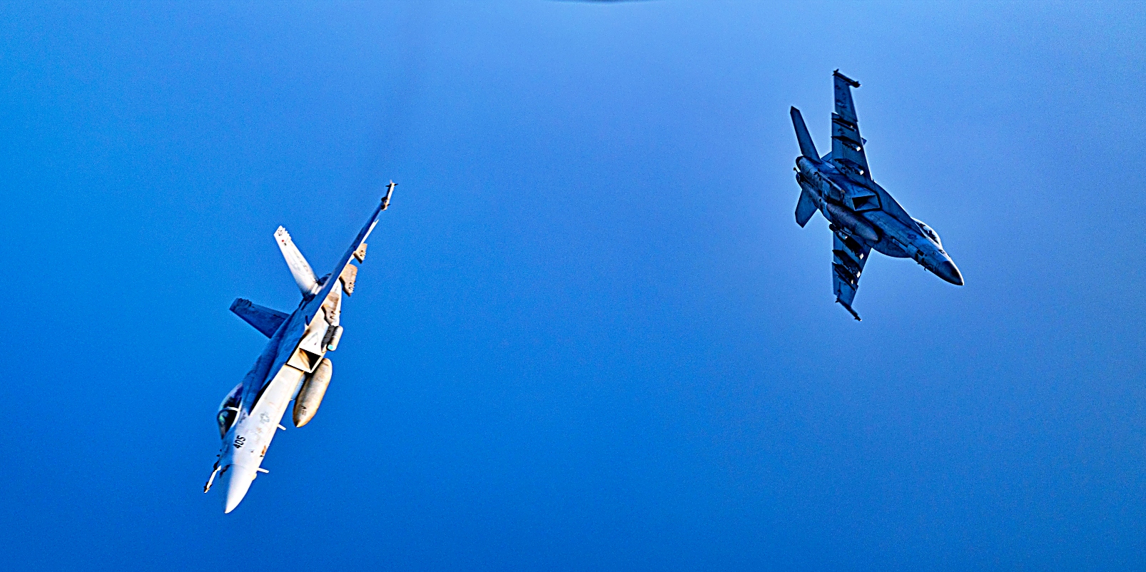 지난 2025년 4월 8일, 미 중앙사령부 관할 홍해 상공에서 미 해군 Harry S. Truman Carrier Strike Group 소속 F/A-18 Super Hornet 전폭기들이 미 공군 KC-135 Stratotanker의 공중 급유를 받으며 초계 비행을 펼치고 있다.