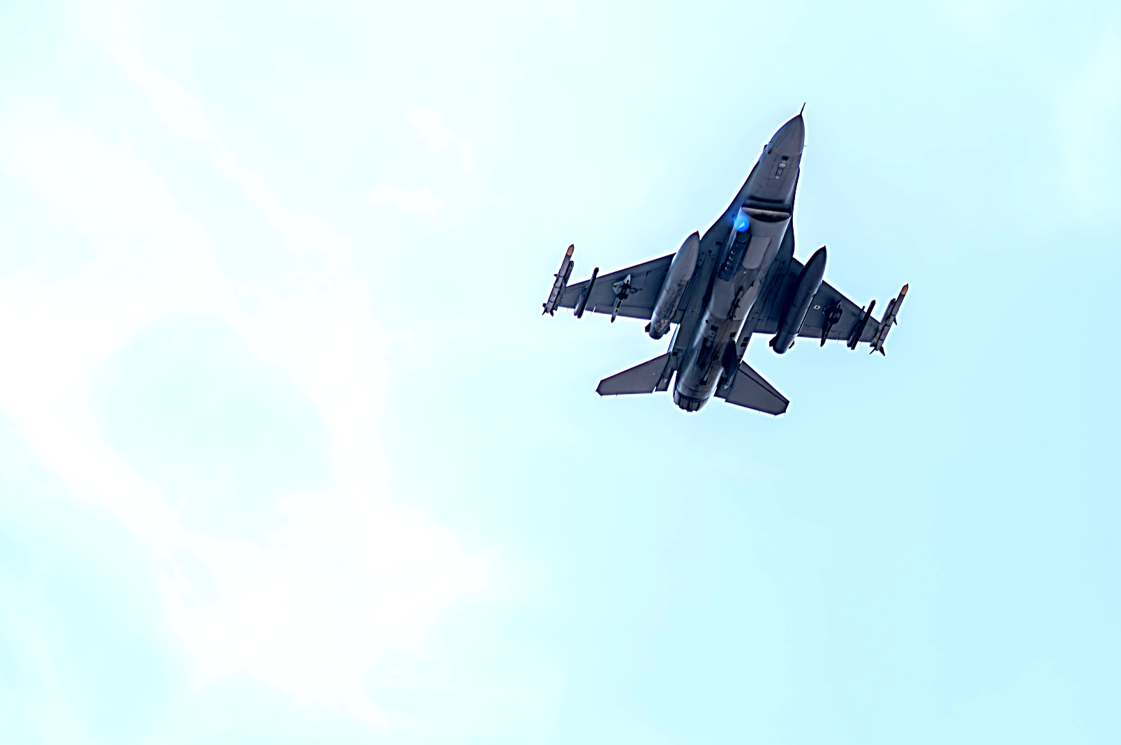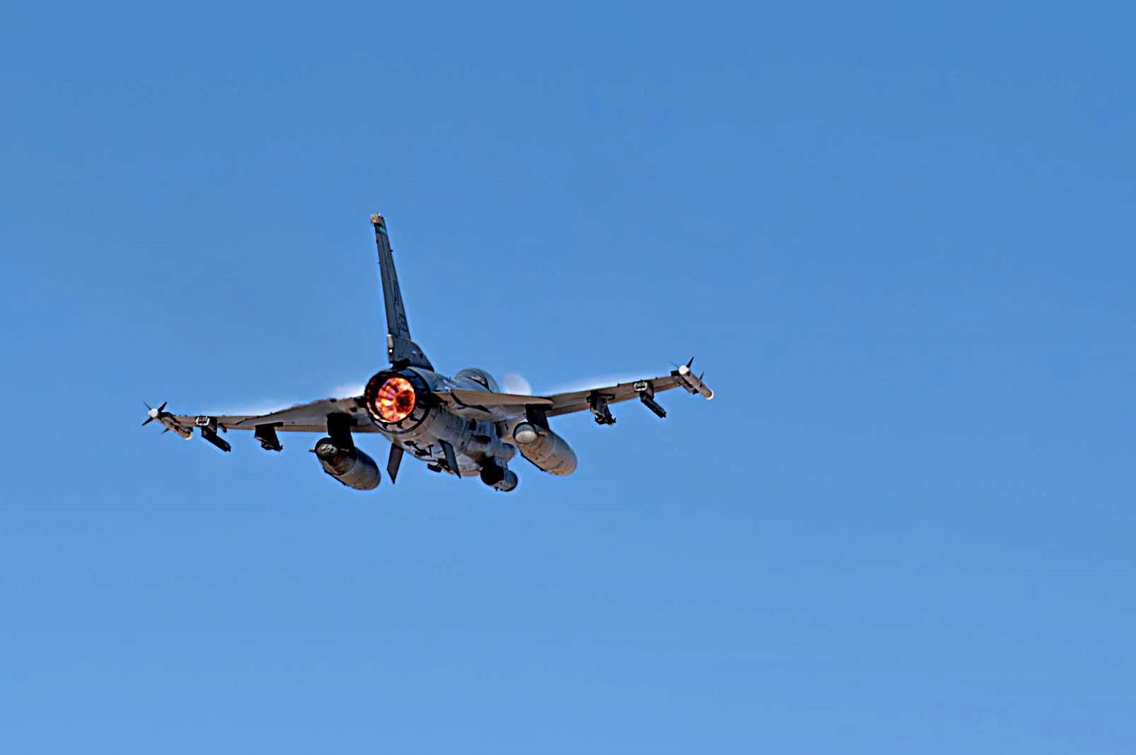 2025년 11월 18일, 미 중앙사령부 관할 구역중 하나인 카타르에서 진행된 Ferocious Falcon 6 훈련 중, 미 공군 제555원정전투비행대대 소속 F-16C Fighting Falcon 전투기 조종사가 제한 없는 상승 비행을 수행하고 있다. 이번 훈련에 참가한 부대는 중동 지역에서 공중, 육상, 해상 전역에 걸친 연합군 협력 관계를 구축하며 전투 준비 태세를 강화하고 있다.