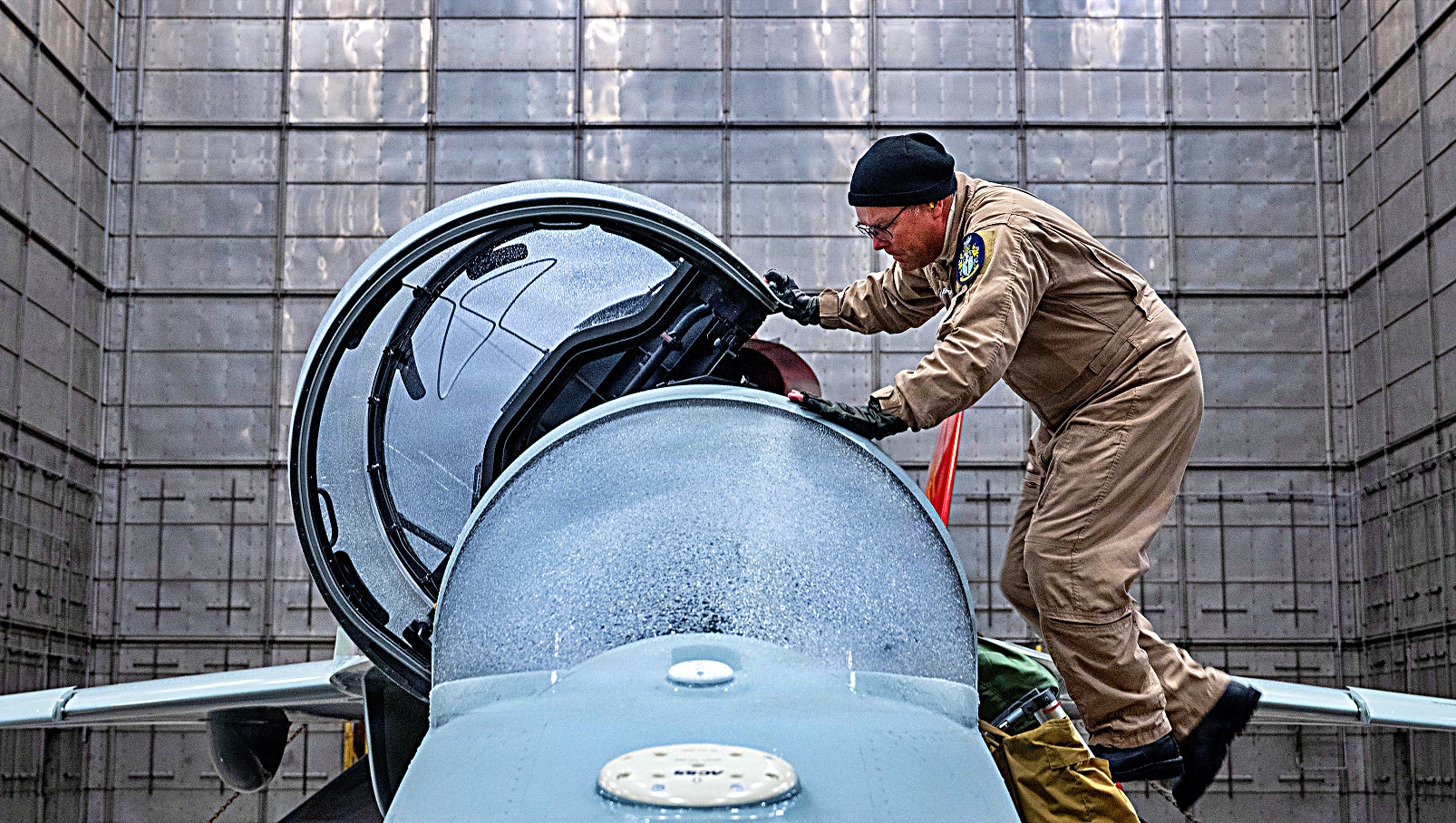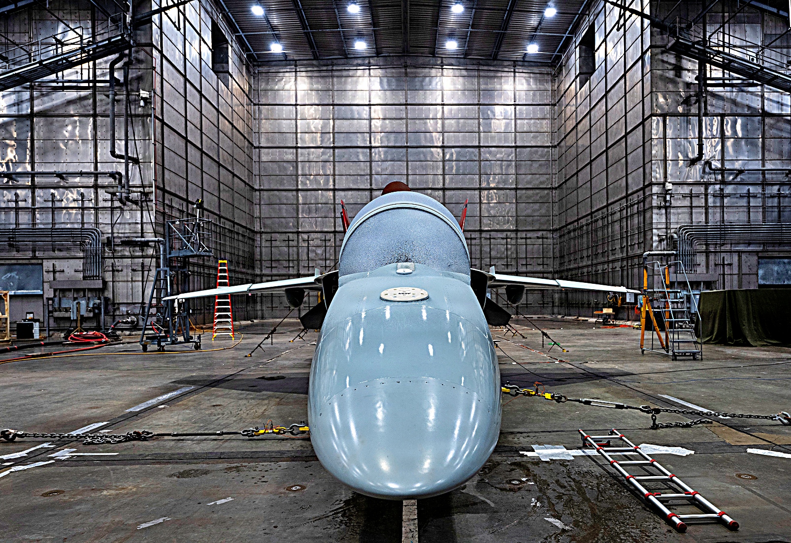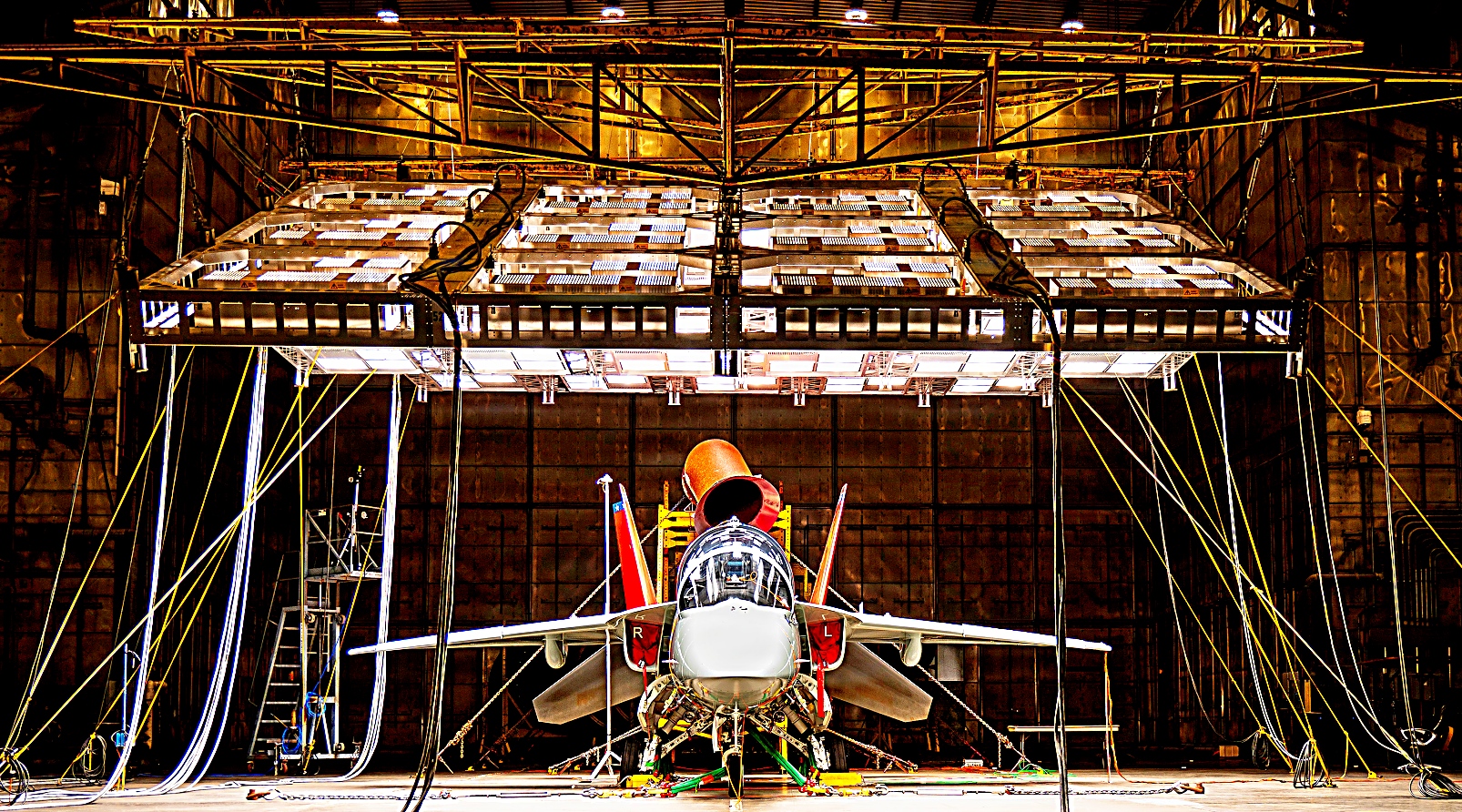 T-7A Red Hawk 정비팀이 6월 16일 플로리다주 에글린 공군기지의 McKinley Climatic Lab의 열 발생용 밝은 조명 아래 항공기를 준비하고 있다. 공군의 최신 훈련기는 한 달간의 시험 기간 동안 화씨 110도(섭씨 약 43도)에서 영하 25도(섭씨 약 -31도)에 이르는 극한 온도와 높은 습도를 경험했다. 이 시험은 작전 배치 시 공군에서 직면할 극한 환경에서 항공기, 계기 및 전자 장비가 어떻게 견디는지 평가하기 위한 것이다.