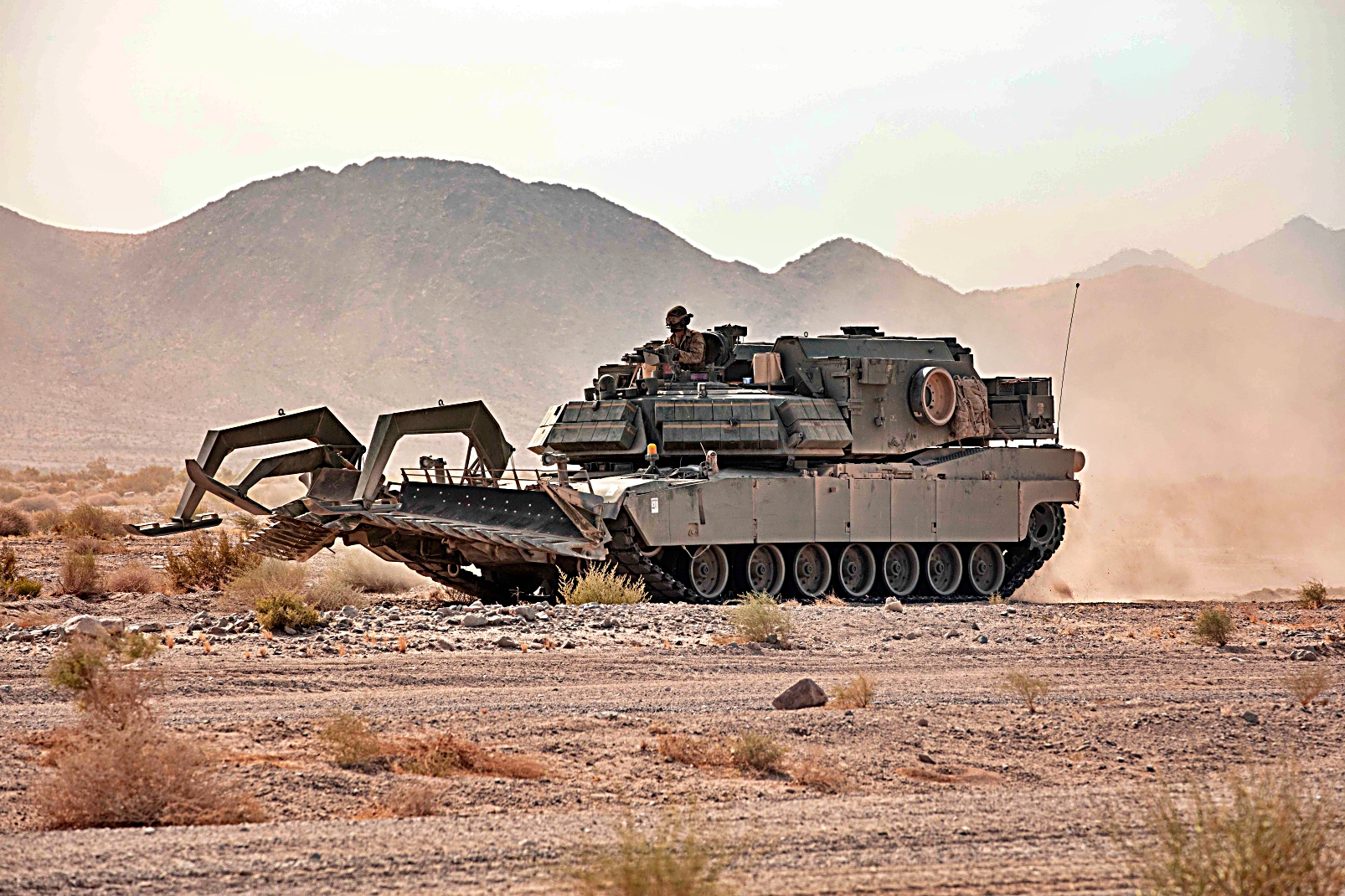 2024년 7월 28일부터 8월 1일, 캘리포니아주 Fort Irwin 소재 국립훈련센터에서 진행된 Rotation 24-09 훈련 중, 미 육군 제3보병사단 제1기갑여단전투팀 제10공병대대 소속 M1074 Joint Assault Bridge System (JAB, JABS) 돌격 교량전차와 제1기갑여단전투팀 제2공병대대 소속 M1150 Assault Breacher Vehicle과 제1기갑여단전투팀 제64기갑연대 제1대대 소속 M1 Abrams 주전차, 제7기병연대 제5기병대대 소속 Bradley 전투차와 제41야전포병연대 제1대대 소속 Bradley 전투차 등이 돌파 작전 현장으로 기동하고 있다. 국립훈련센터의 순환훈련은 육군 여단 전투팀이 현재 및 미래의 비상사태에 대응할 수 있도록 다목적성, 신속 대응력 및 지속적인 가동 태세를 유지하도록 보장한다.