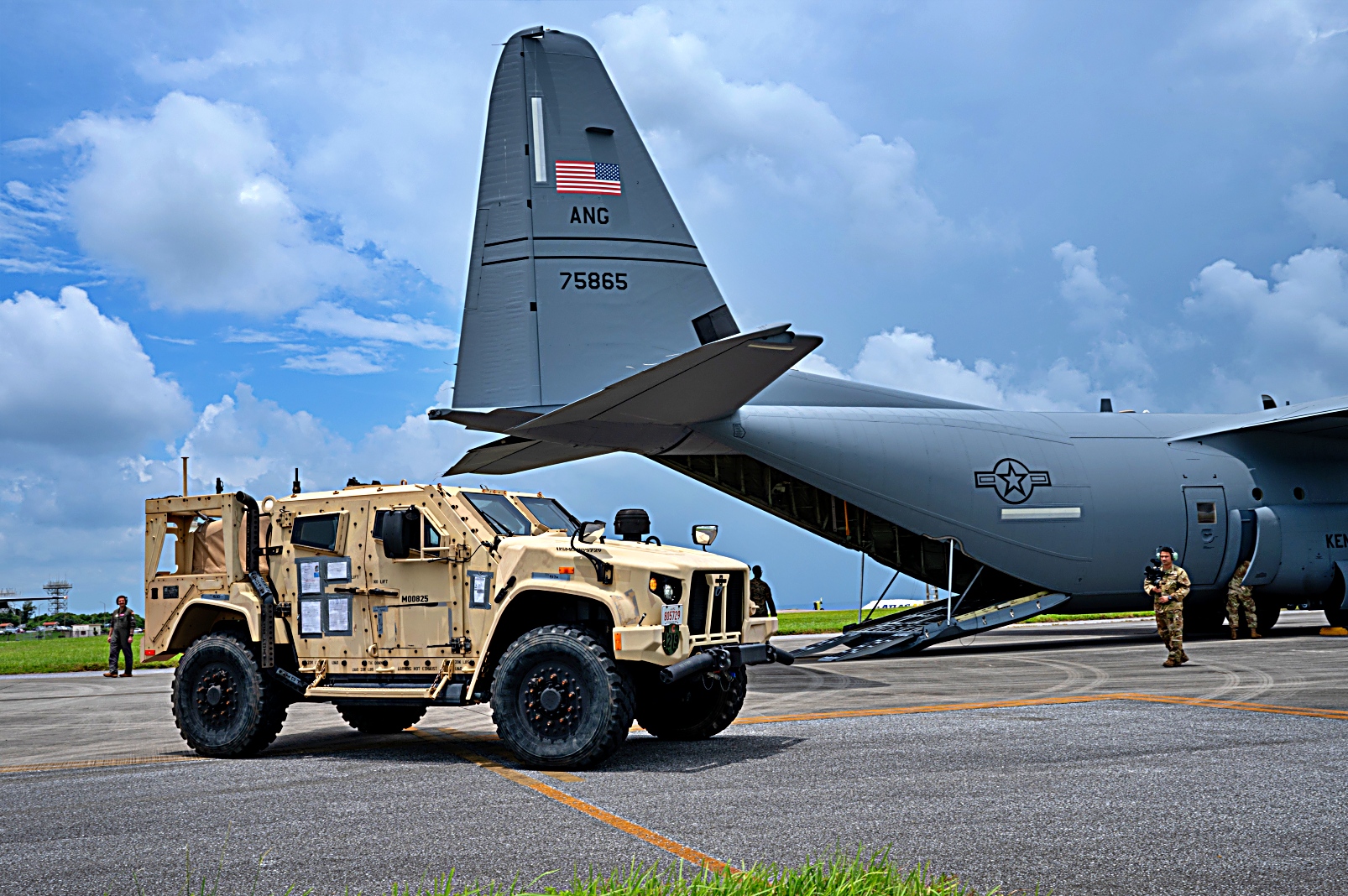 지난 2025년 7월 16일, 일본 오키나와 Kadena 공군기지에서 한국 해병대 훈련 프로그램 25-2 ( Korea Marine Exercise Program 25-2) 지원을 위해 미 해병대 III 해병원정군 제3해병사단 소속 해병대원들이 미국 미네소타 주 방위군 제133수송비행단 소속 C-130H Hercules 수송기를 이용하여 해병대원을 수송하고 있다. 또한 Kentucky 주방위공군 제123공수정비대대 소속 공군 병사들이 MRC-145 합동 경전차(Joint Light Tactical Vehicle)를 미 공군 C-130J Super Hercules 수송기에 적재하고 있다.