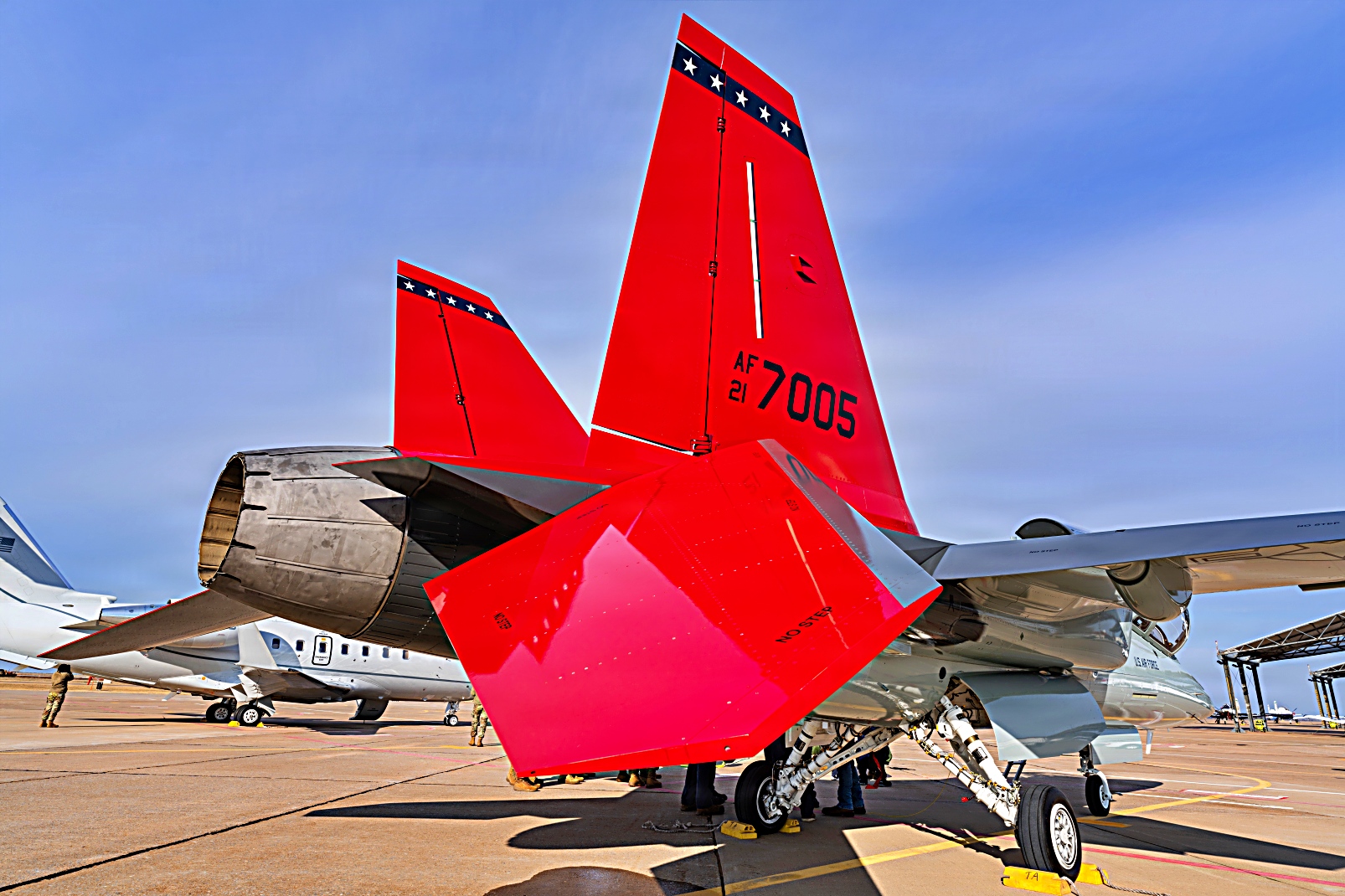등록번호 21-7005인 T-7A는 미주리주 세인트루이스에 있는 보잉 전투기 조립 및 인도 센터에서 San Antonio-Randolph 합동기지로 이동했다.