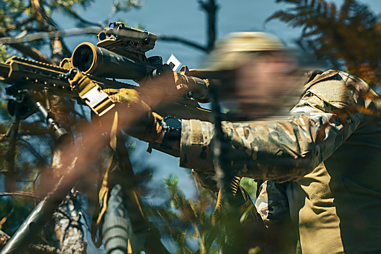 2025년 9월 20일, 오스트리아 Hochfilzen 훈련장에서 열린 국제 특수훈련센터(ISTC : International Special Training Center)의 알파인 저격수 과정 (Alpine Sniper Course)에서 조지아 특수작전부대 저격수들, 미국 그린베레 저격수 및 네덜란드 특수작전군 저격수들이 표적에 사격하고 있다. 알파인 저격수 과정은 2주간 진행되며 저격수들이 산악 지형에서 작전 수행에 필요한 기술을 습득하고 훈련받도록 설계됐다.