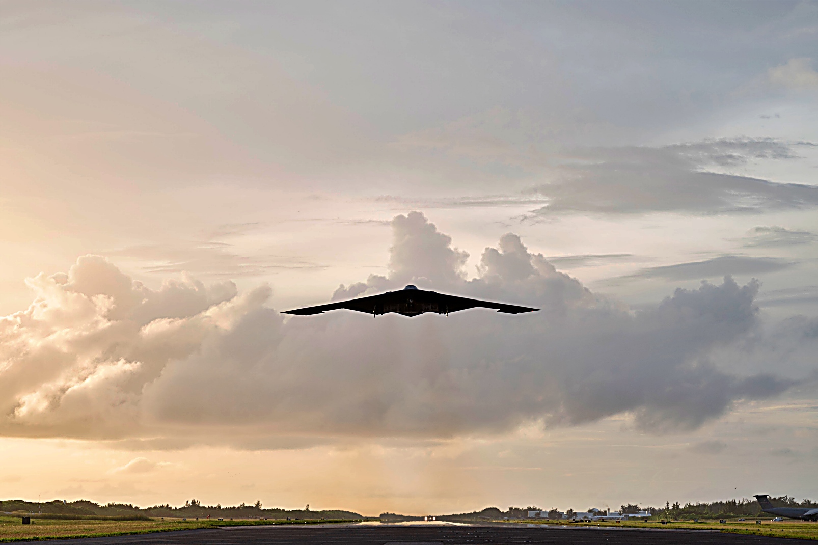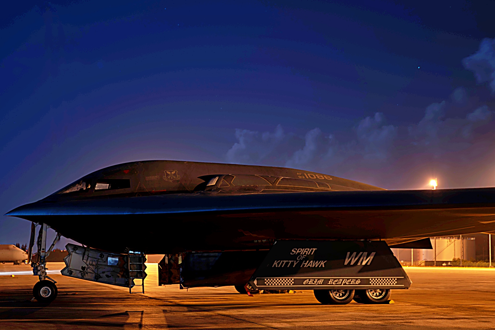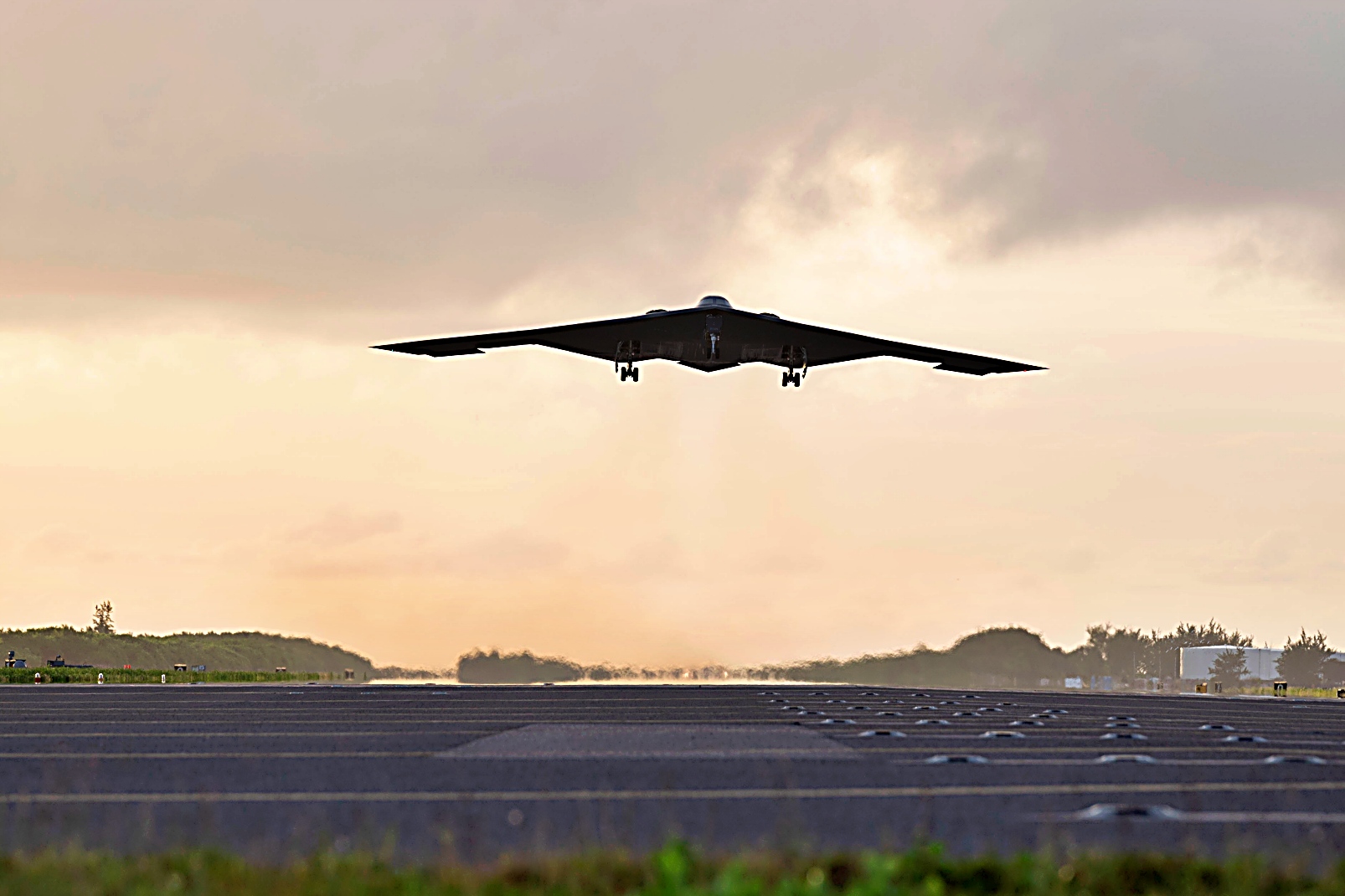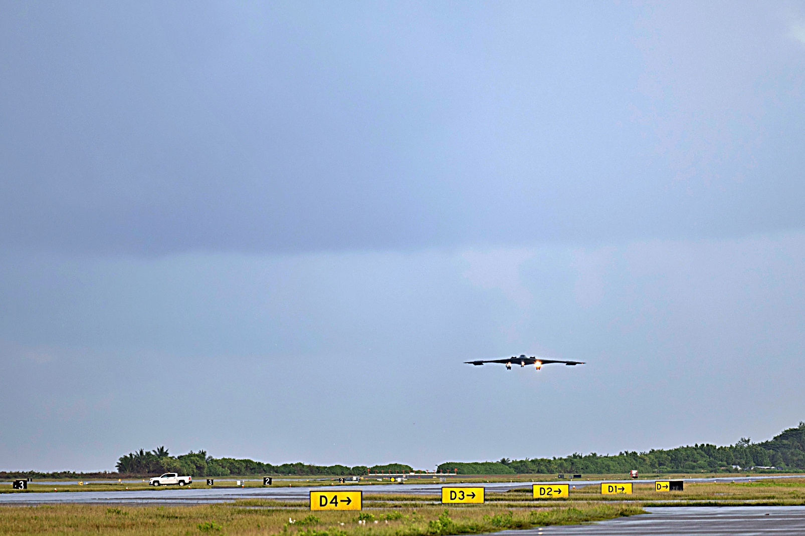 2025년 4월 13일, 미 공군 B-2 Spirit 스텔스 폭격기가 영국령 인도양 영토 Diego Garcia에서 전투 임무 비행을 수행하기위해 KC-135 Stratotanker 공중급유기와 이륙하고 임무 수행 후 착륙하고 있다. 임무 수행후 기체를 점검한 B-2는 이틑날인 14일에도 전투임무 수행을 위해 출격하는 모습을 보여줬다.