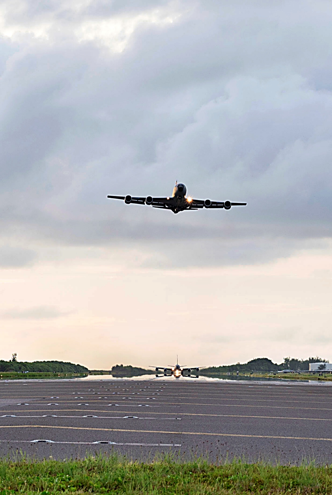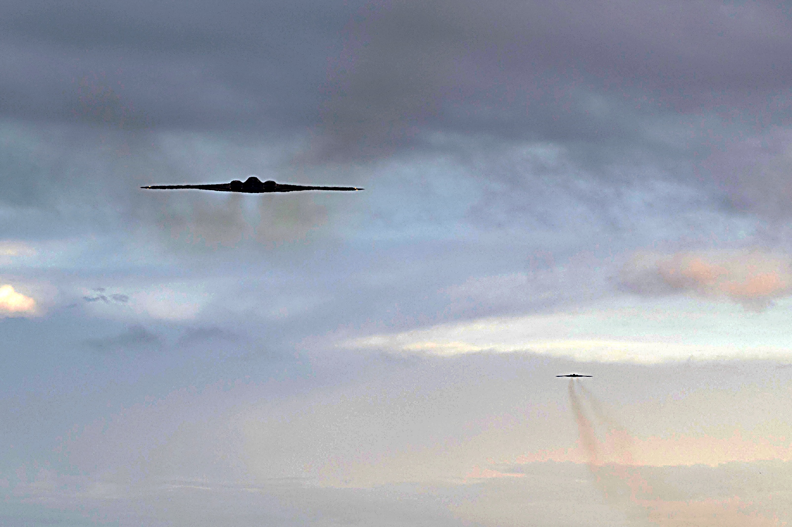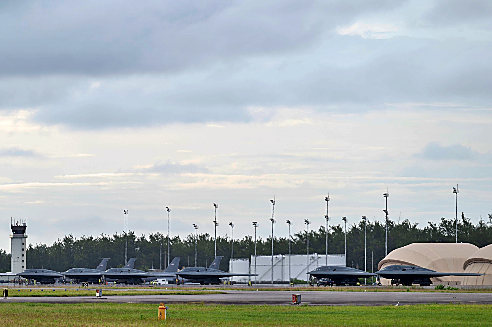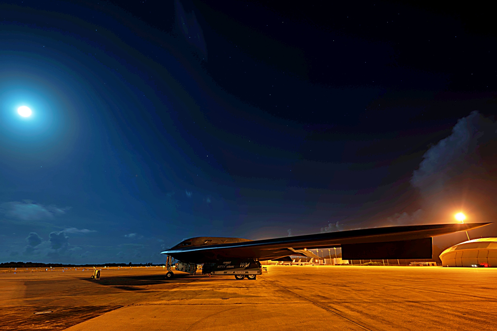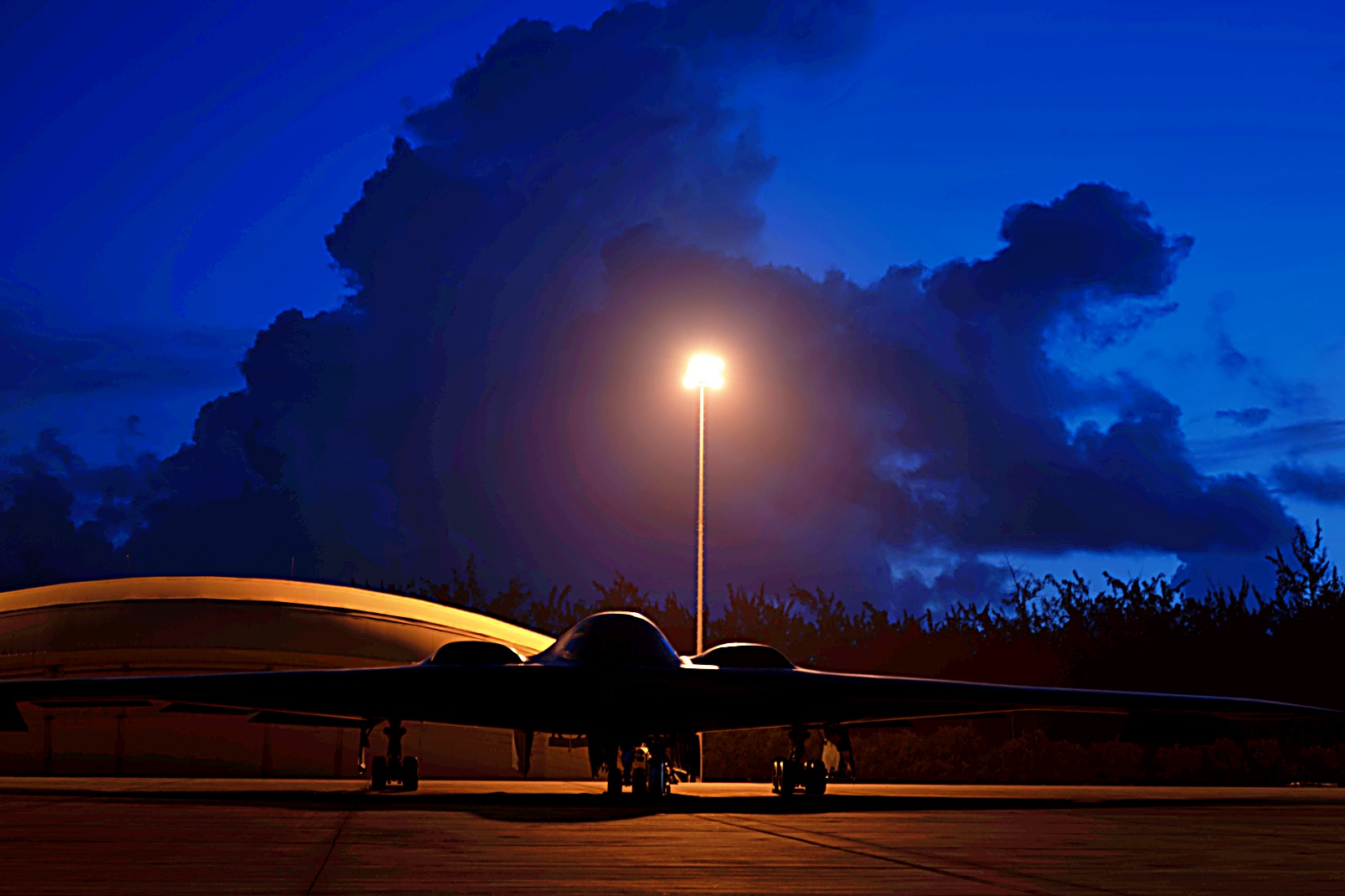 2025년 4월 13일, 미 공군 B-2 Spirit 스텔스 폭격기가 영국령 인도양 영토 Diego Garcia에서 전투 임무 비행을 수행하기위해 KC-135 Stratotanker 공중급유기와 이륙하고 임무 수행 후 착륙하고 있다. 임무 수행후 기체를 점검한 B-2는 이틑날인 14일에도 전투임무 수행을 위해 출격하는 모습을 보여줬다.
