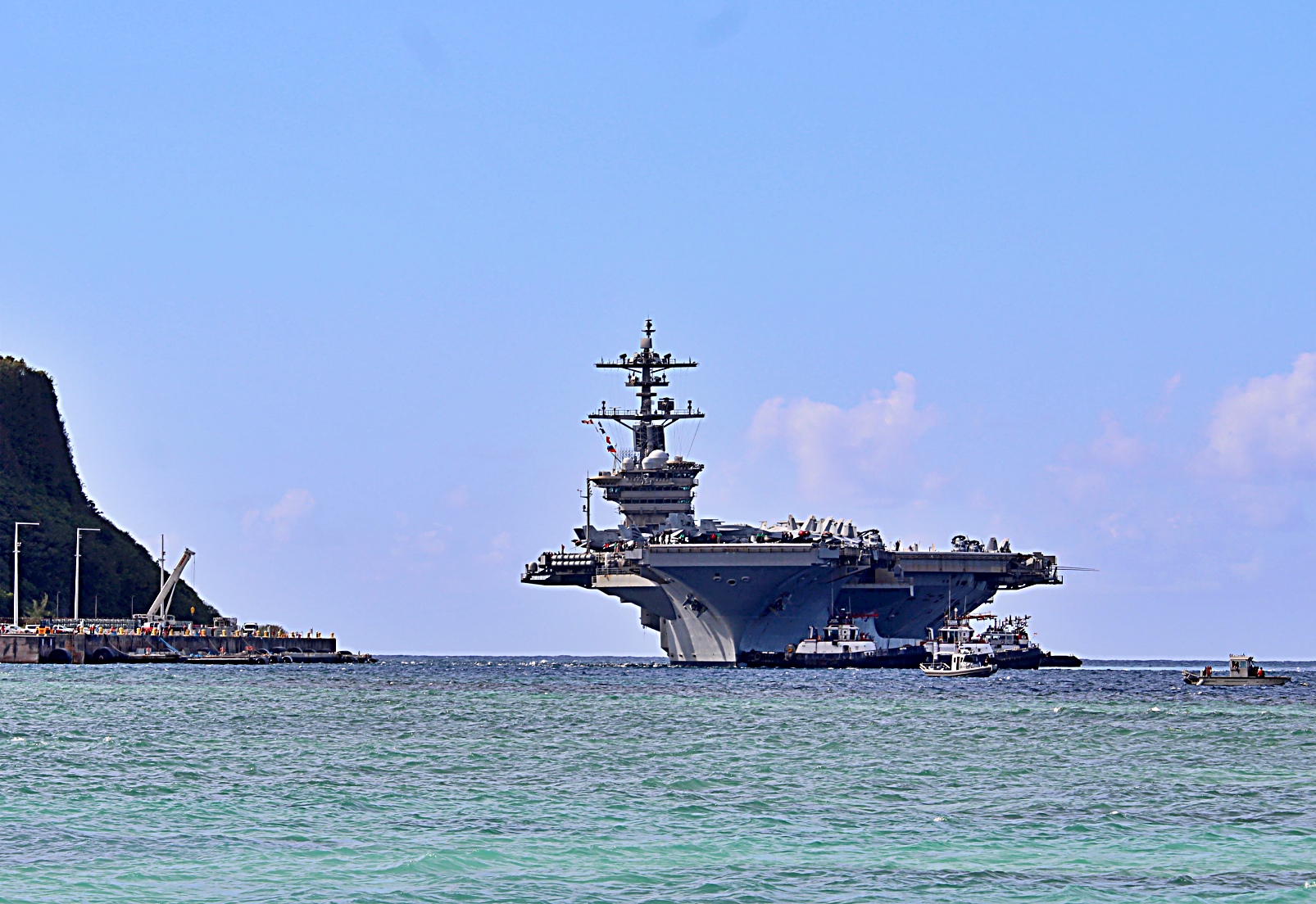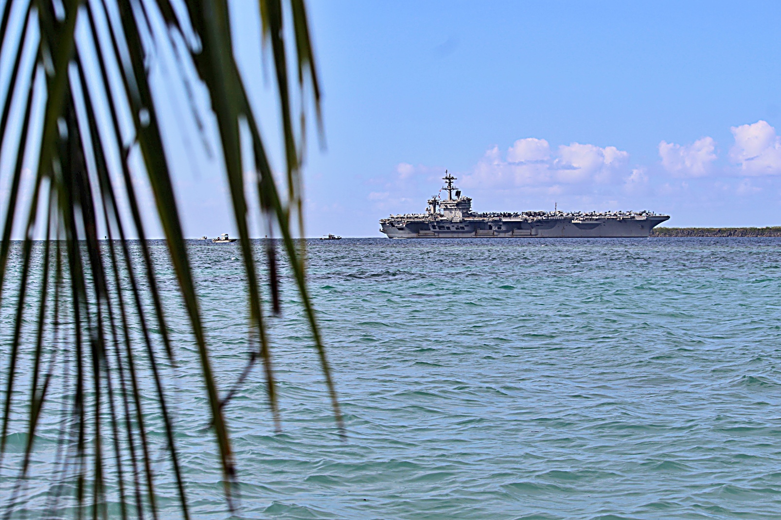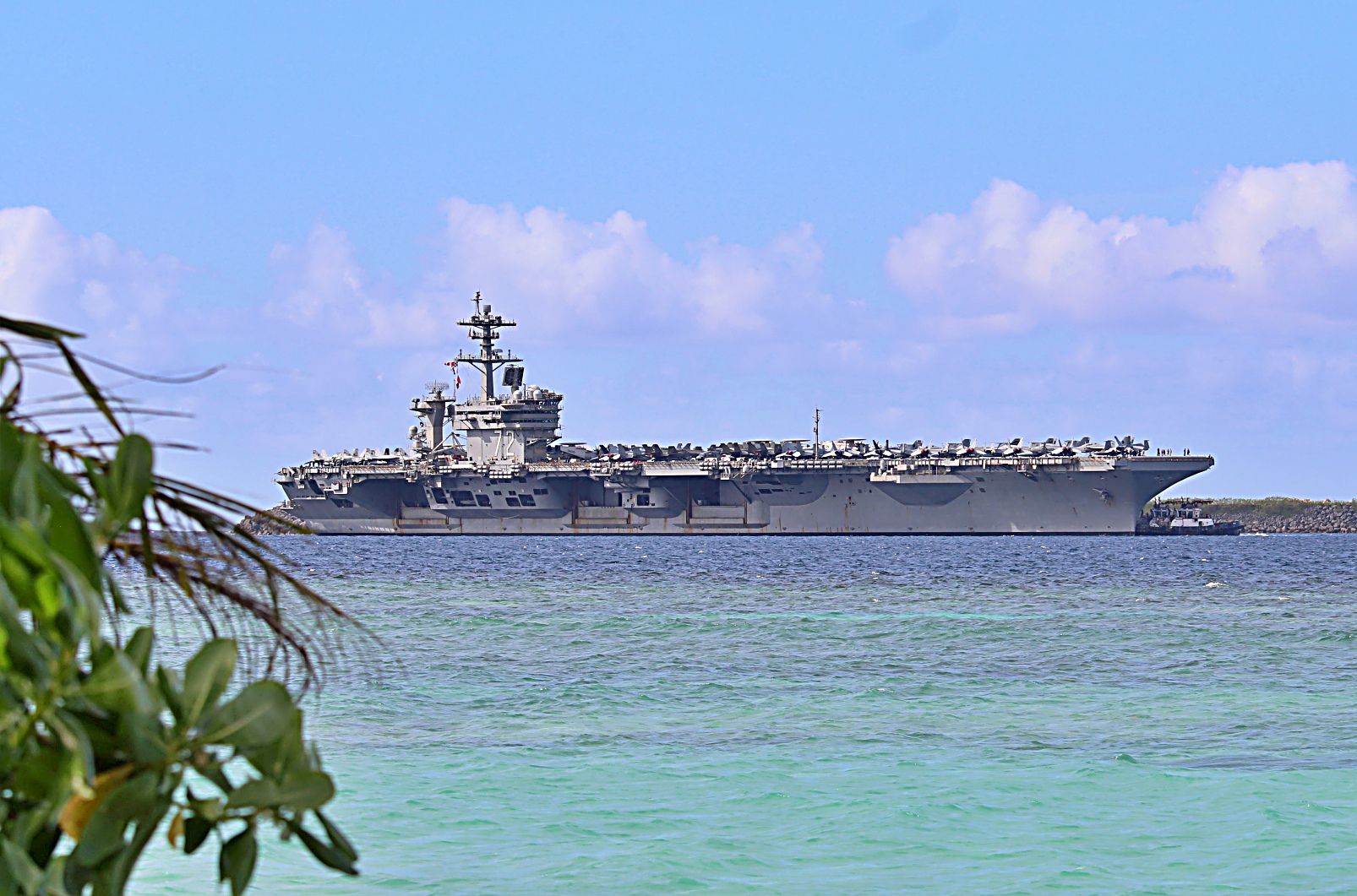 미 해군 Nimitz급 항공모함 USS Abraham Lincoln (CVN 72)함이 예정된 기항을마치고 2025년 12월 11일 괌 해군기지에서 출항하고 있다. Abraham Lincoln Strike Group은 자유롭고 개방된 인도태평양 지역을 지원하는 신속대응 전력으로서 동맹 및 파트너십을 통한 상호 운용성을 강화하기 위해 미 제7함대 작전 구역에 정기적으로 배치됐다.