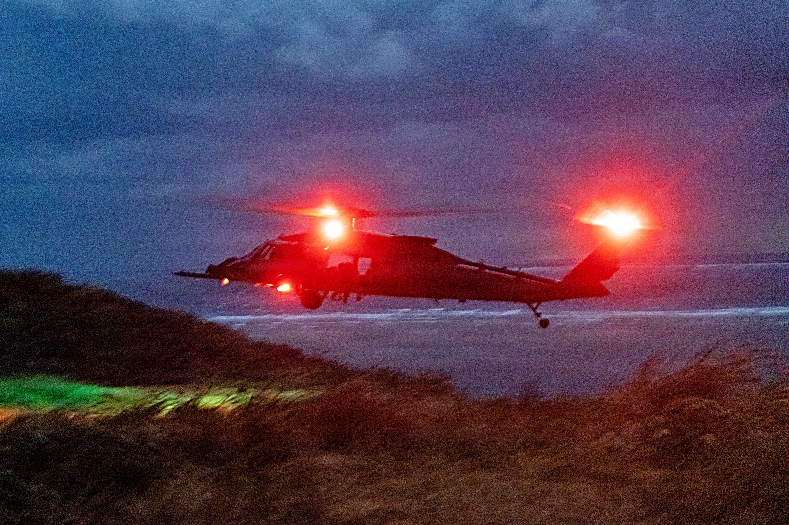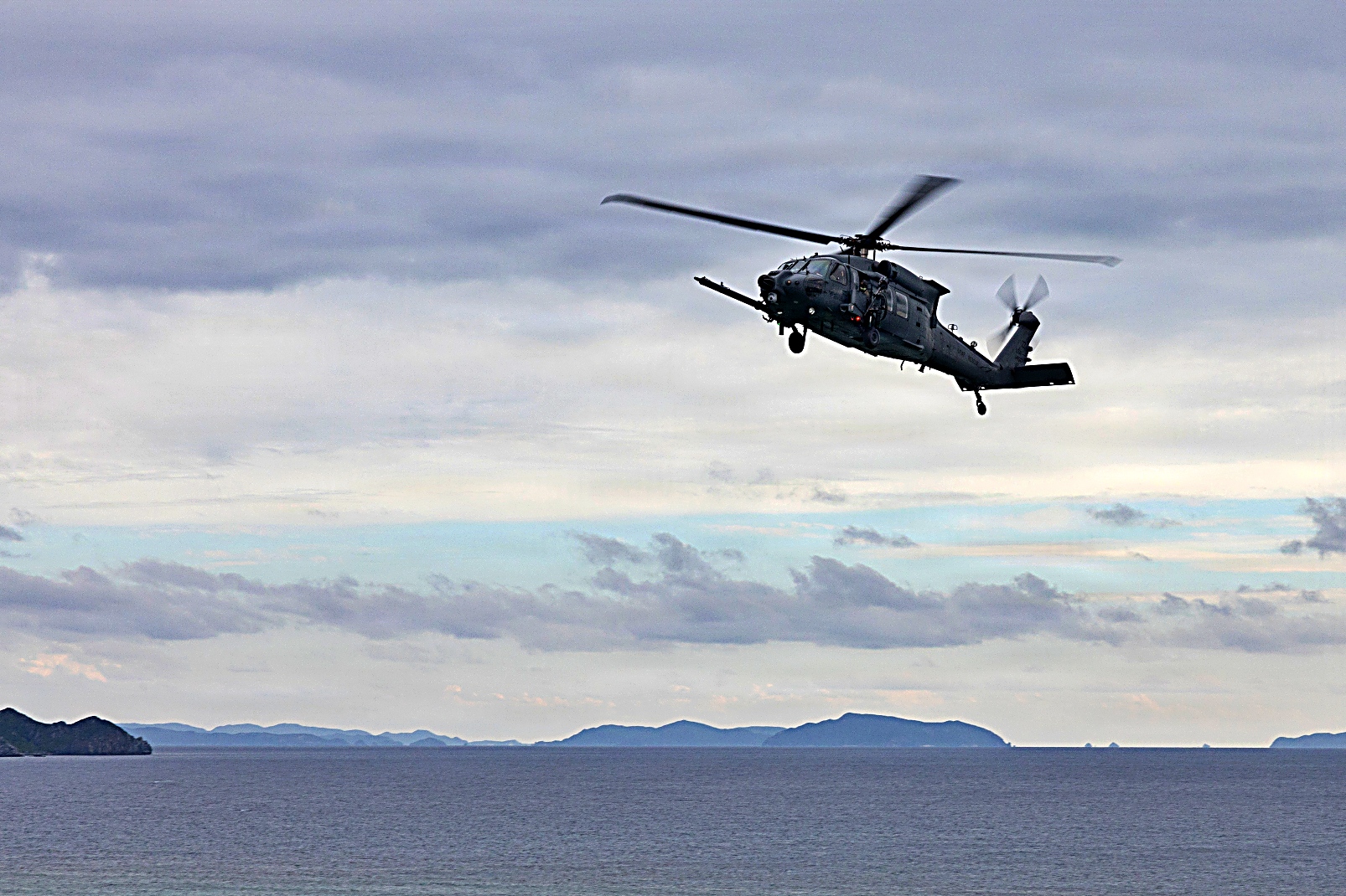 미 해병대 제3항공단 제39항공군에 배속된 HMLA-369경공격헬기비행대대 소속 UH-1Y Venom 헬기와 AH-1Z Viper 공격헬기 및 미 공군 제33구조비행대대 소속 HH-60W Jolly Green II 전투탐색구조 헬기가 2025년 12월 2일 일본 오키나와 해안에서 실시된 MEUEX 훈련의 일환으로 실사격 훈련 중 근접항공지원을 제공하고 있다. 이 훈련은 합동 심층항공지원 및 근접항공지원 능력을 향상시켜 전반적인 전투준비태세를 강화하고 향후 훈련 및 작전에 대비하는 데 목적이 있었다.