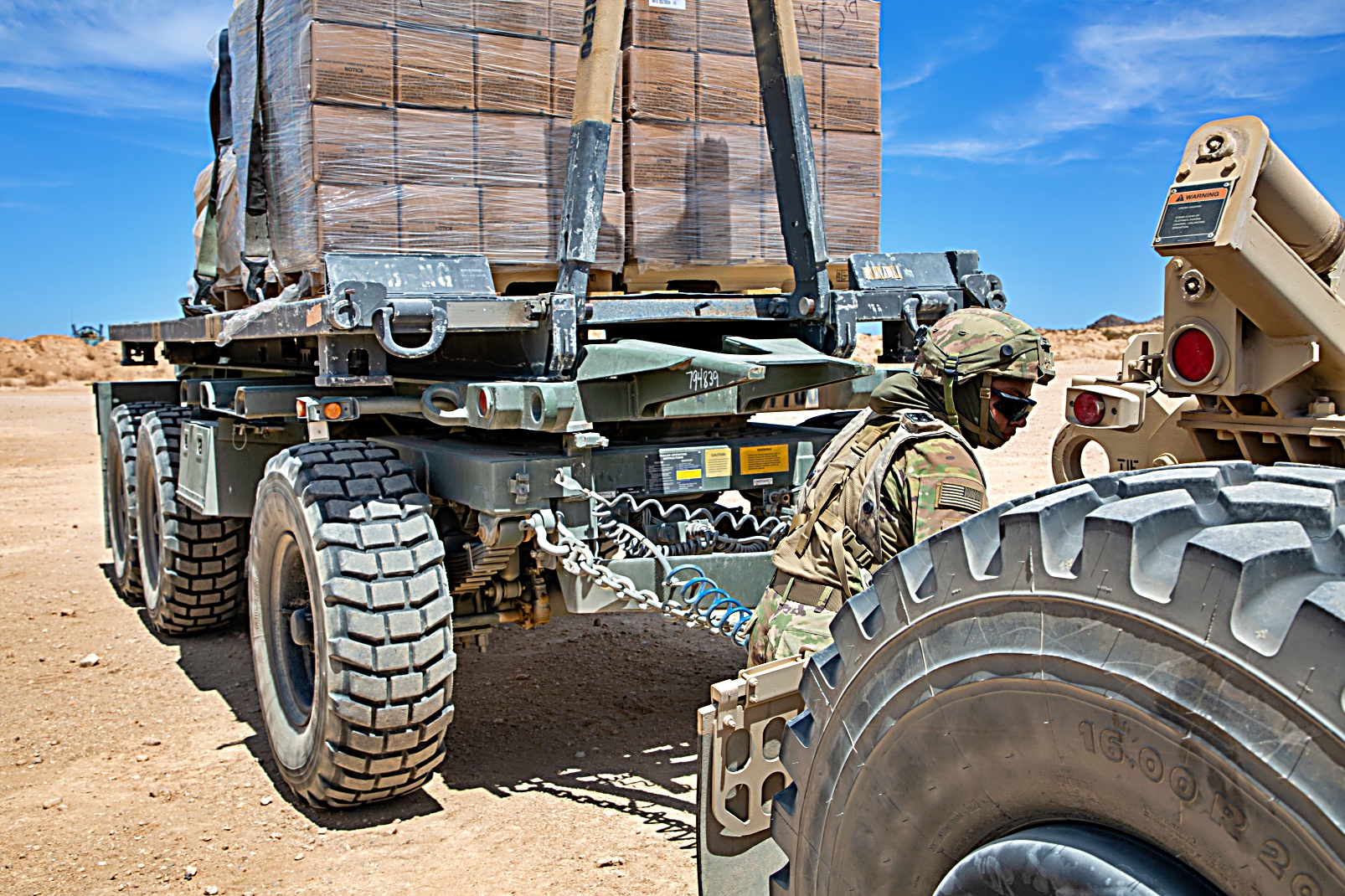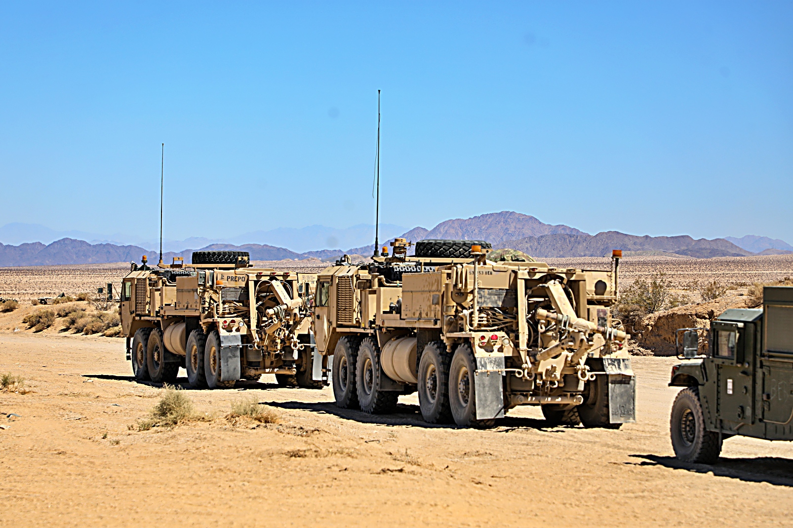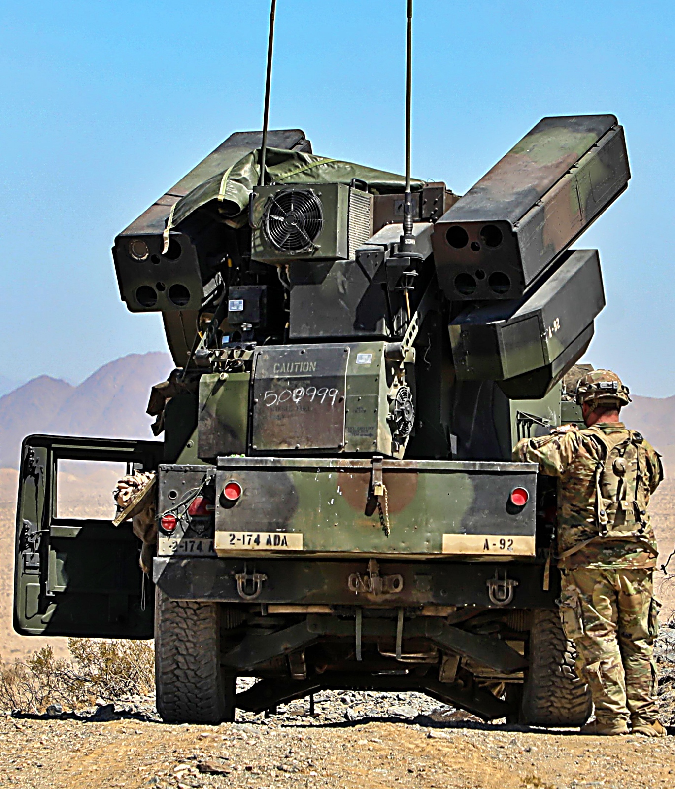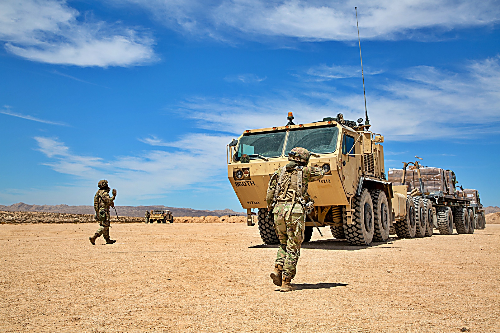 2025년 7월 26일과 8월 3일, 캘리포니아주 Fort Irwin 국립훈련센터에서 열린 Rotation 25-09 훈련 중, 플로리다 주방위군(FLARNG) 제53보병여단전투팀 제53여단지원대대 소속 미군 병사들이 분대 기반 기동, 시가전, 근접 전투를 포함하는 시가전 시나리오를 수행하고 플로리다 주방위군(FLARNG) 제53보병여단전투팀을 지원하는 마린 주방위군(MARNG) 제1297전투지원대대 소속 미군 병사들이 군수지원작전을 수행하고 물자 보급품을 준비하는 가운데 제53보병여단전투팀을 지원하는 오하이오주 방위군(OHARNG) 제2대대 174방공포병여단 소속 미군 병사들이 Avenger 방공시스템을 이용해 방어 사격을 실시하고 있다