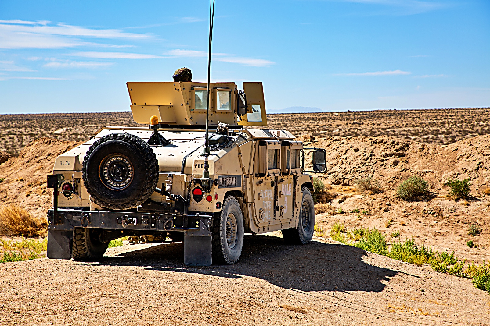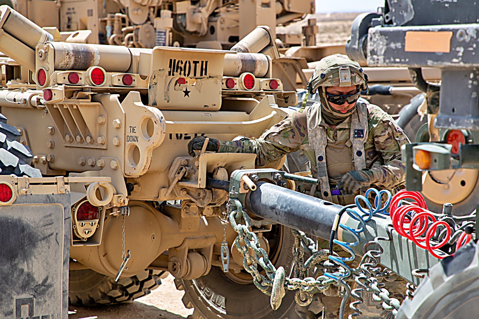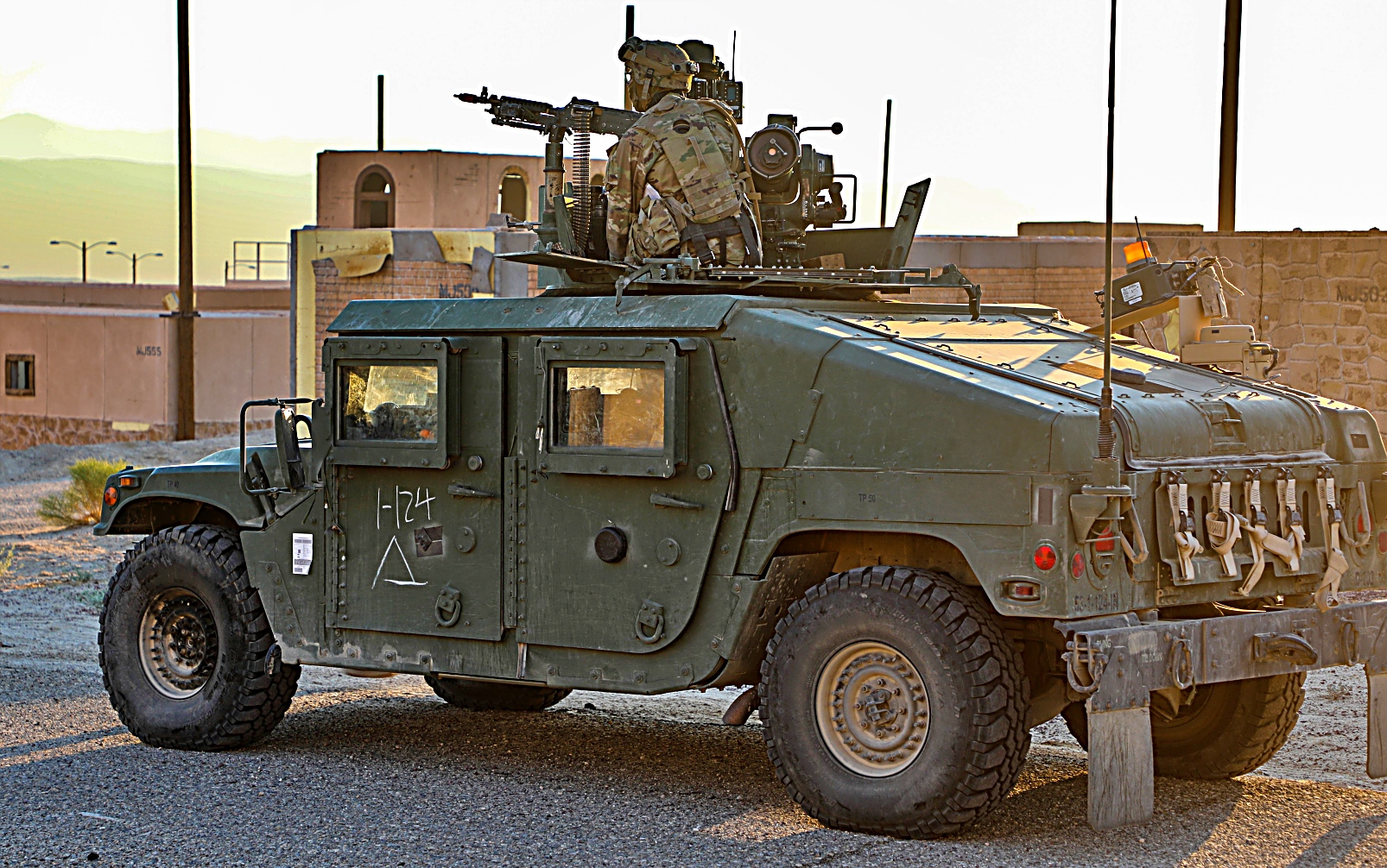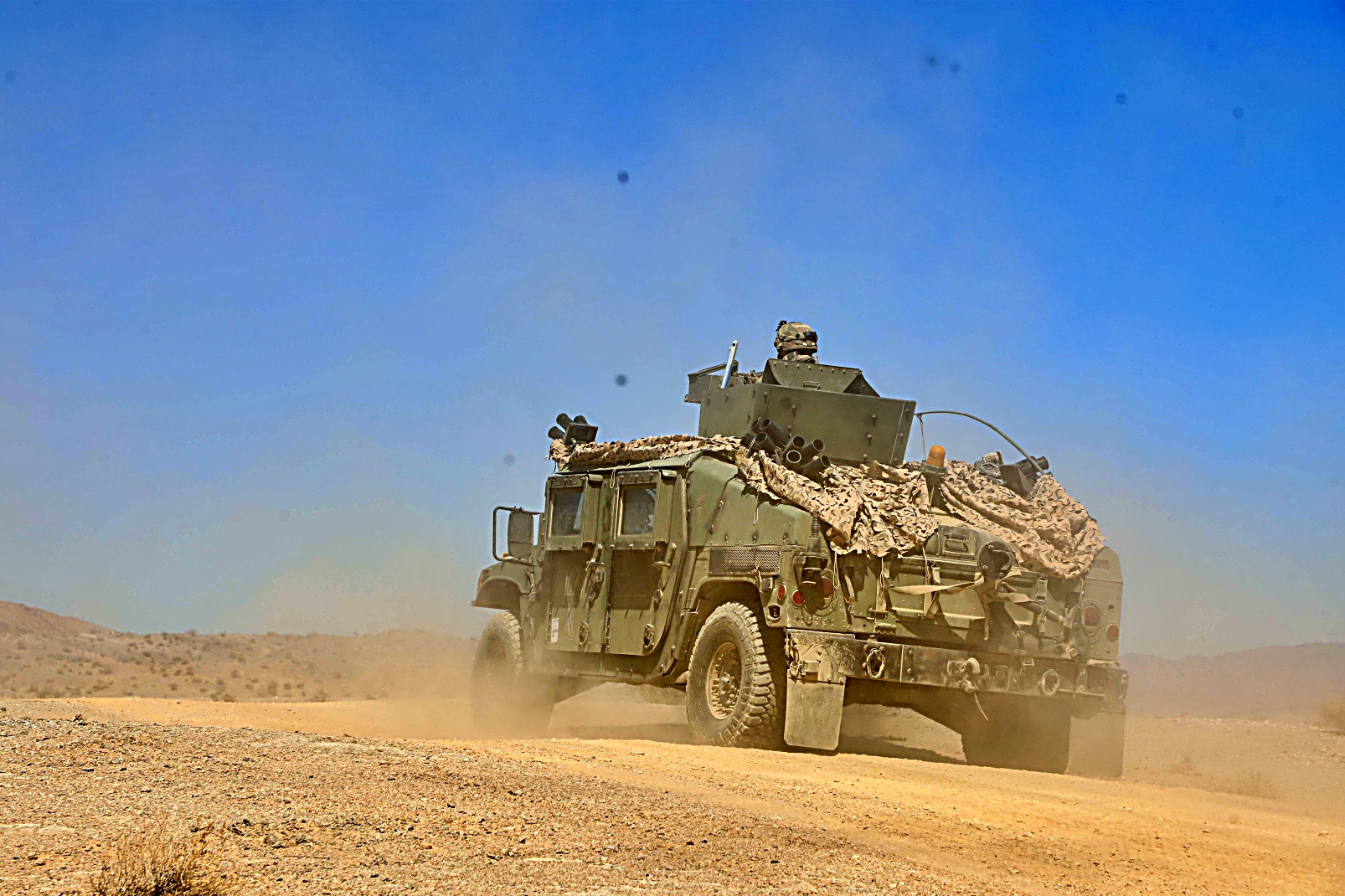 2025년 7월 26일과 8월 3일, 캘리포니아주 Fort Irwin 국립훈련센터에서 열린 Rotation 25-09 훈련 중, 플로리다 주방위군(FLARNG) 제53보병여단전투팀 제53여단지원대대 소속 미군 병사들이 분대 기반 기동, 시가전, 근접 전투를 포함하는 시가전 시나리오를 수행하고 플로리다 주방위군(FLARNG) 제53보병여단전투팀을 지원하는 마린 주방위군(MARNG) 제1297전투지원대대 소속 미군 병사들이 군수지원작전을 수행하고 물자 보급품을 준비하는 가운데 제53보병여단전투팀을 지원하는 오하이오주 방위군(OHARNG) 제2대대 174방공포병여단 소속 미군 병사들이 Avenger 방공시스템을 이용해 방어 사격을 실시하고 있다