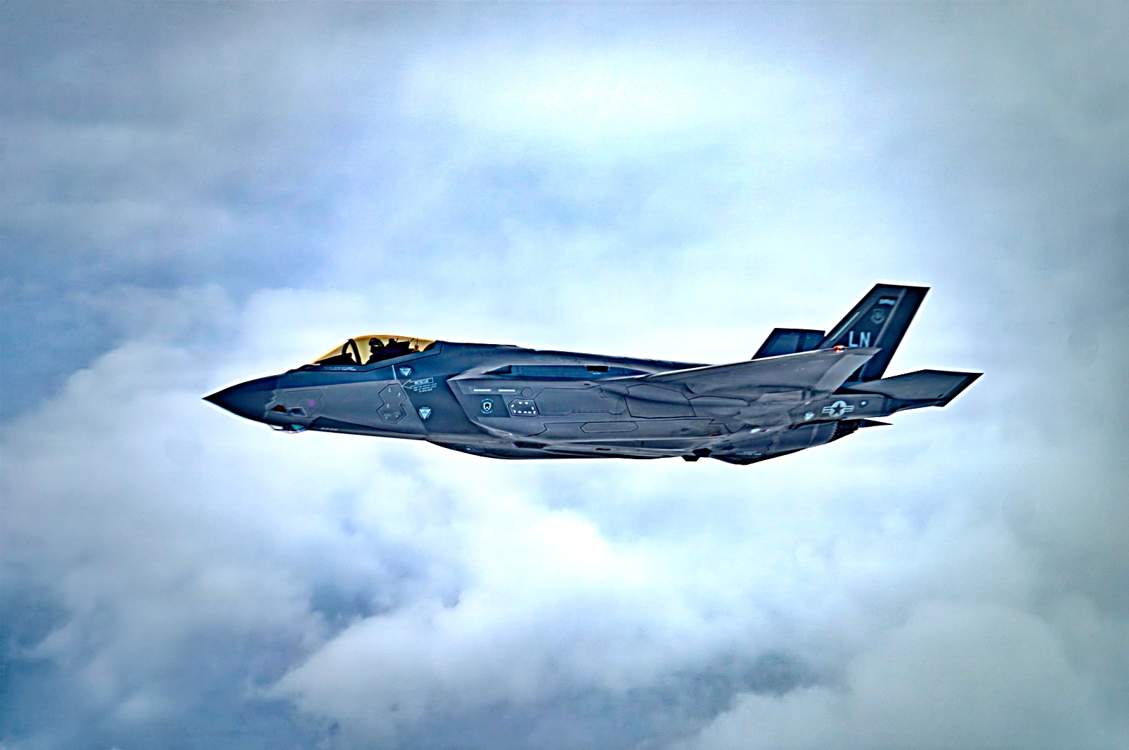 2025년 11월 19일, 폴란드 상공에서 영국에 주둔하는 미 공군 제48전투비행단 소속 F-35 Lightning II 공격기가 제100공중급유비행단 소속 KC-135 Stratotanker와 편대 비행을 하고 있다. 공중급유 임무 및 훈련은 유럽 전역에서 제100공중급유비행단의 전투력을 강화하고, 언제 어디든 자원을 배치할 준비가 되어 있음을 보여준다.
