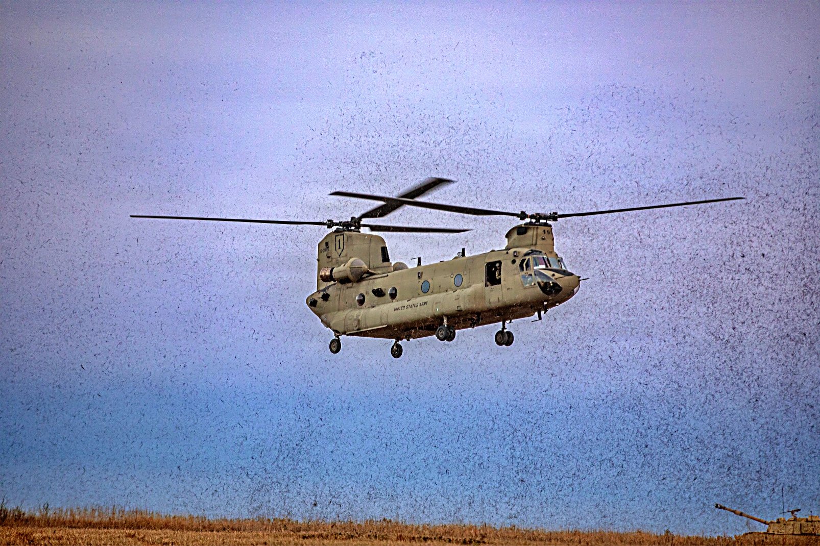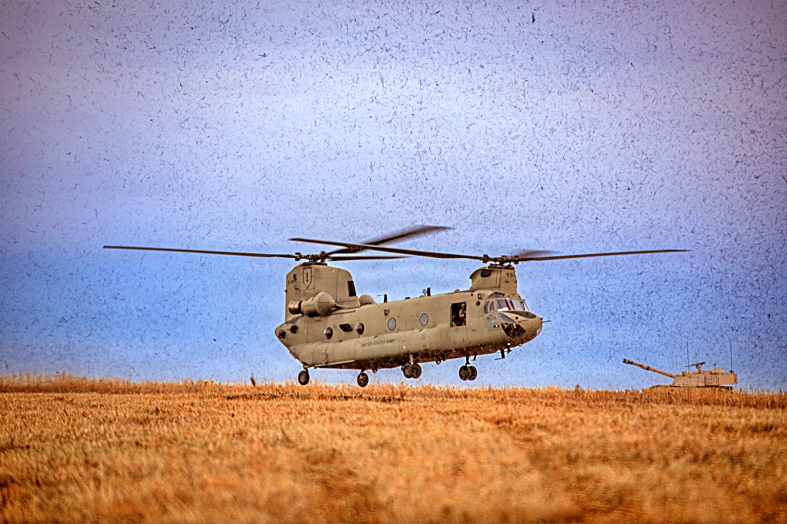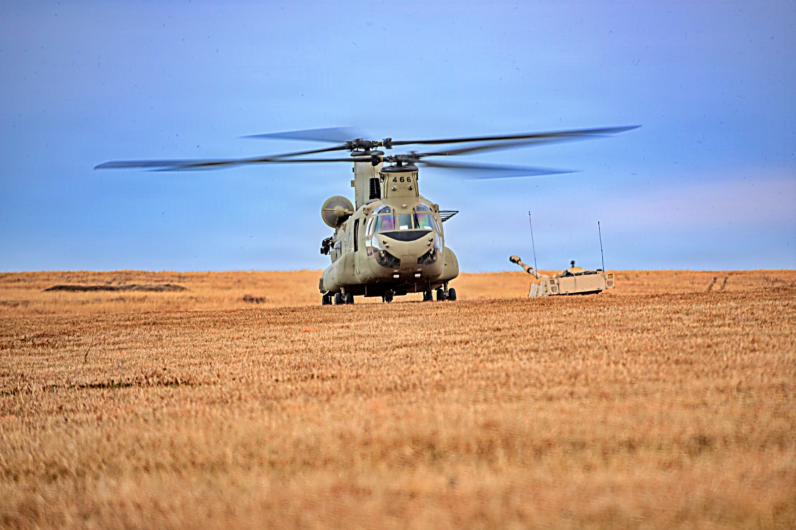 미 육군 제1보병사단 제2기갑여단전투팀 제7야전포병연대 제1대대 소속 장병들이 2025년 12월 5일 캔자스주 Fort Riley에서 포격 훈련을 실시하고 있다. 1-7 야전포병대대는 야전포대에 CH-47F 헬기를 이용하여 탄약을 공수하는 훈련을 통해 자신들의 역량을 시험했다.