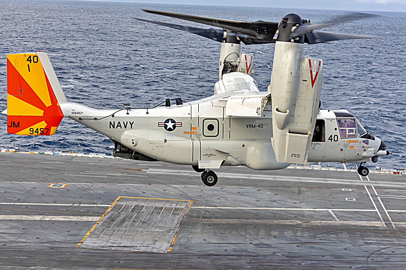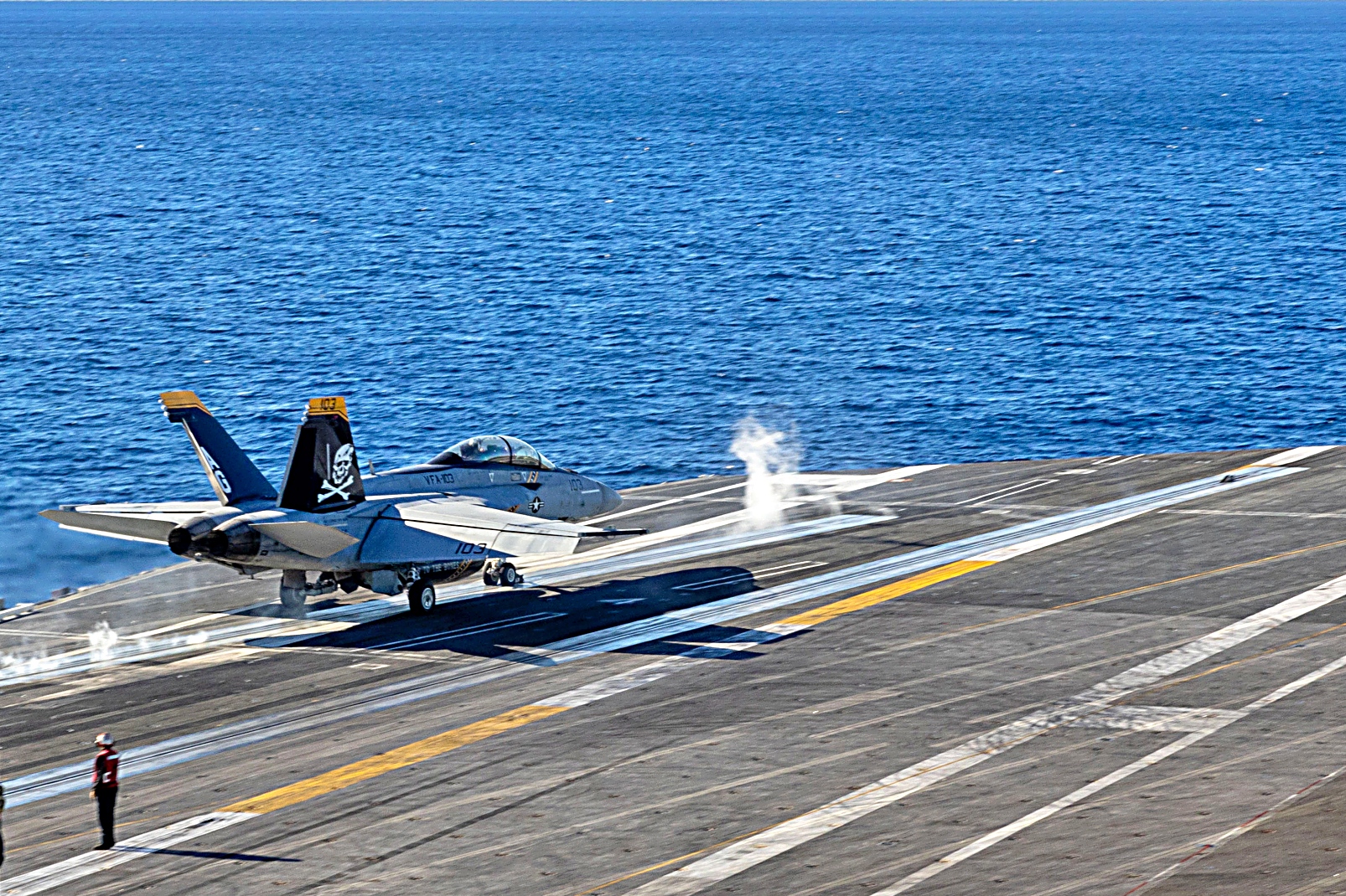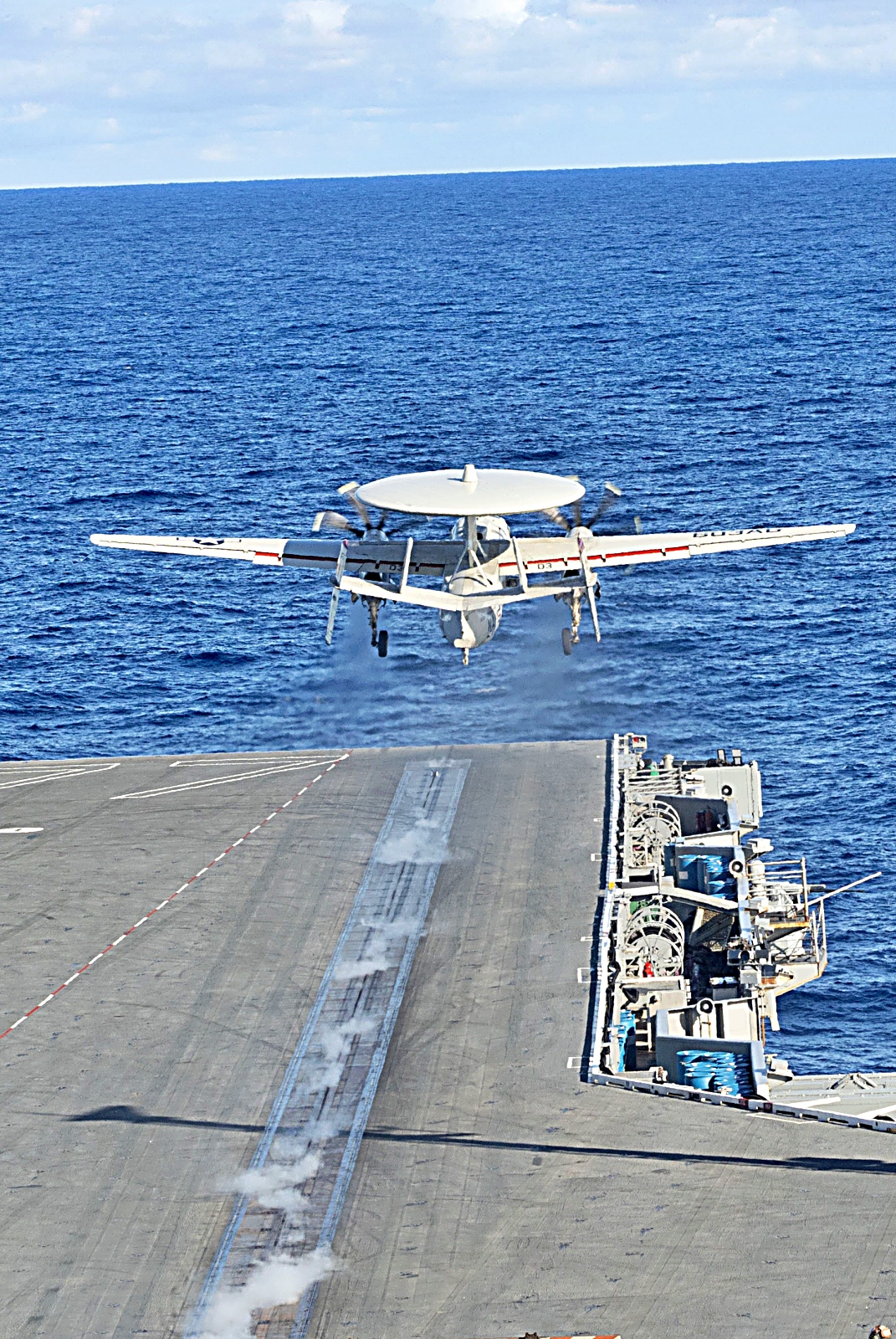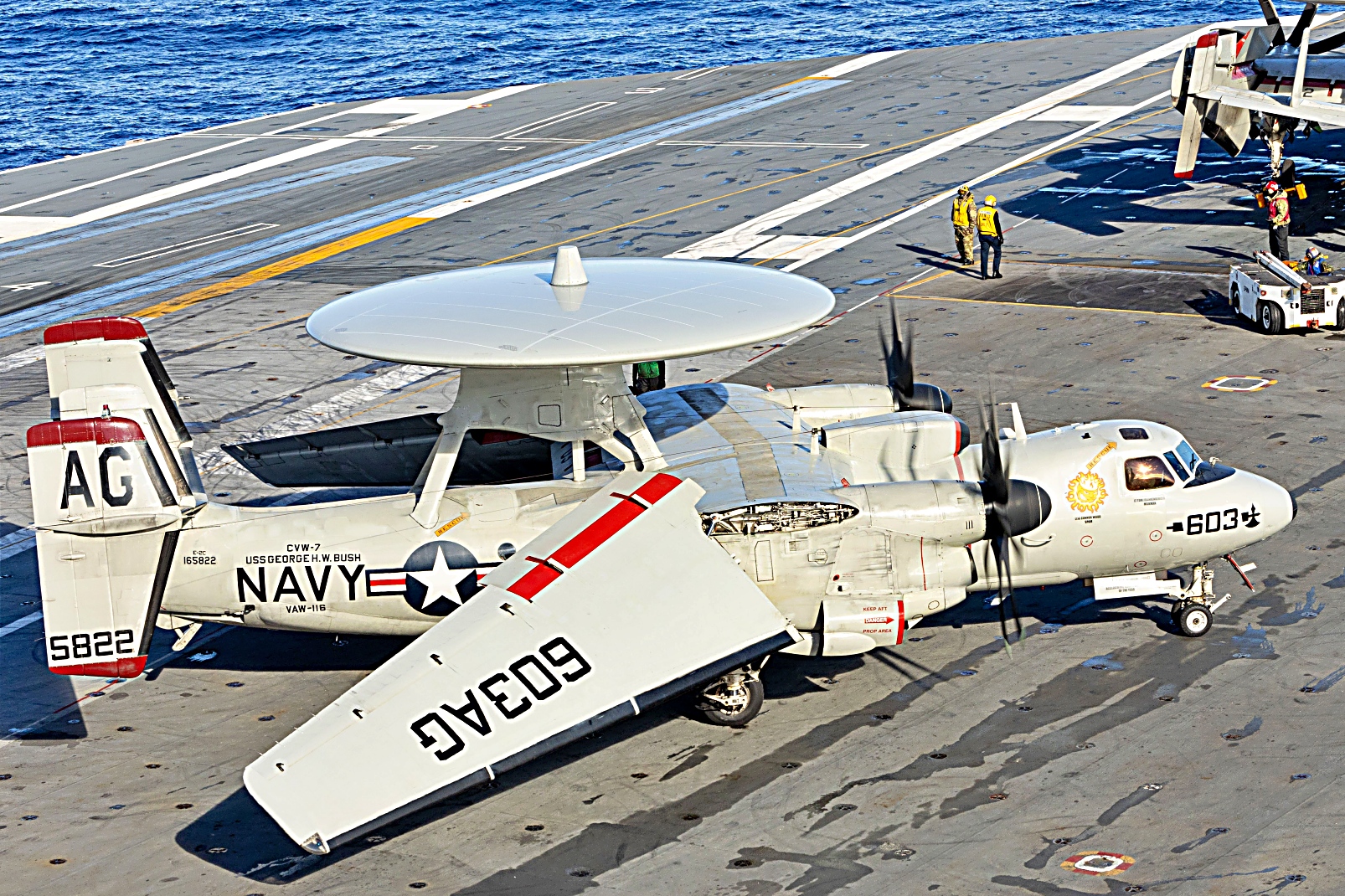 2025년 12월 9일부터 15일사이, 대서양에서 Nimitz급 항공모함 USS George H.W. Bush (CVN 77)함에서 함재기들의 비행작전을 지원하고 있다. VFA-103 “Jolly Rogers” 소속 F/A-18E Super Hornet 전투기, VAW-116 공중지휘통제비행대대 “Sun Kings” 소속 E-2C Hawkeye 조기경보기, VRM-40 함대 군수 다목적 비행대대 “Mighty Bison”소속 CMV-22B Osprey 수송기 등이 보인다.