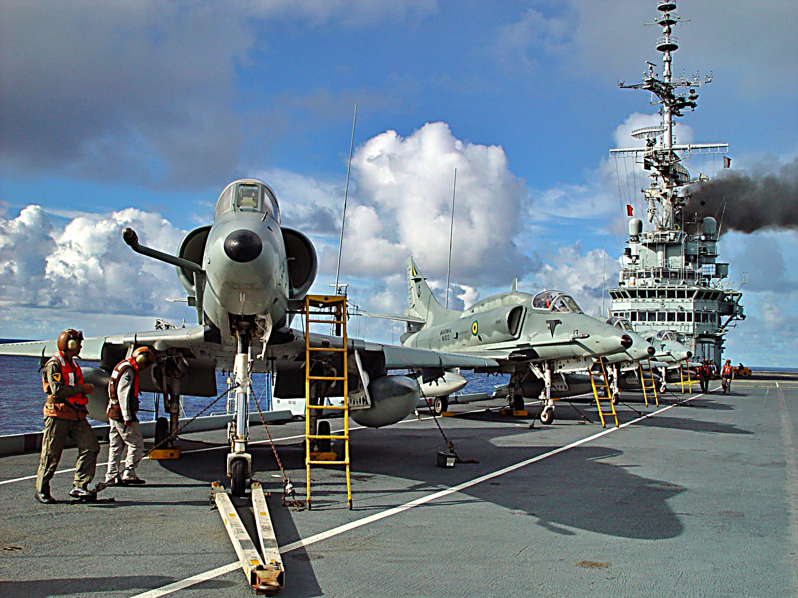 2000년 9월, 브라질은 노후화된 제2차 세계대전 당시 건조된 Minas Gerais 항공모함을 대체하기 위해 40년된 낡아빠진 상파울루를 1,200만 달러에 구입했다. 이 가격에는 항공기는 포함되지 않았다. 브라질은 이전에 스페인 등 다른 국가들과 항공모함 도입에 대해 논의했으며, 스페인은 브라질을 위해 5억 달러 규모의 항공모함을 건조해 줄 의향이 있었다.정부는 이미 쿠웨이트로부터 7천만 달러에 중고 A-4 Skyhawk 공격기 23대를 구입했다.이 전투기들은 기존에 국방력으로 보유하고 있던 헬리콥터들과 함께 상파울루 전투폭격기 편대를 구성할 예정이었다. 이 A-4(AF-1으로 명명)는 로켓, 자유낙하 폭탄, 사이드와인더 공대공 미사일 등의 무장을 탑재할 수 있다.