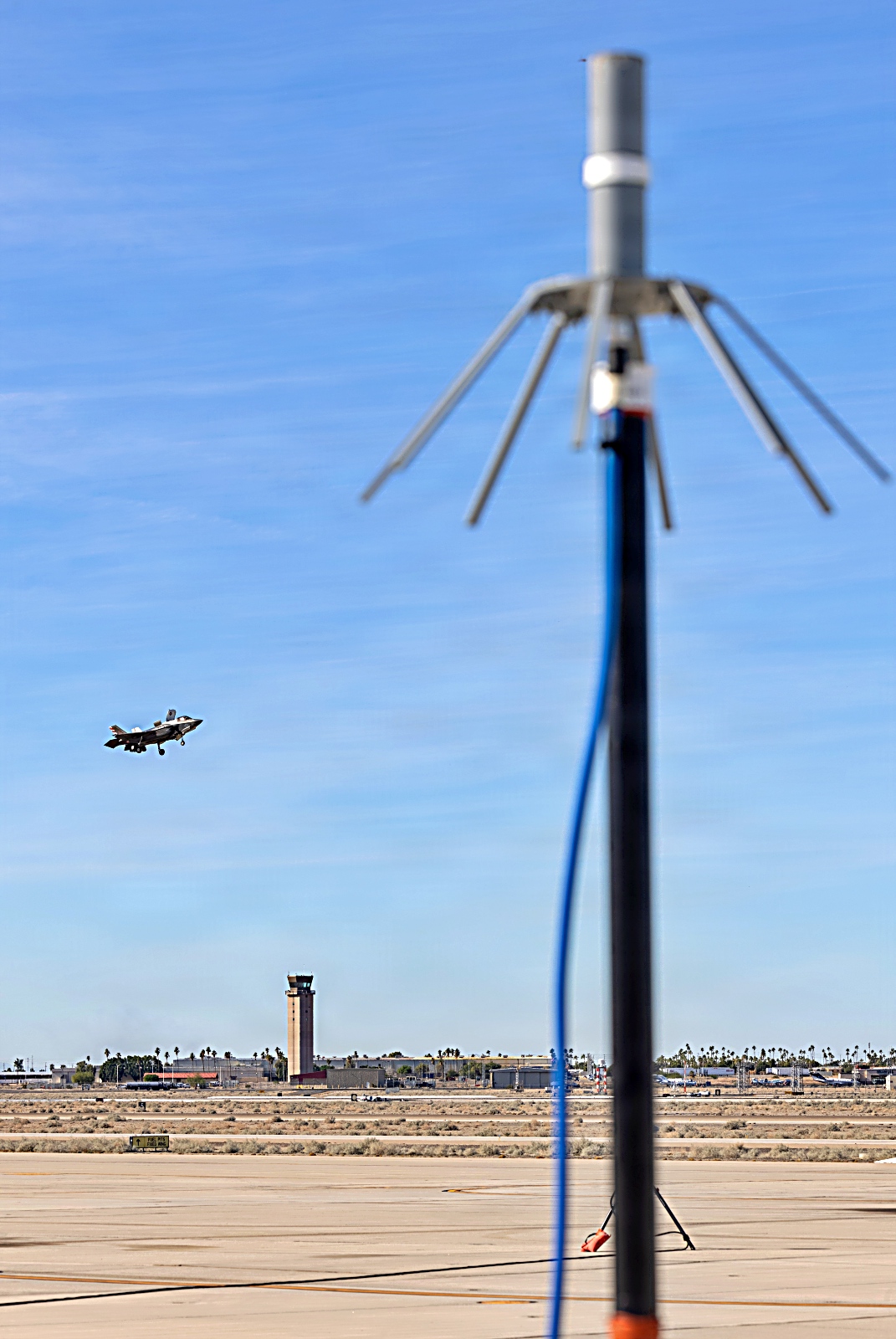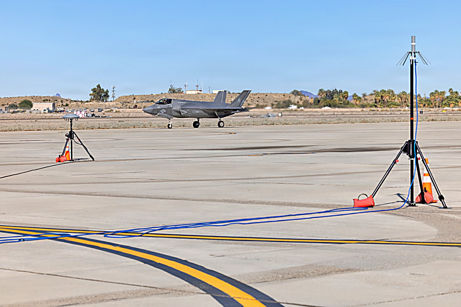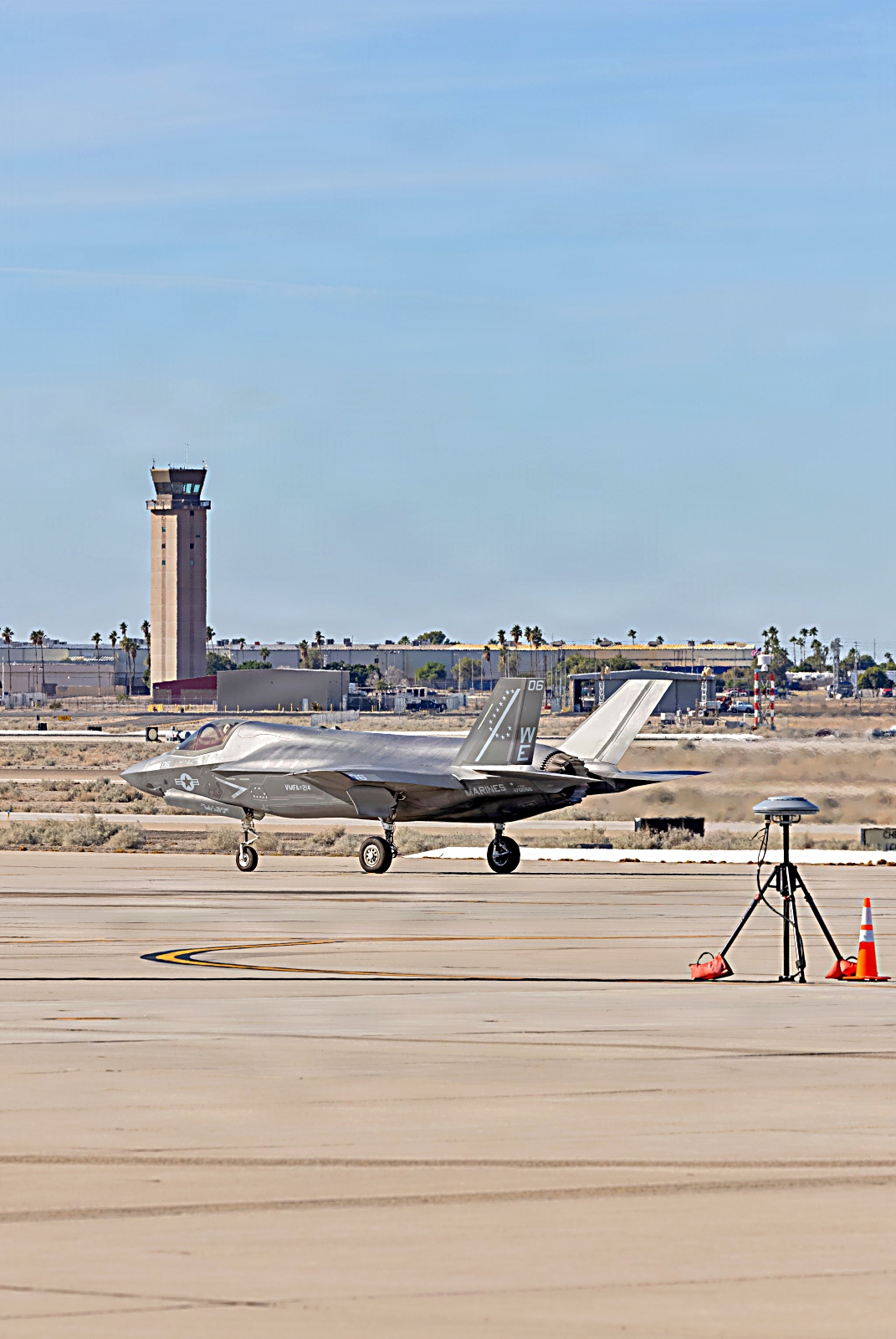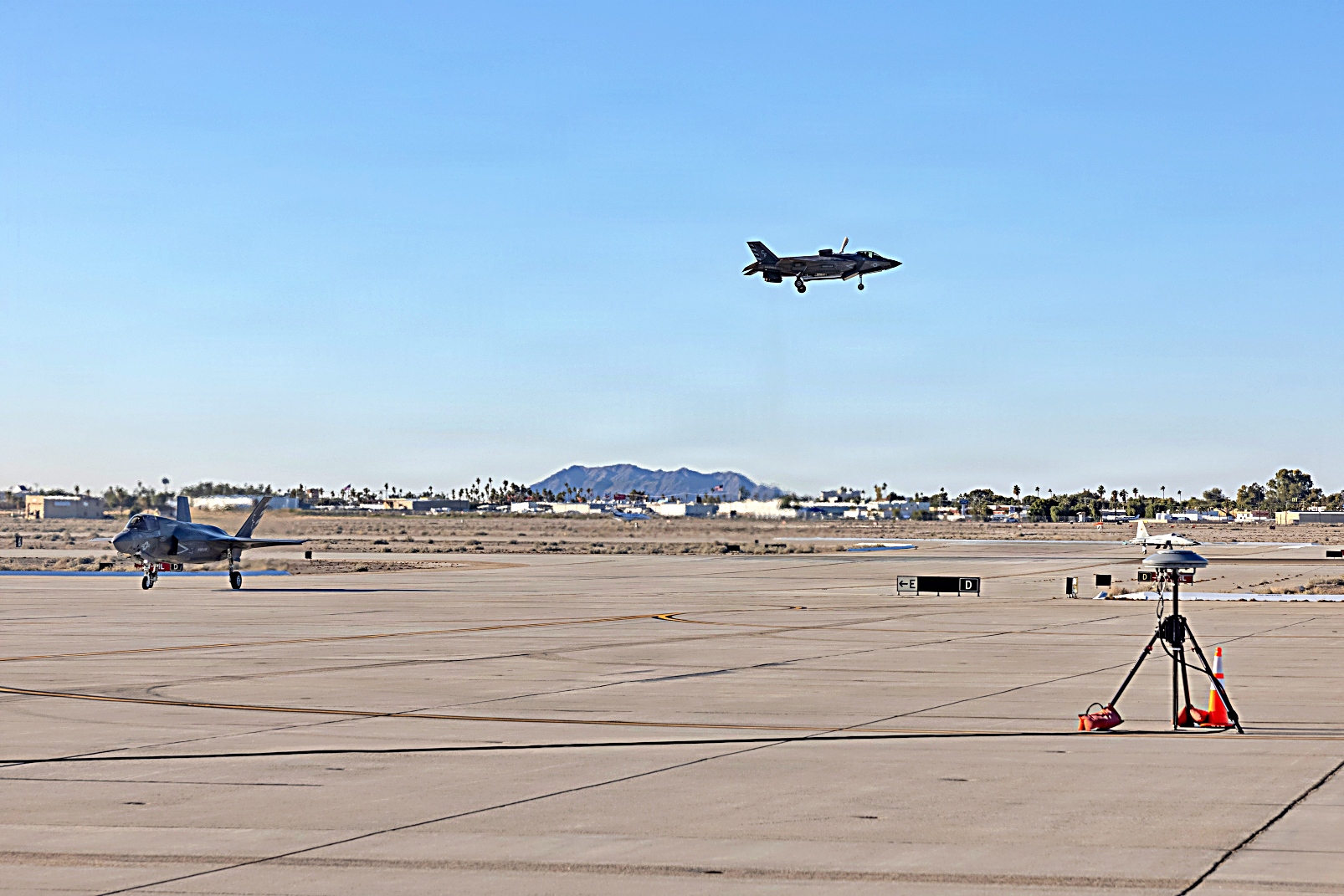 2025년 12월 4일, 애리조나주 유마 해병대 항공기지에서 해병대 작전 시험 평가 비행대대(VMX) 1 소속 F-35B Lightning II가 원정 합동 정밀 접근 착륙 시스템(eJPALS : Expeditionary Joint Precision Approach Landing System)을 시험하고 있다. 이 지상 기반 eJPALS 솔루션은 시야 내 항법 기능을 제공하여 야전 임시 활주로에서 안전한 작전을 지원한다.