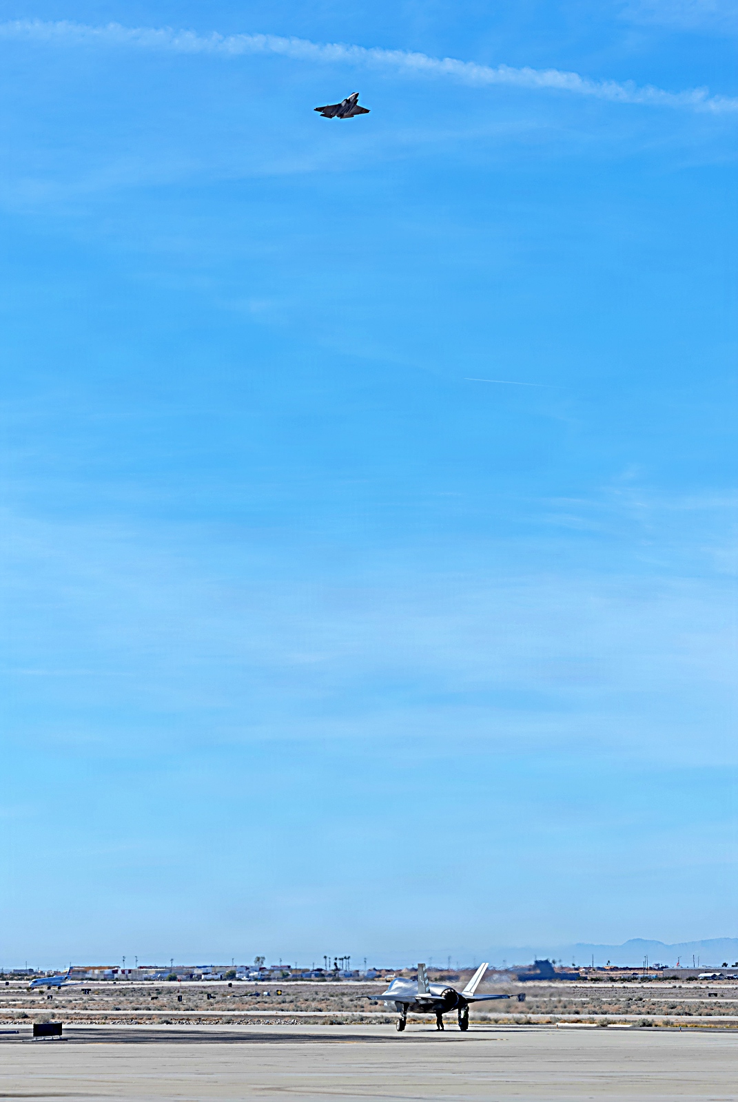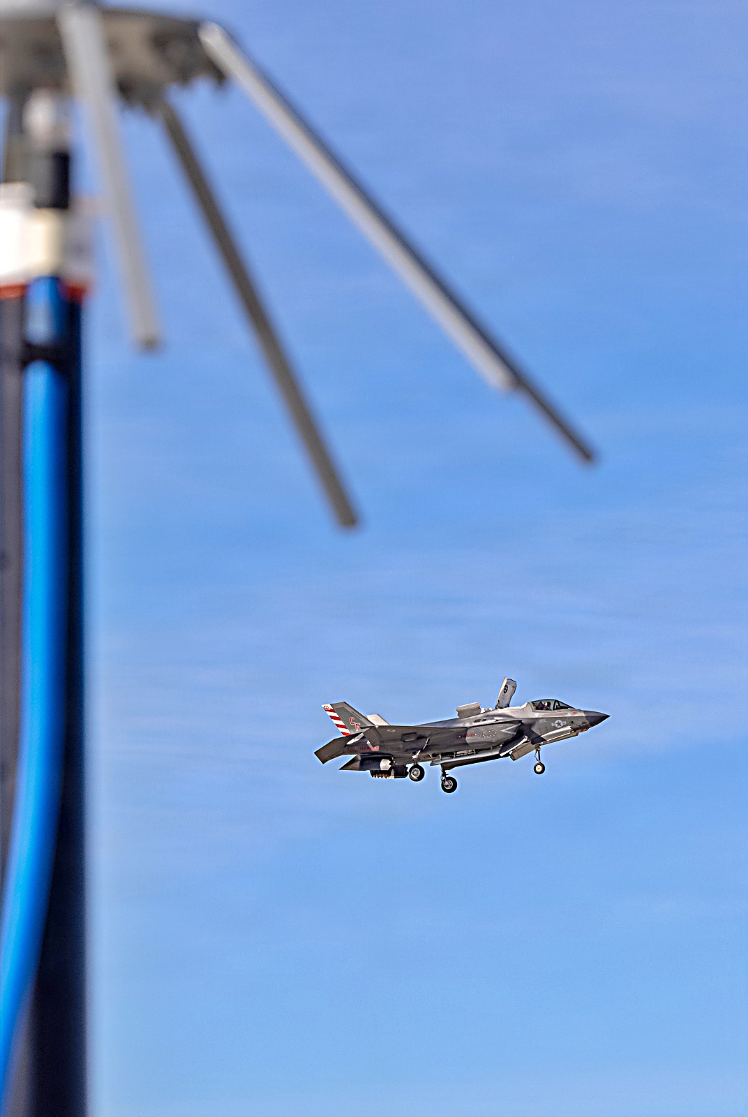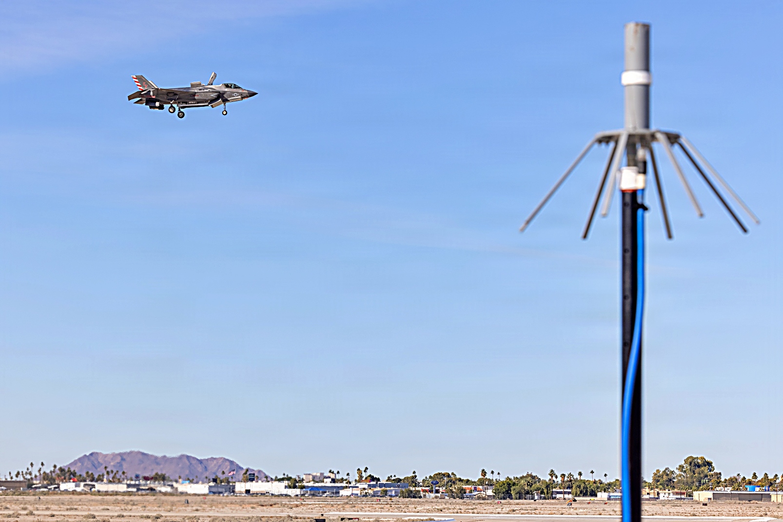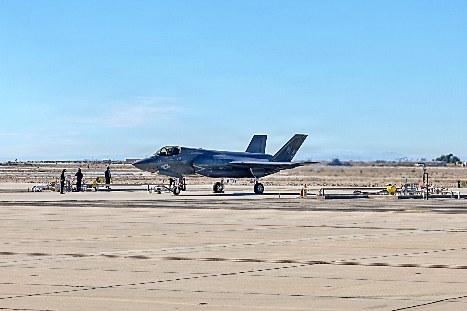 2025년 12월 4일, 애리조나주 유마 해병대 항공기지에서 해병대 작전 시험 평가 비행대대(VMX) 1 소속 F-35B Lightning II가 원정 합동 정밀 접근 착륙 시스템(eJPALS : Expeditionary Joint Precision Approach Landing System)을 시험하고 있다. 이 지상 기반 eJPALS 솔루션은 시야 내 항법 기능을 제공하여 야전 임시 활주로에서 안전한 작전을 지원한다.
