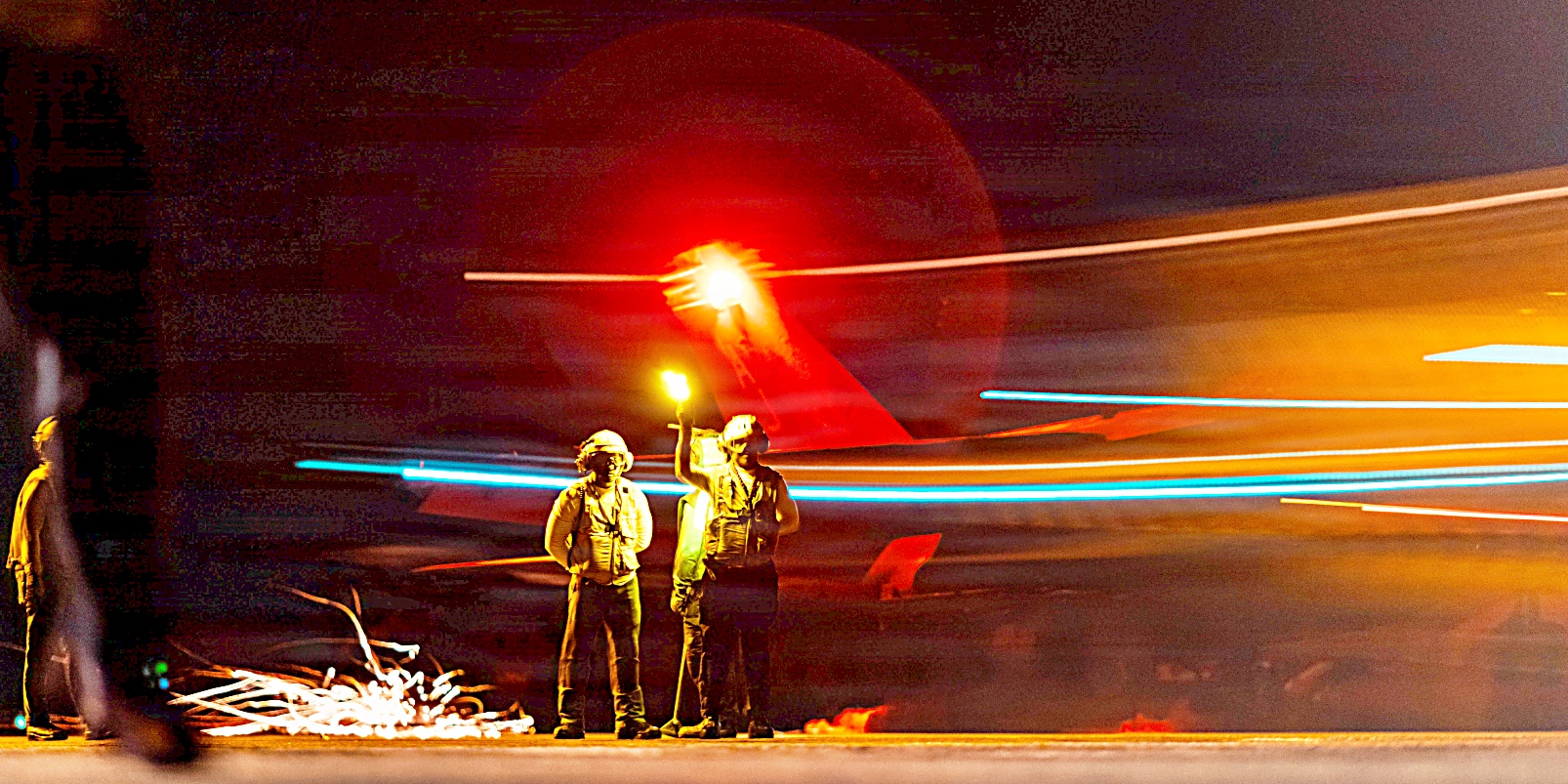 2025년 크리스마스 이브에도 연말에도 베네수엘라와 일전을 대비하여 카리브해에서 함재기들의 주야간 비행작전을 지원하는 세계 최대 항공모함인 미 해군 Ford급 항공모함 USS Gerald R. Ford (CVN 78)함의 비행갑판 모습이다,