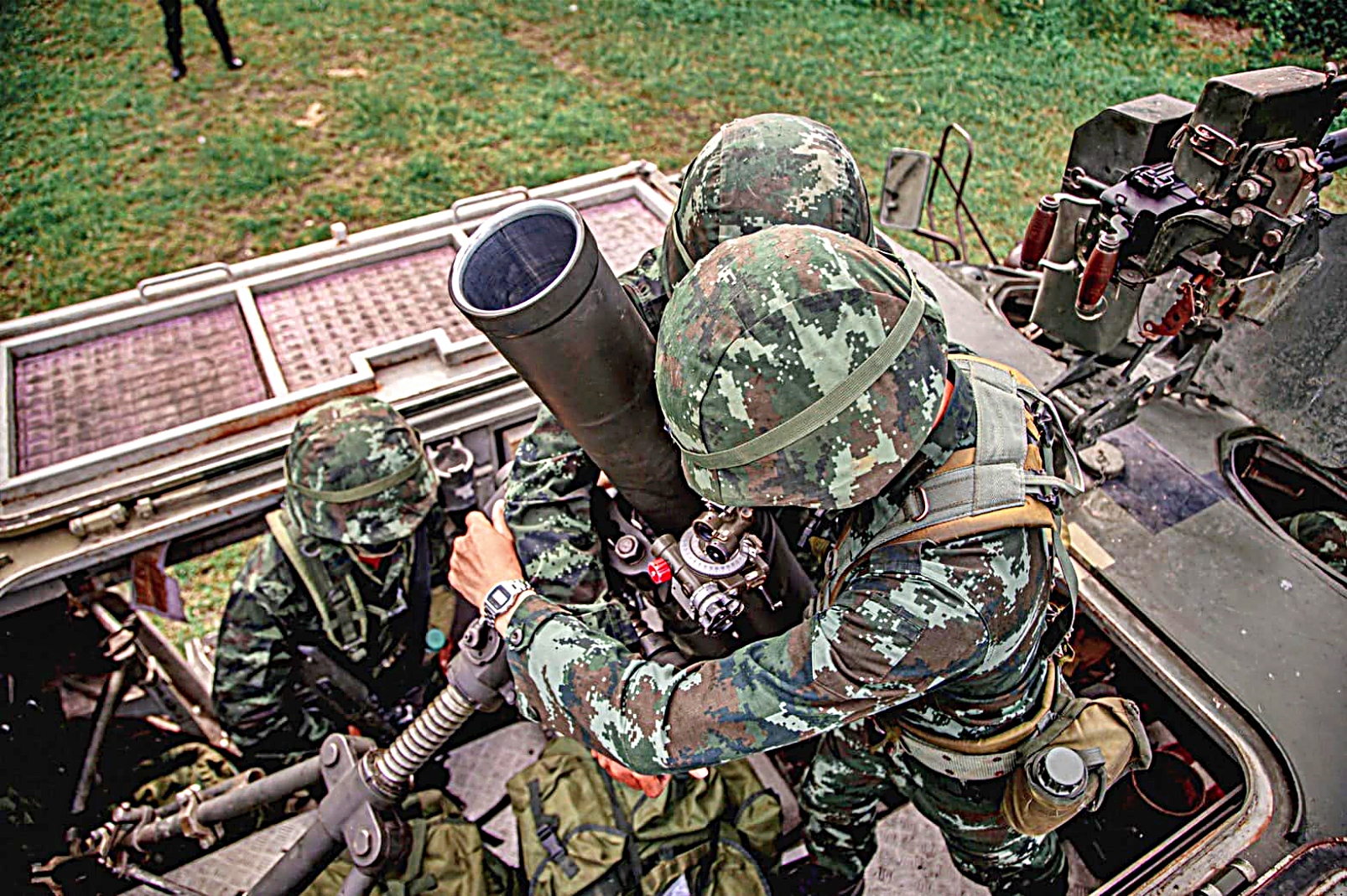 태국육군이 우크라이나로부터 도입한 BTR-3M1 82mm 박격포 장갑차와 BTR-3M2 120mm 박격포 장갑차를 이용한 훈련을 수행하고 있다.