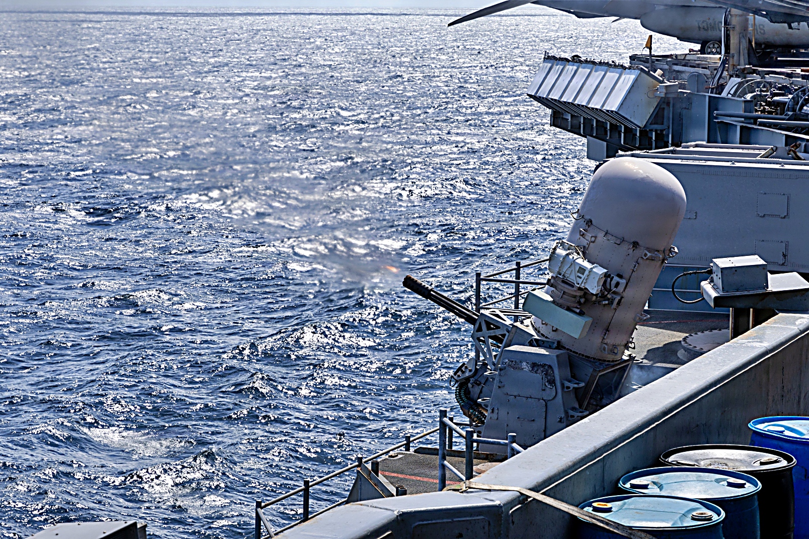 2026년 1월 1일, 새해 벽두부터 카리브해를 항해 중인 세계 최대 항공모함인 미 해군 Ford급 항공모함 USS Gerald R. Ford (CVN 78)함이 근접 방어 훈련을 위해 Mk 38 25mm 기관포 시스템과 Phalanx 근접방어무기체계(CIWS)의 사격 훈련을 실시했다.