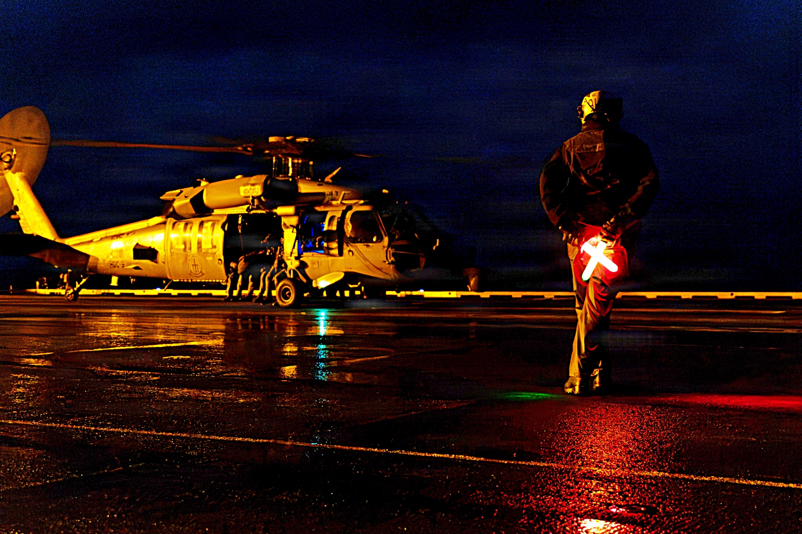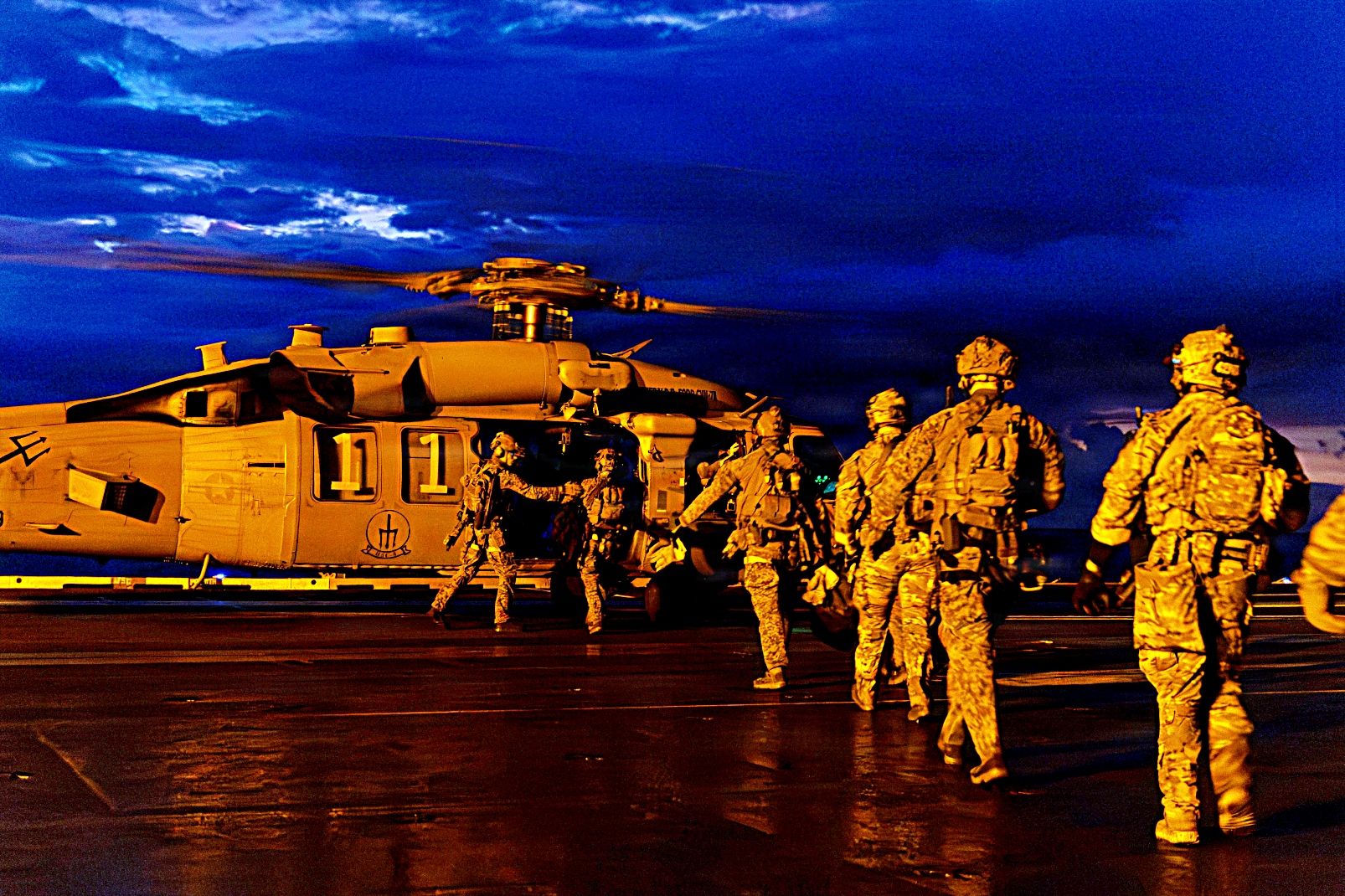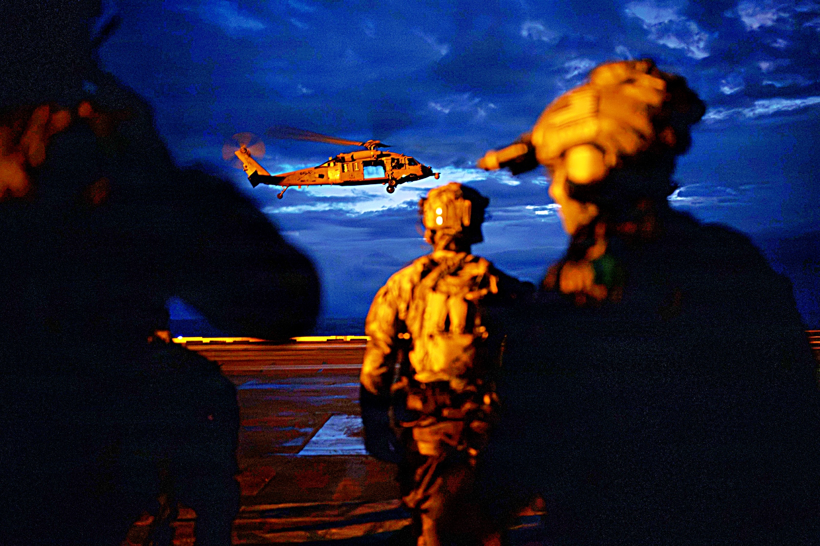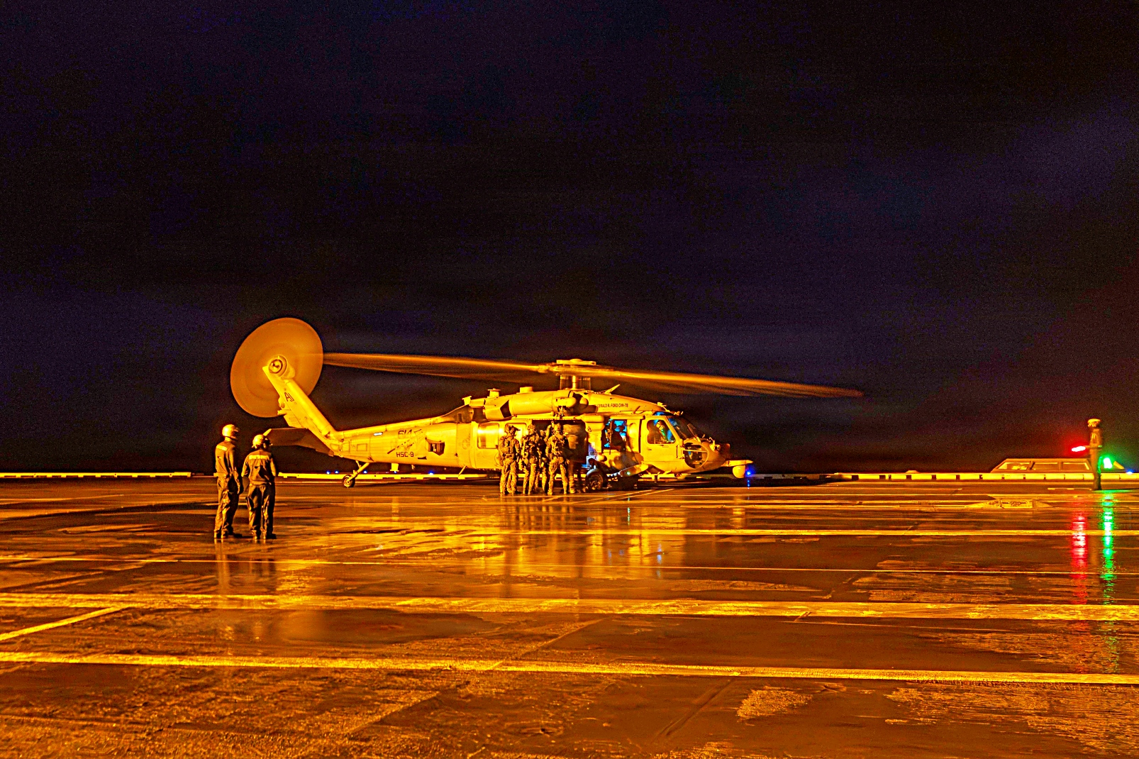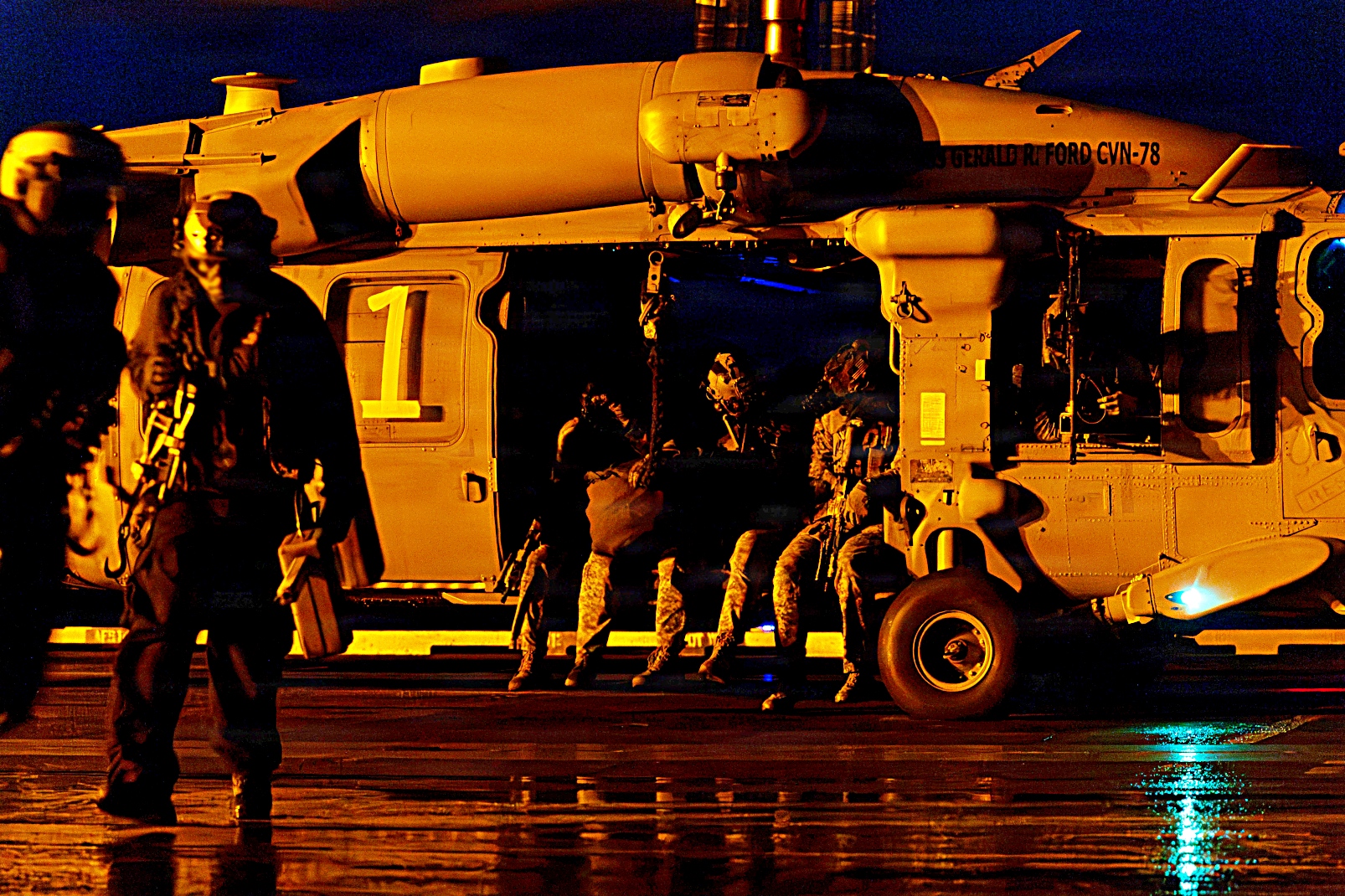 카리브해에서 성공적으로 임무를 완수한 후 대서양으로 다시 진출하여 항해중인 세계 최대 항공모함 Ford급 항공모함 USS Gerald R. Ford (CVN 78)의 비행갑판에서 미 해안경비대 및 법집행전술팀(LET) 대원, 해군, 해병대원들이 HSC-9 해상전투헬기비행대대 소속 MH-60S Sea Hawk 헬리콥터에 탑승하여 수상한 선박에 탑승하여 검문 검색을 수행하는 작전을 위한 탑승 절차의 일환이다. 미군은 미 남부사령부 작전지역에 배치되어 미 남부사령부의 임무, 국방부 지시 작전, 그리고 마약 밀매 차단 및 국가 안보라는 대통령의 우선순위를 지원하고 있다.