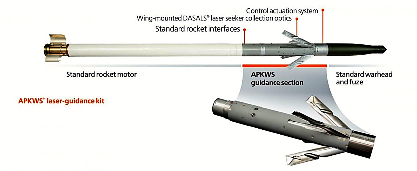 APKWS는 BAE Systems에서 개발한 로켓 중간 부분 장착 유도 장치를 추가하여 Hydra 70 비유도 로켓을 정밀 유도 탄약으로 변환한다. APKWS는 또한 Forges de Zeebrugge 비유도 로켓을 사용한 실사격 훈련에서 성공적으로 시험됐으며, 이를 통해 해당 로켓을 정밀 유도 탄약으로 변환하고 Hydra 70 외 다른 유형의 로켓에도 이 기술을 적용할 수 있음을 입증했다.