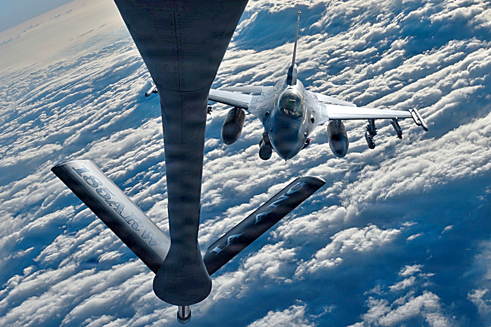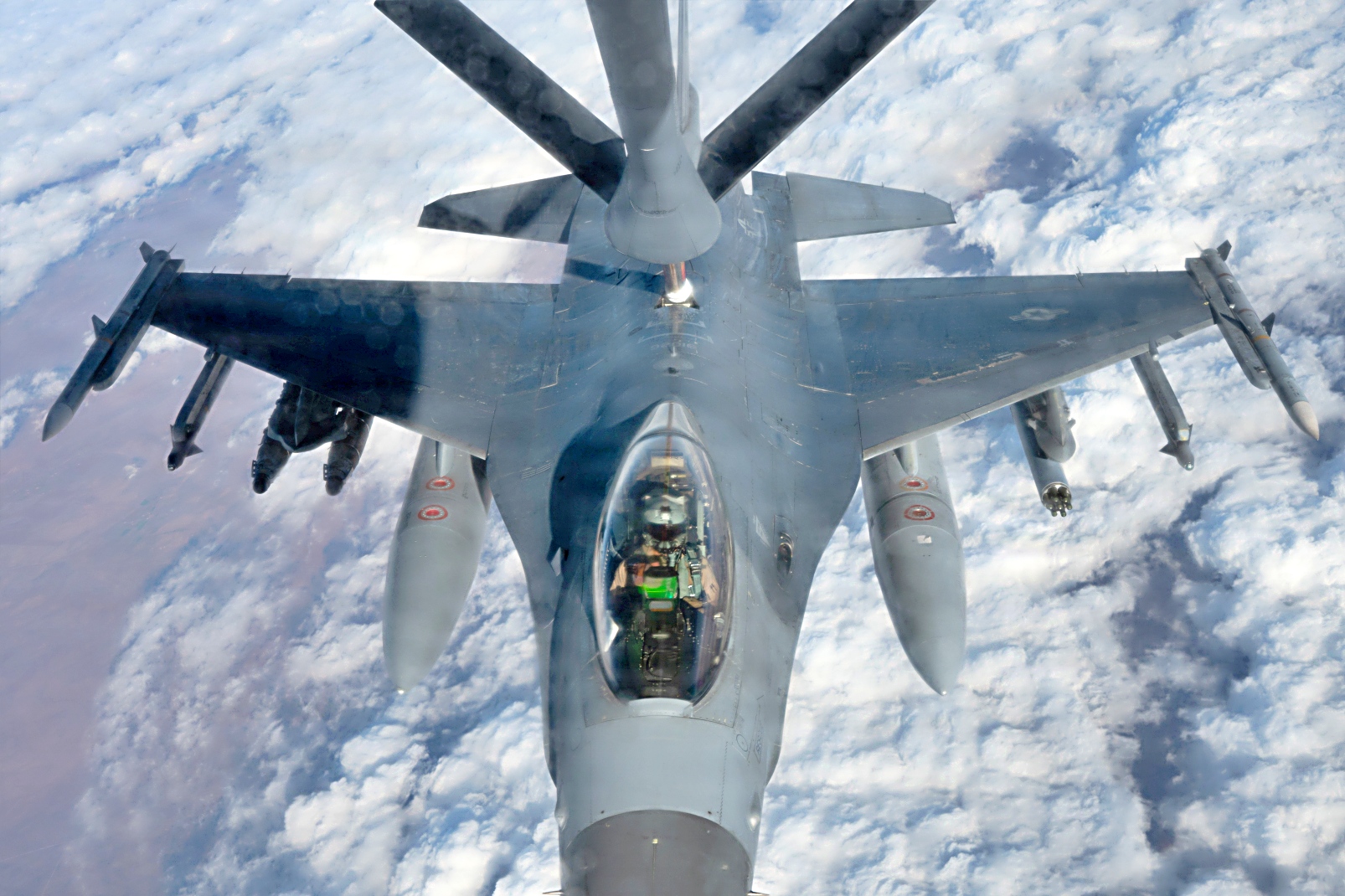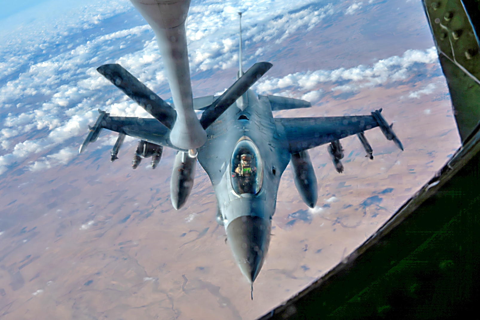 2025년 12월 14일, 16일 및 29일 미 중부사령부 작전책임지역에서 임무 수행 중인 미 공군 F-16 Fighting Falcon와 F-15E Strike Eagle 전투기가 제74원정공중급유비행대대 소속 KC-135R Stratotanker 공중급유기로부터 연료를 공급받으며 초계 비행을 수행하고 있다.F-16 전투기는 합동 공중 작전을 지원하며, 중부사령부 작전지역 전반에 걸쳐 상호 운용성과 집단 방위 역량을 강화한다.