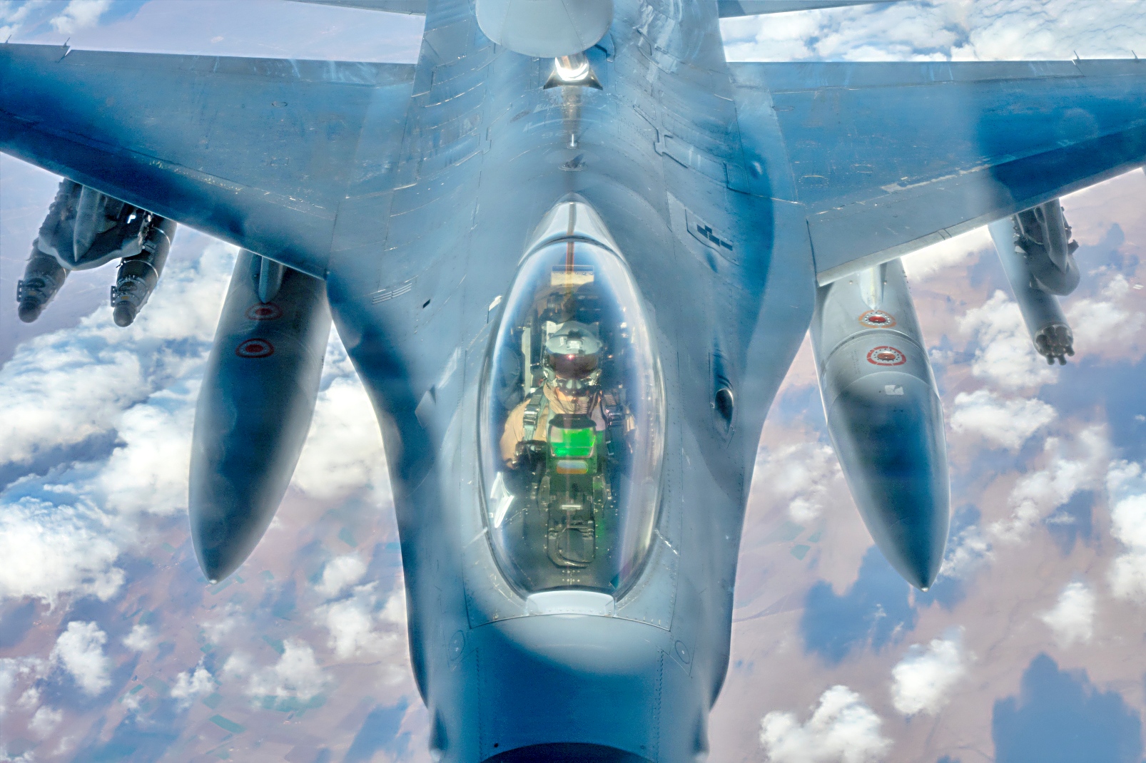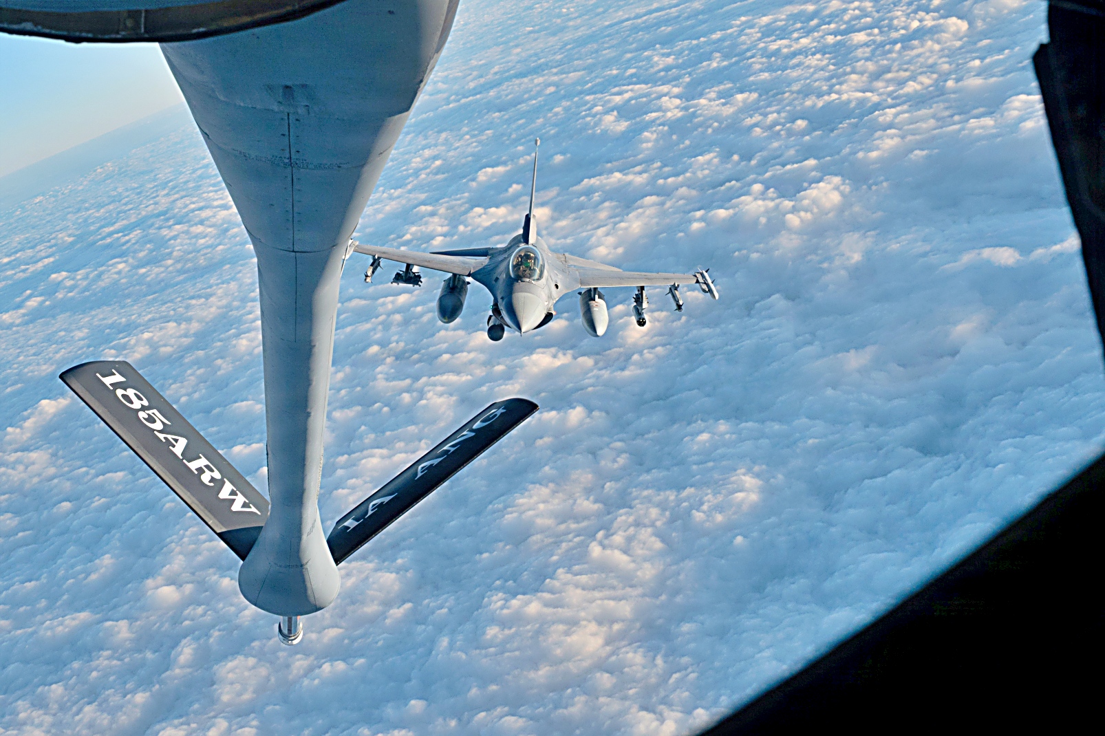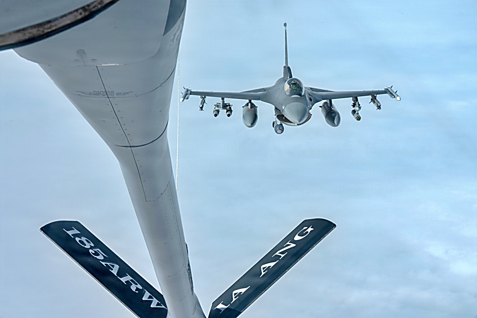 2025년 12월 14일, 16일 및 29일 미 중부사령부 작전책임지역에서 임무 수행 중인 미 공군 F-16 Fighting Falcon와 F-15E Strike Eagle 전투기가 제74원정공중급유비행대대 소속 KC-135R Stratotanker 공중급유기로부터 연료를 공급받으며 초계 비행을 수행하고 있다.F-16 전투기는 합동 공중 작전을 지원하며, 중부사령부 작전지역 전반에 걸쳐 상호 운용성과 집단 방위 역량을 강화한다.