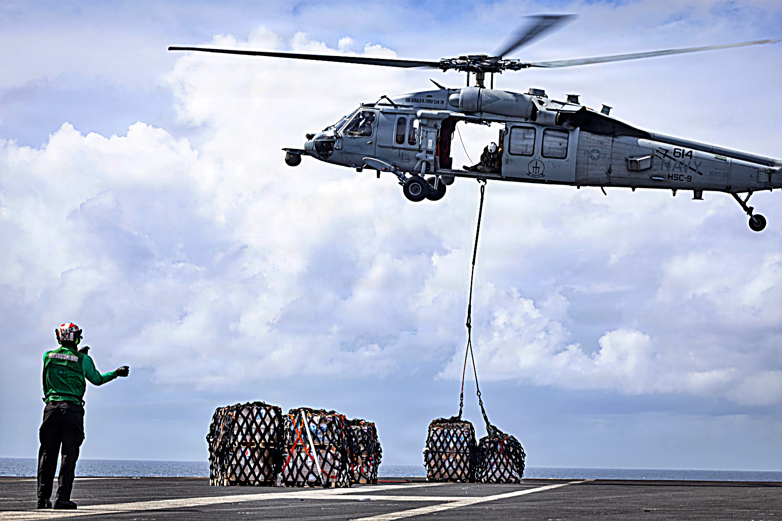 2026년 1월 8부터 13일사이, 대서양을 항해 중인 세계 최대 항공모함인 Ford급 항공모함 USS Gerald R. Ford (CVN 78)의 비행갑판에서 탑재 함재기들이 비행작전을 수행하고 있다.