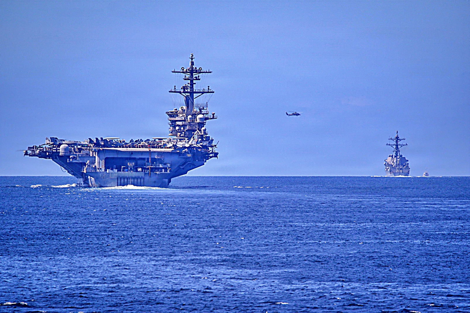 1월 20일, Nimitz급 항공모함 USS Abraham Lincoln (CVN 72)함과 Arleigh Burke급 미사일 구축함 USS Spruance (DDG 111), USS Frank E. Petersen Jr. (DDG 121)함등 호위함으로 구성된 항모타격단은 말라카 해협 통과를 완료하고, 남중국해를 포함한 제7함대 작전 구역을 공식적으로 벗어나 중동에 있는 제5함대 책임 구역으로 이동했다. 이번 이동은 Abraham Lincoln항모가 서태평양에서 제7함대의 임무를 조기에 종료하기로 워싱톤이 결정한 데 따른 것이다.