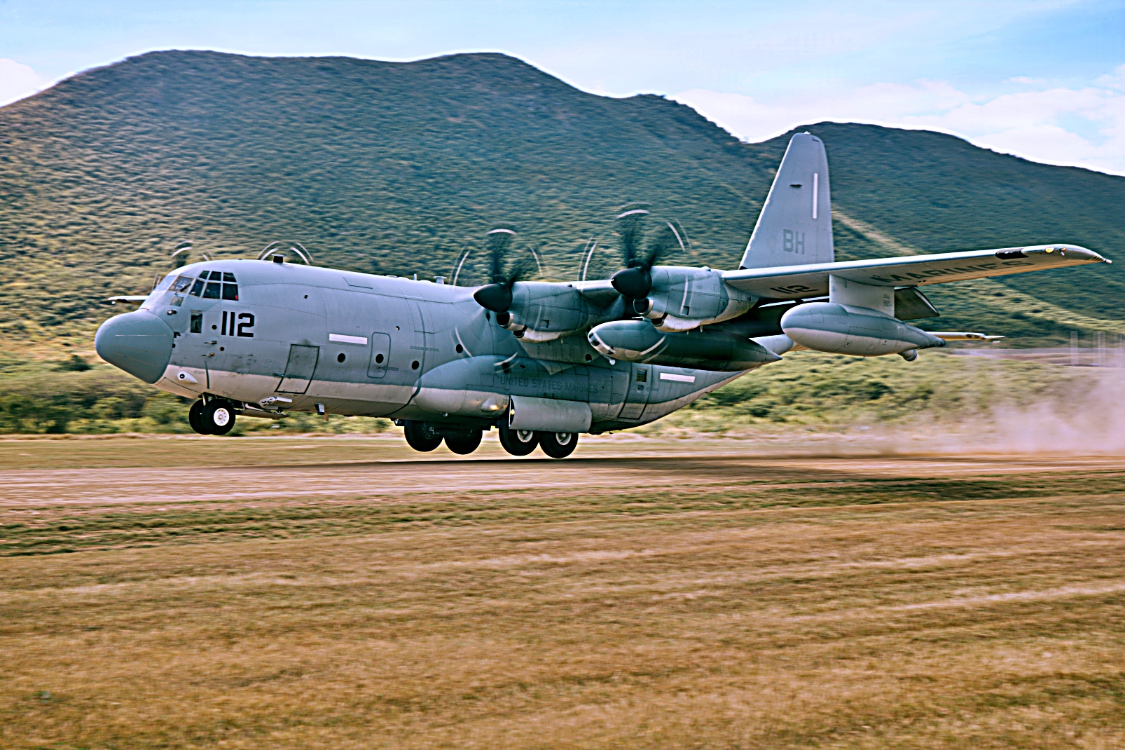 미 해병대 제22해병원정군(특수작전 가능)에 배속돤 VMM-263 강화형 해병중틸트로터비행대 소속 CH-53E Super Stallion 헬기가 2026년 1월 12일 푸에르토리코 Camp Santiago에서 VMGR-252 해병공중급유수송비행대대 소속 KC-130J Super Hercules 급유수송기가 공수해온 연료를 지상에서 재급유하는 훈련을 실시했다.