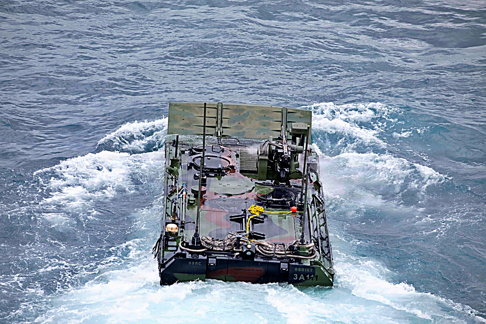 2026년 1월 24일과 25일 캘리포니아 해안에서 실시된 분기별 해상 상륙 준비 훈련 26.2 (QUART : Quarterly Underway Amphibious Readiness Training 26.2)의 일환으로 Wasp급 상륙함 USS Makin Island (LHD 8)의 웰독에서 상륙전투차량 Amphibious Combat Vehicle이 해안으로 출격하고 다시 복귀하며 강습 상륙 훈련을 수행하고 있다.