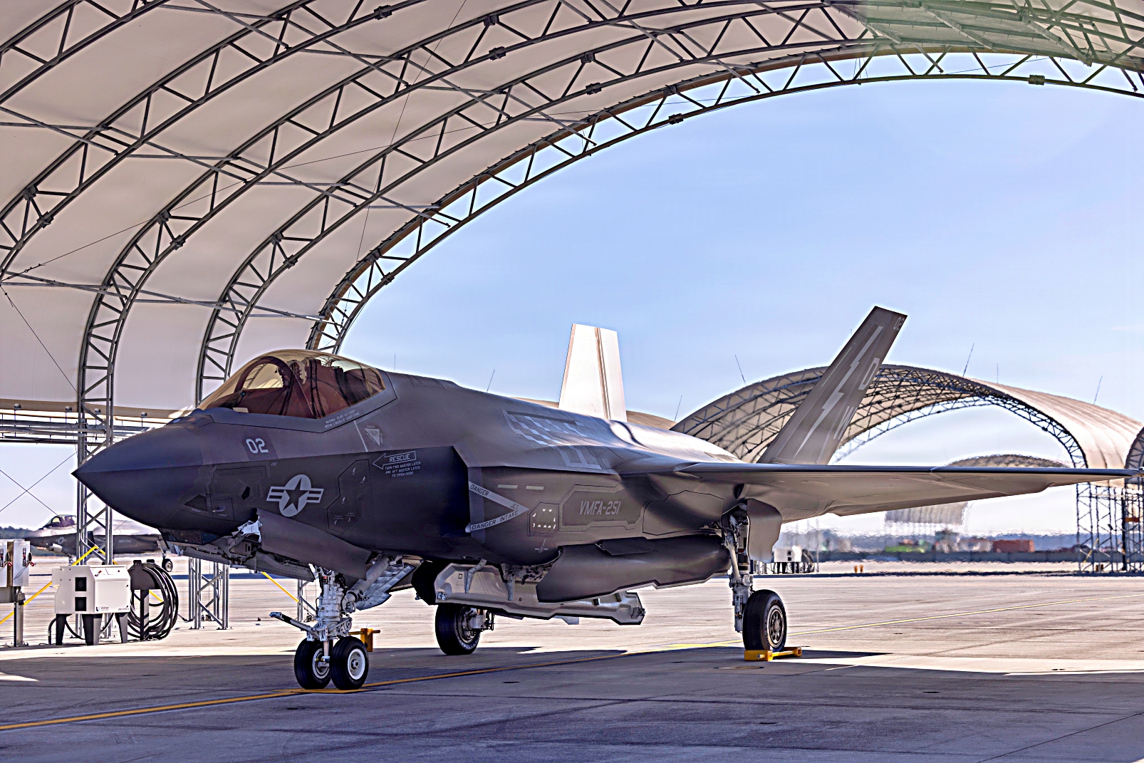 2025년 1월 29일, 노스캐롤라이나주 Cherry Point 해병 항공기지에서 실시된 Atlantic Lightning 26-1 훈련 중, 제2해병항공단 제14해병항공전대 VMFA-542 해병전투공격비행대대 소속 F-35B Lighting II 공격기가 임무 비행을 수행하고 있다.