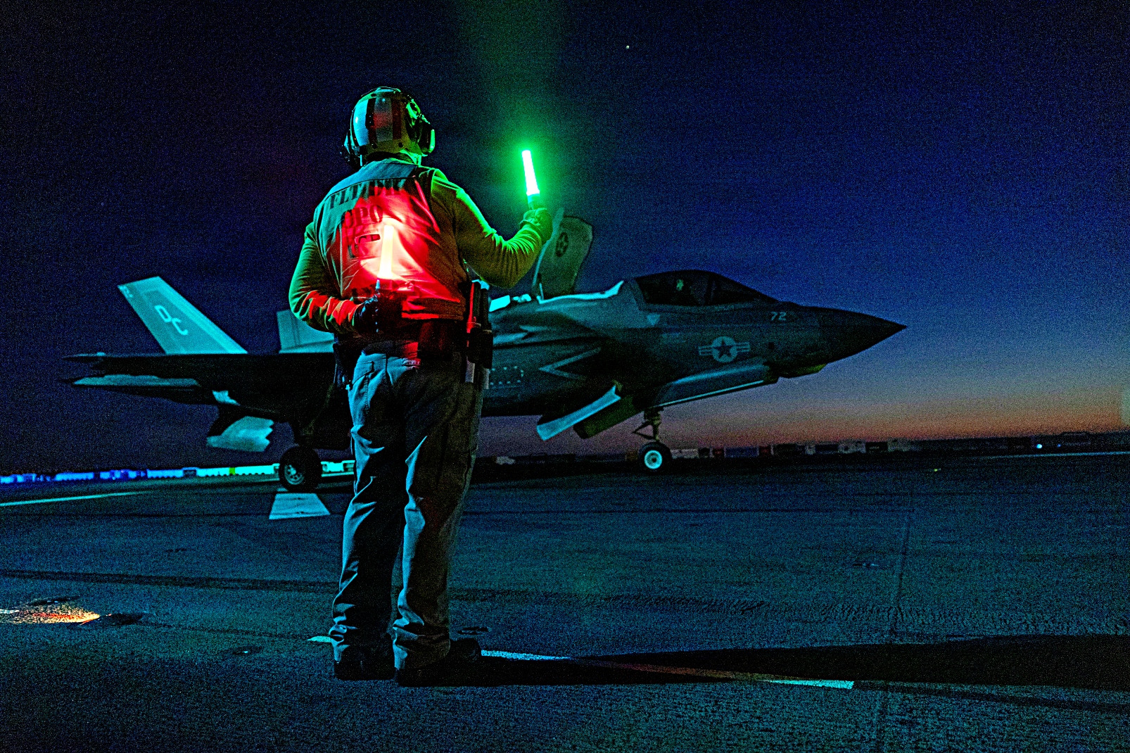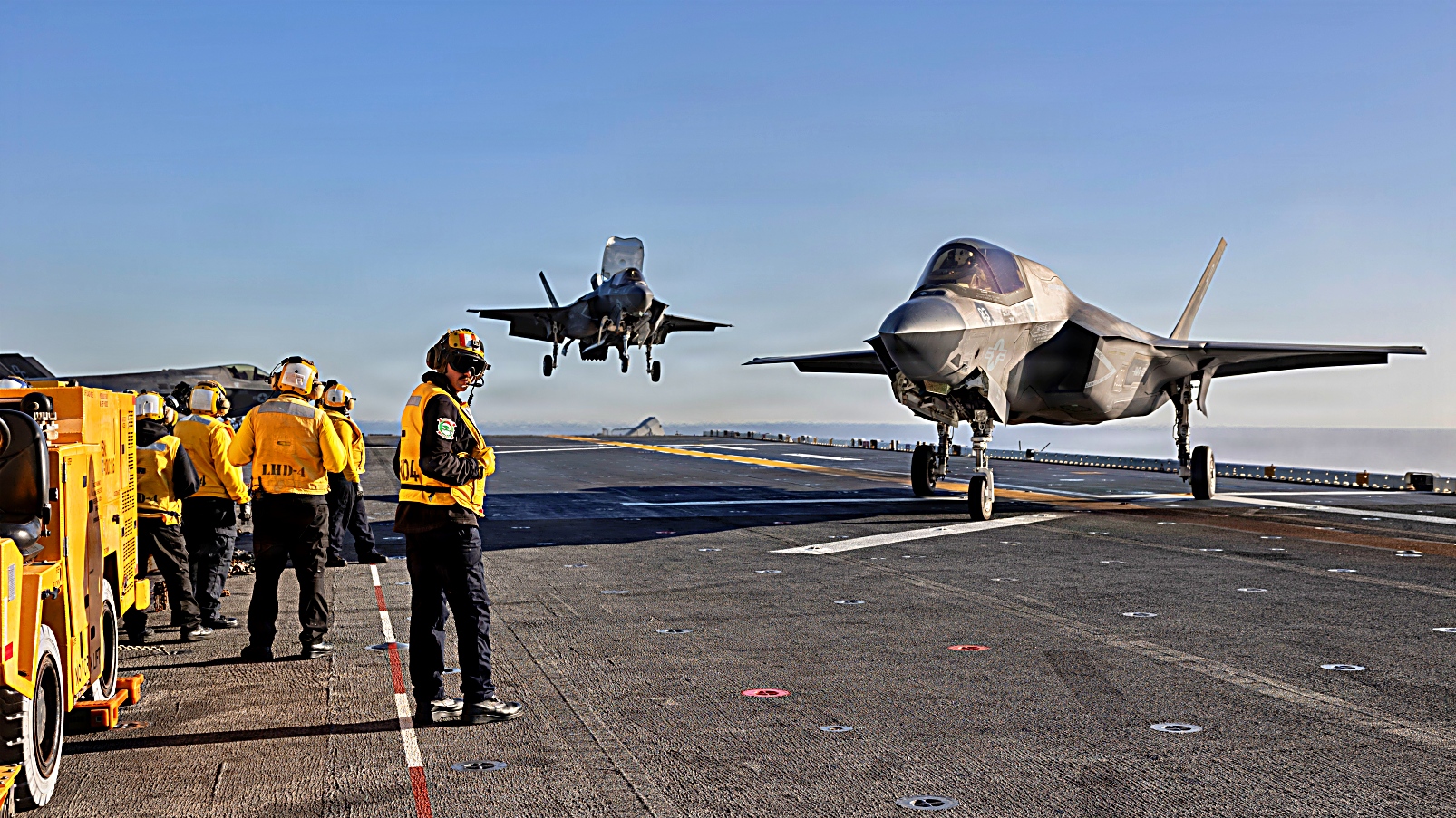 2026년 1월 30일과 2월 1일, 태평양에서 미 해병대 제11해병원정군에 배속된 VMFA-122 해병전투비행대대 소속 F-35B Lightning II 공격기가 Wasp급 강습상륙함 USS Boxer (LHD 4)함의 비행갑판에서 이착함하며 비행작전을 수행하고 있다.