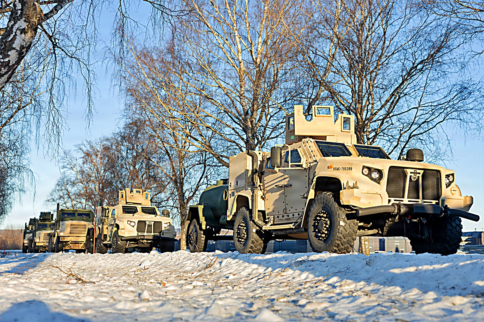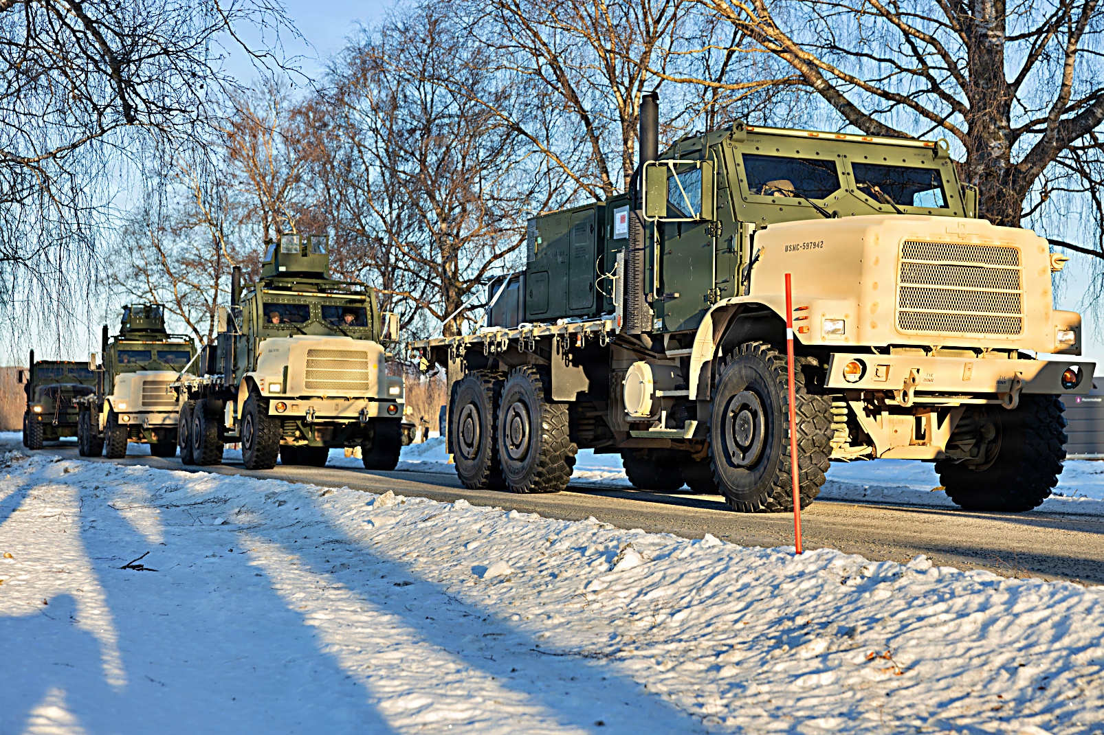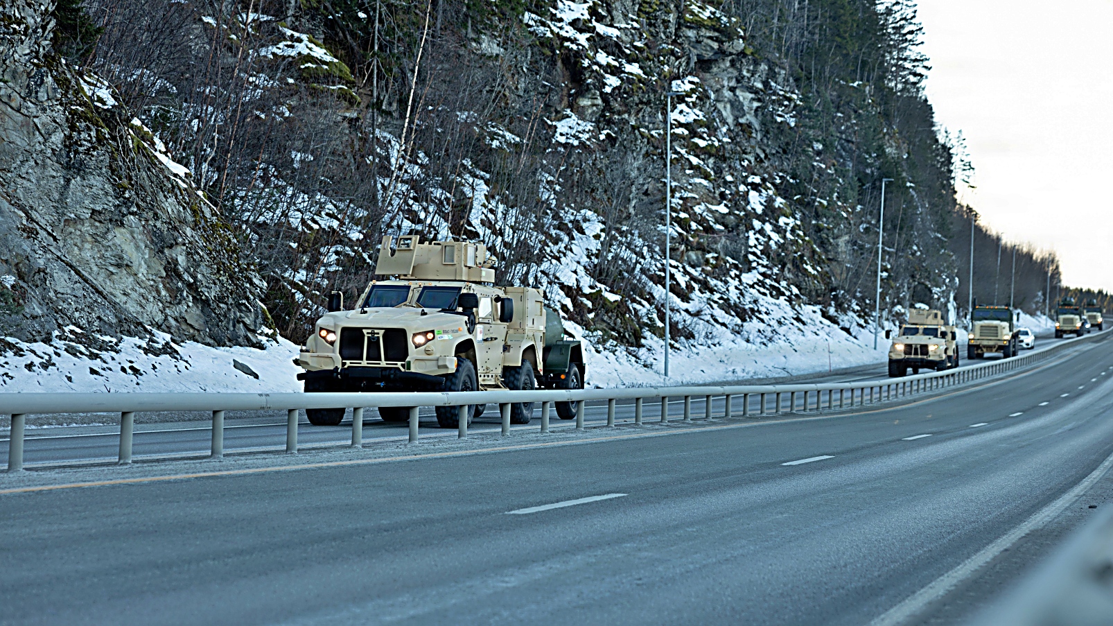 미 해병대 제2해병병참군 제27전투병참연대 제2군수지원대대 소속 해병대원들이 2026년 1월 24일 노르웨이 Rinnleiret에서 Cold Response 26 훈련 준비를 위해 전술 호송 훈련을 실시하고 있다. 노르웨이 해병대 사전배치 프로그램(MCPP-NORW)은 노르웨이 전역의 온도와 습도가 조절되는 동굴을 활용하여 장비를 보관 및 유지함으로써 배치된 해병항공지상태스크포스(MAGTF)의 신속한 장비 보급을 가능하게 한다. Cold Response 26 훈련은 노르웨이가 주도하는 동계 군사 훈련으로, 집단방위 능력을 강화하고 혹독한 북극 환경에서 나토 동맹국과 함께 신속하게 배치 및 원활한 작전을 수행할 수 있는 미국의 준비태세를 확보하기 위해 설계됐다.