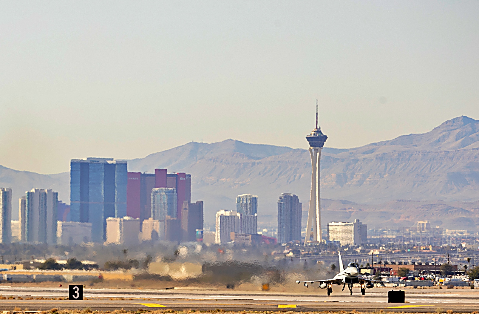 미국 네바다주에서 Nellis 공군기지에서 열리는 Red Flag 2026 훈련 참가한 영국공군 제1전투비행대대 Typhoon 전투기가 1월 17일부터 1월 29일 사이 관숙 훈련을 수행하기 위해 출격하고 있다.