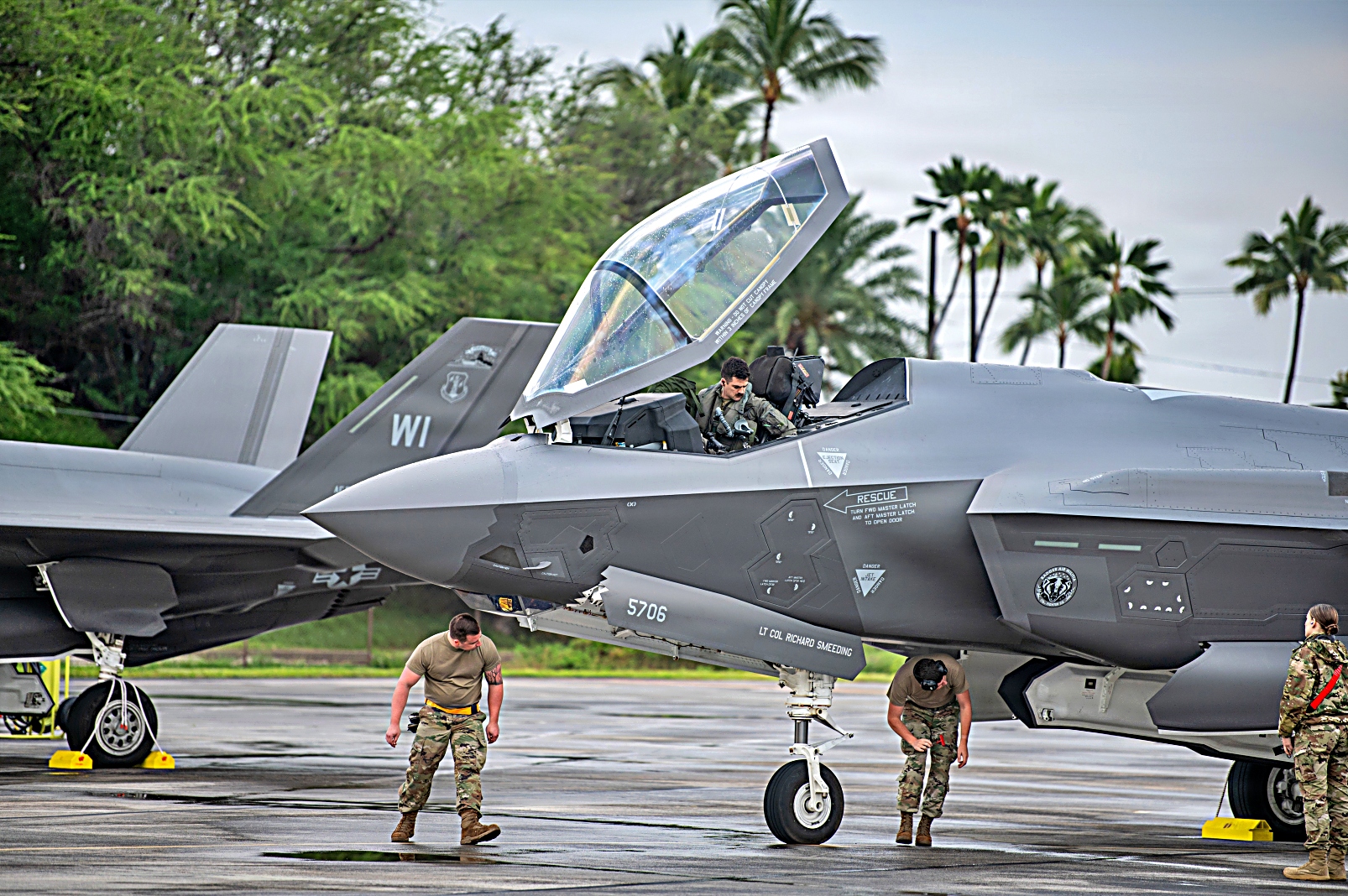 위스콘신 주방위군 제115전투비행단 예하 제176전투비행대 소속 F-35A Lightning II 공격기 출격전 준비