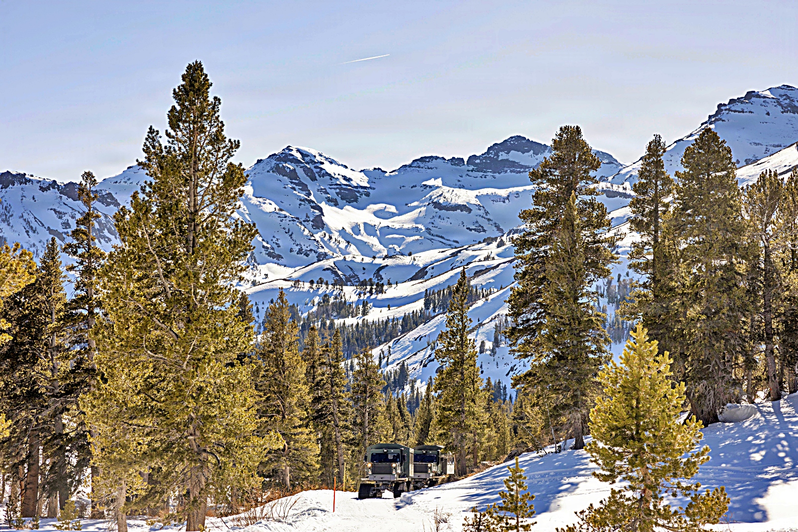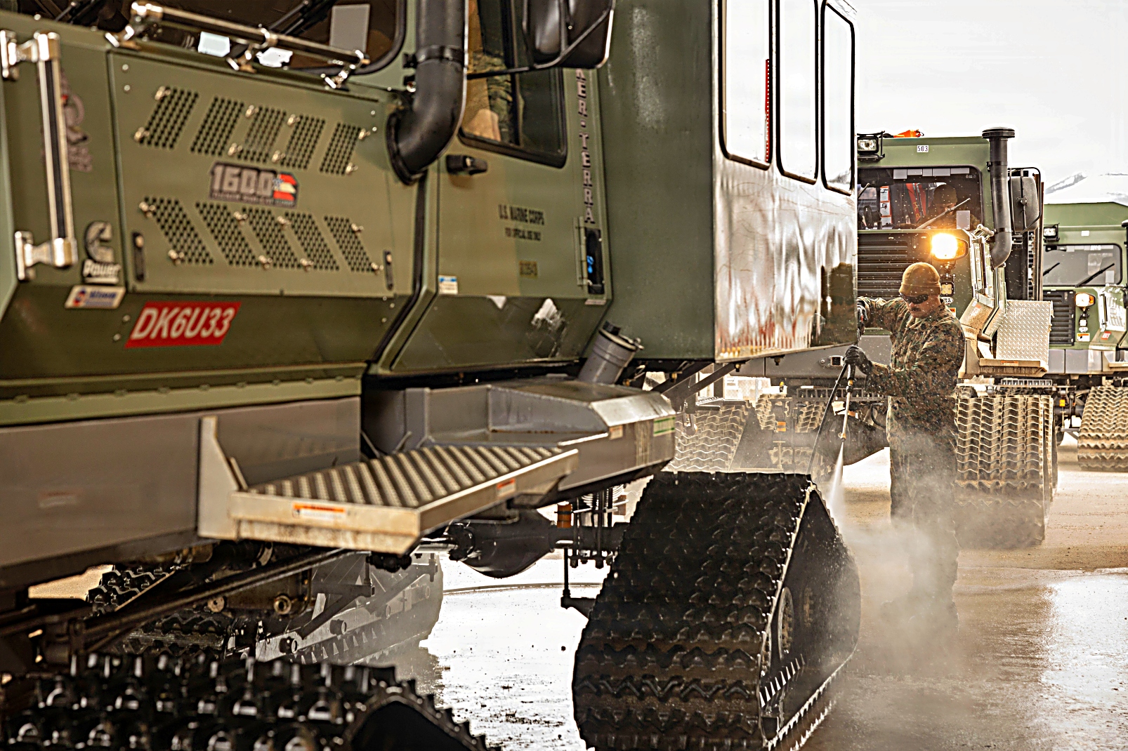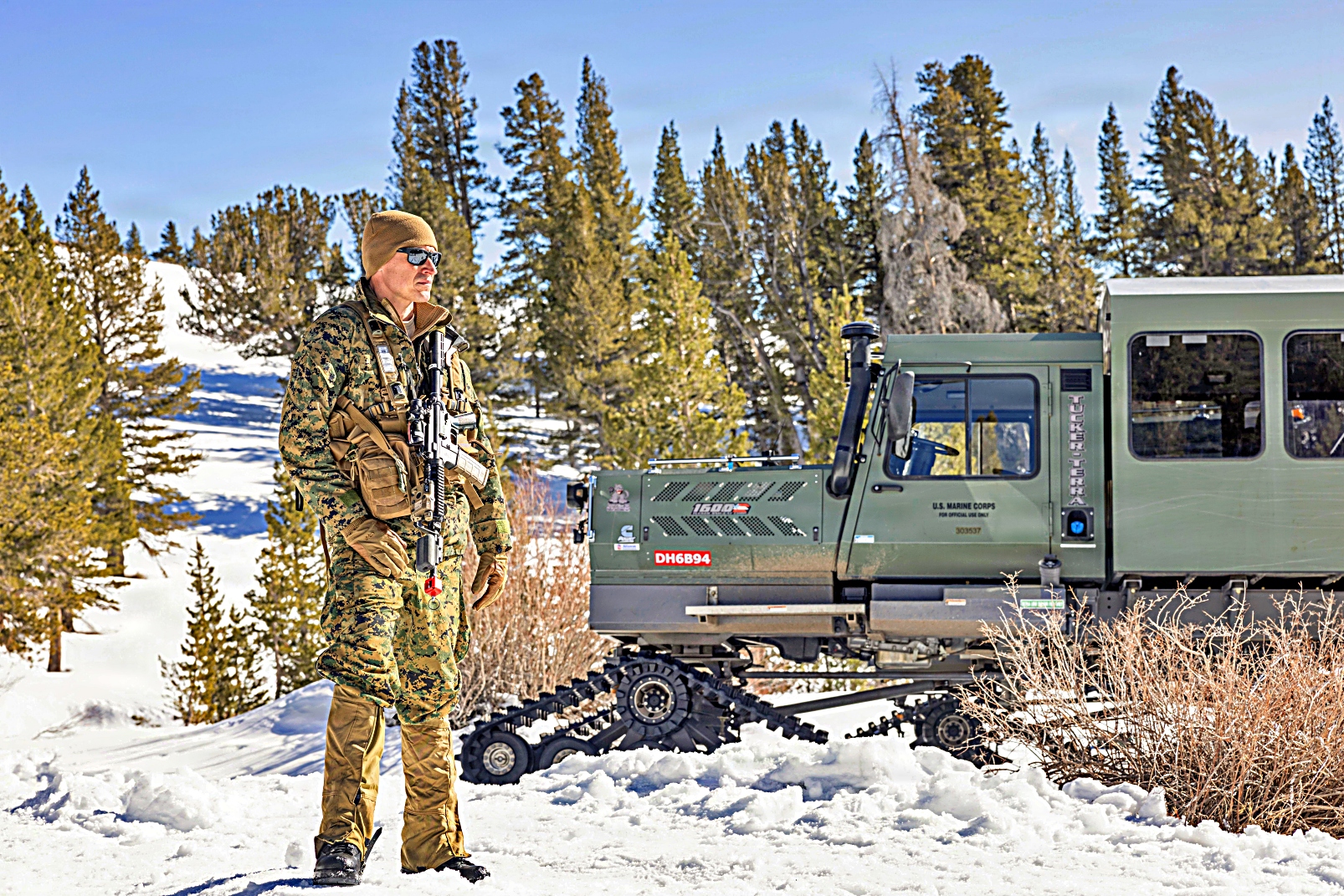 2026년 2월 4일부터 9일 사이, 캘리포니아주 Bridgeport에 위치한 해병대 산악전 훈련센터(MCMWTC)에서 열린 Mountain Training Exercise 1-26의 최종 훈련 중, 제2해병병참군 제27 전투병참연대, 제24 전투병참대대(CLB-24) 소속 미 해병대원과 해군 장병들이 호송 및 보급 임무를 위해 배치된 Terra Tucker 1600 Sno-Cats을 이용하고 있다.