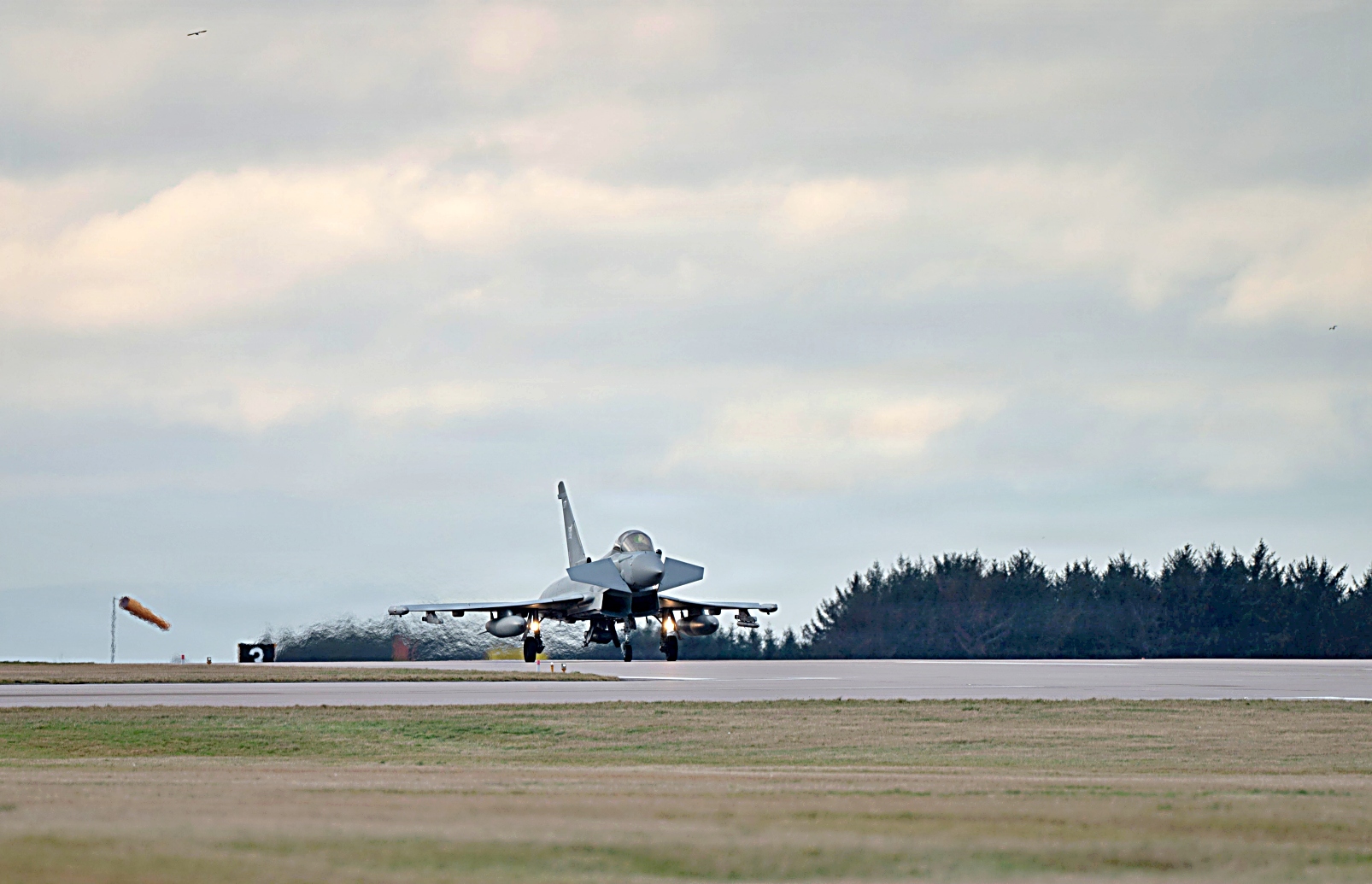 같은 날, 영국 공군 IX(B) 비행대 소속 타이푼 FGR4 전투기가 Lossiemouth 공군기지 상공을 비행하고 있다. 영국 공군은 미 공군, 노르웨이 왕립 공군과 함께 Point Blank 훈련에 참가하여 동맹군 간의 준비 태세와 상호 운용성을 강화했다.