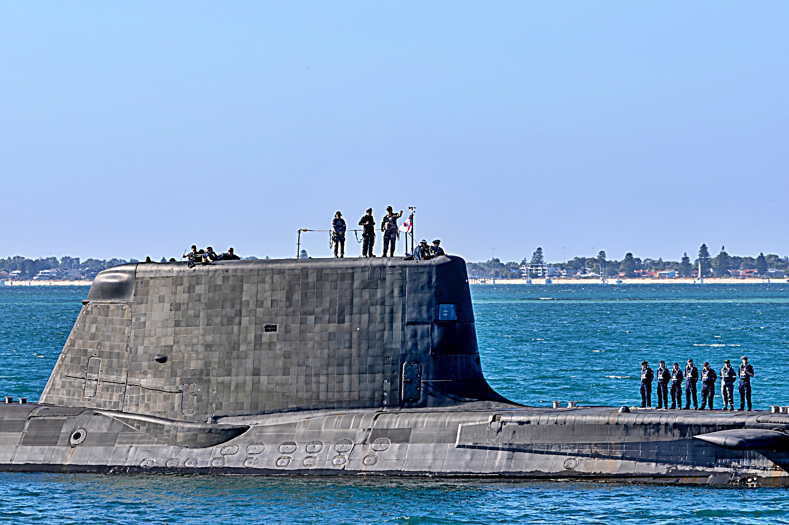 영국 해군, 영국 잠수함 인도청, 호주 해군, ASC Pty Ltd, 진주만 해군 조선소 소속 약 100명의 인원이 영국 잠수함 정비 기간(UK SMP)에 참여할 것이다.